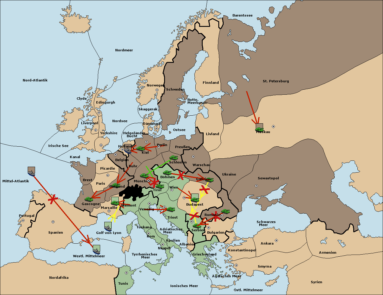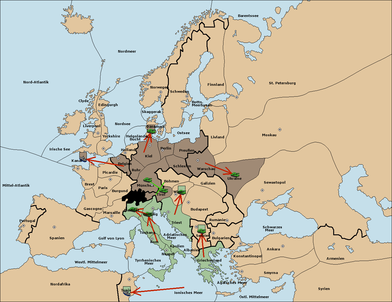• Die Armee in Kiel support move nach München von Böhmen.