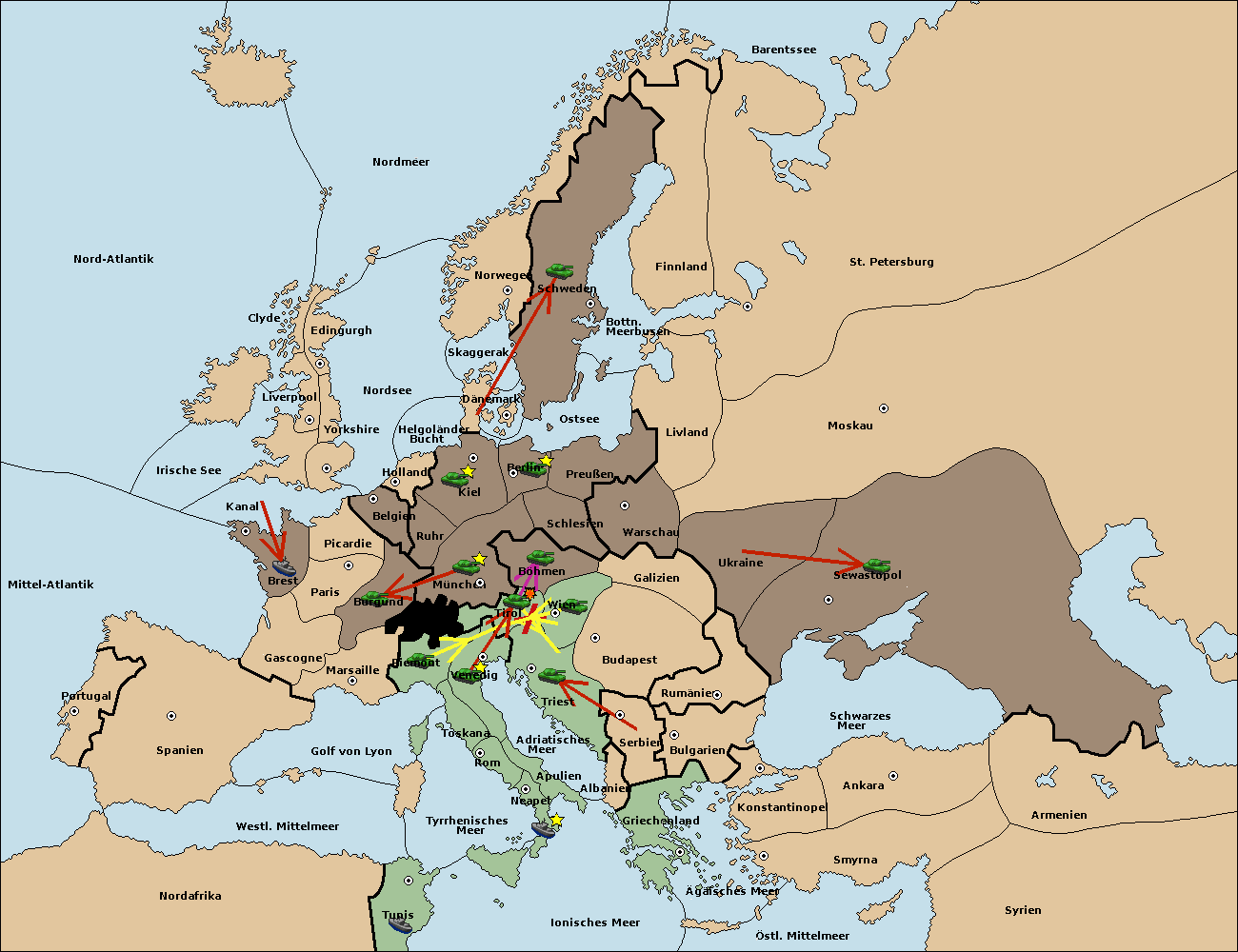 • Die Armee in Piemont support move nach Tirol von Venedig.