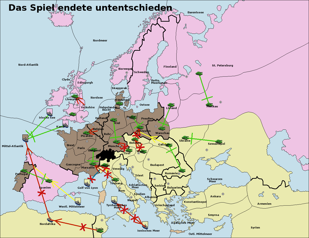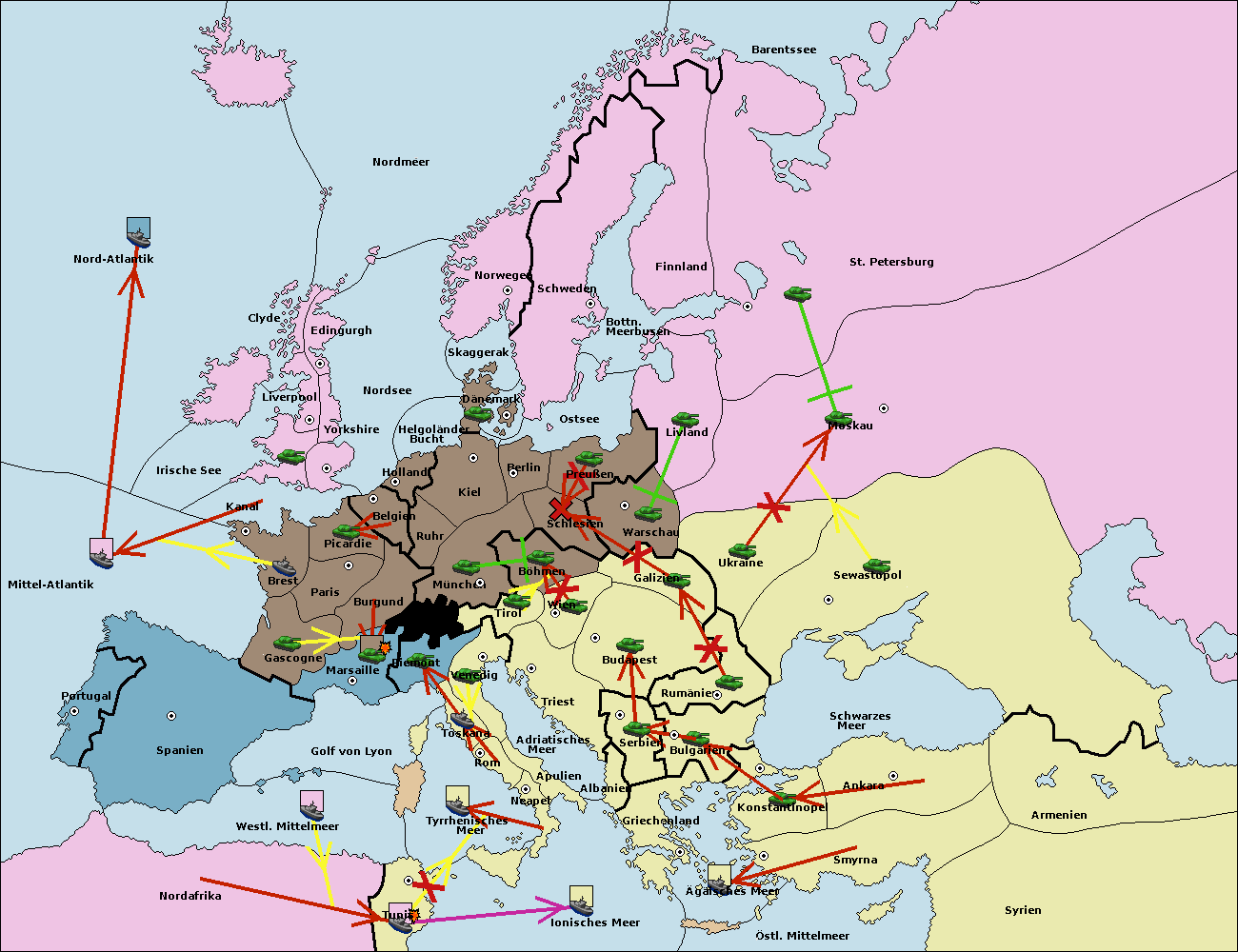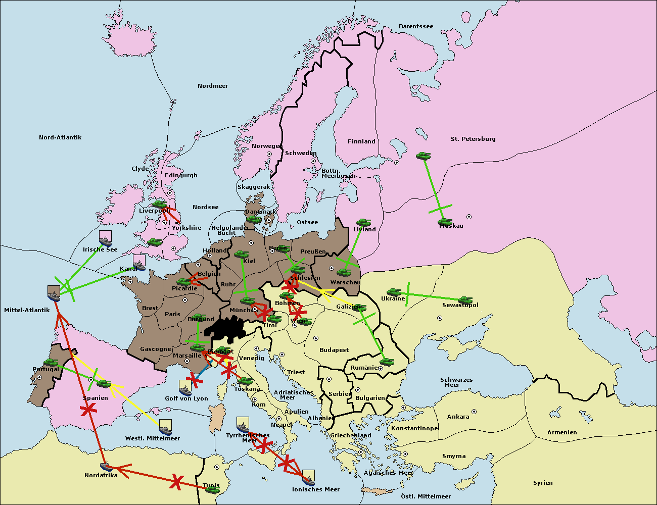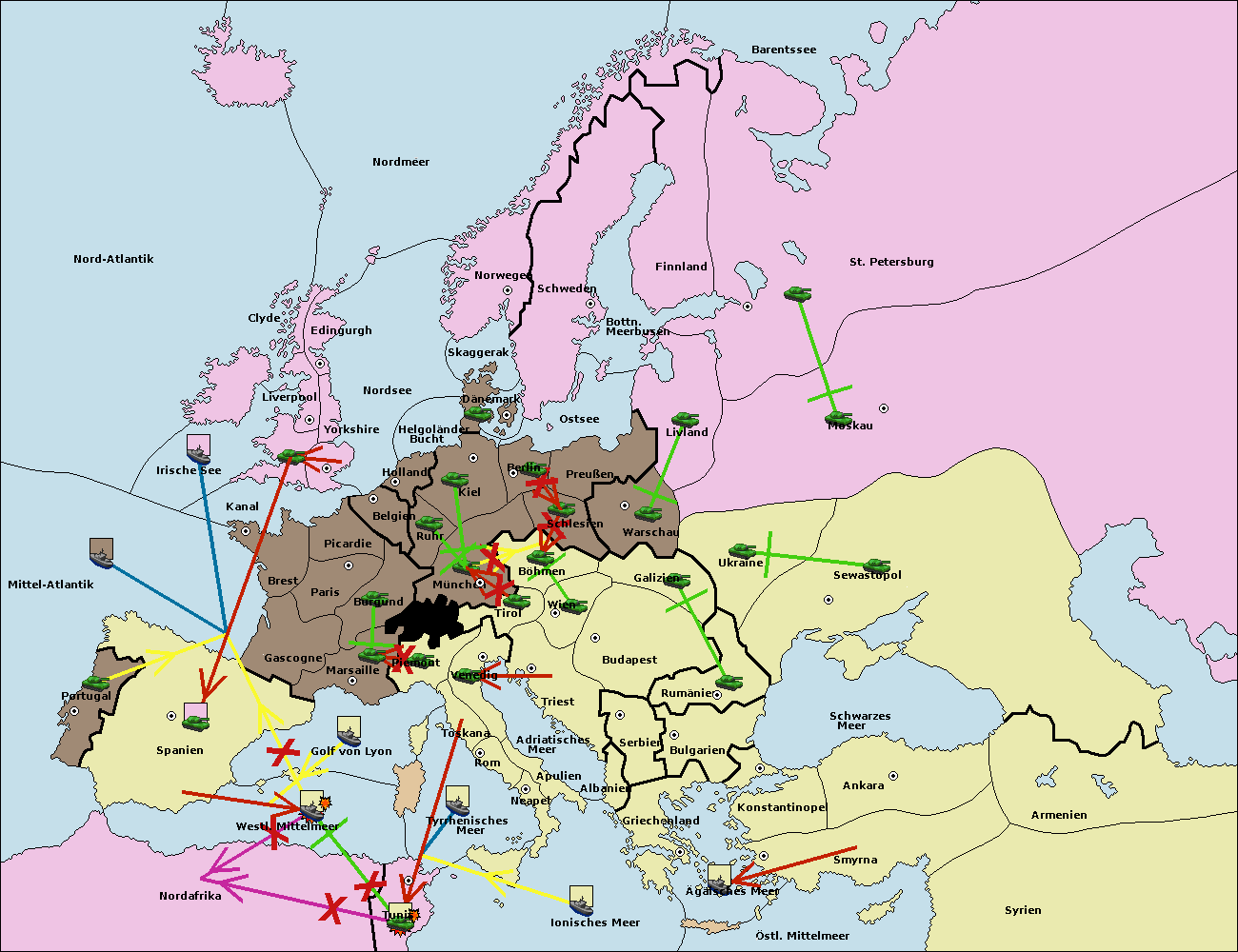 • Die Armee in Tunis move nach Nord Afrika. (gescheitert)