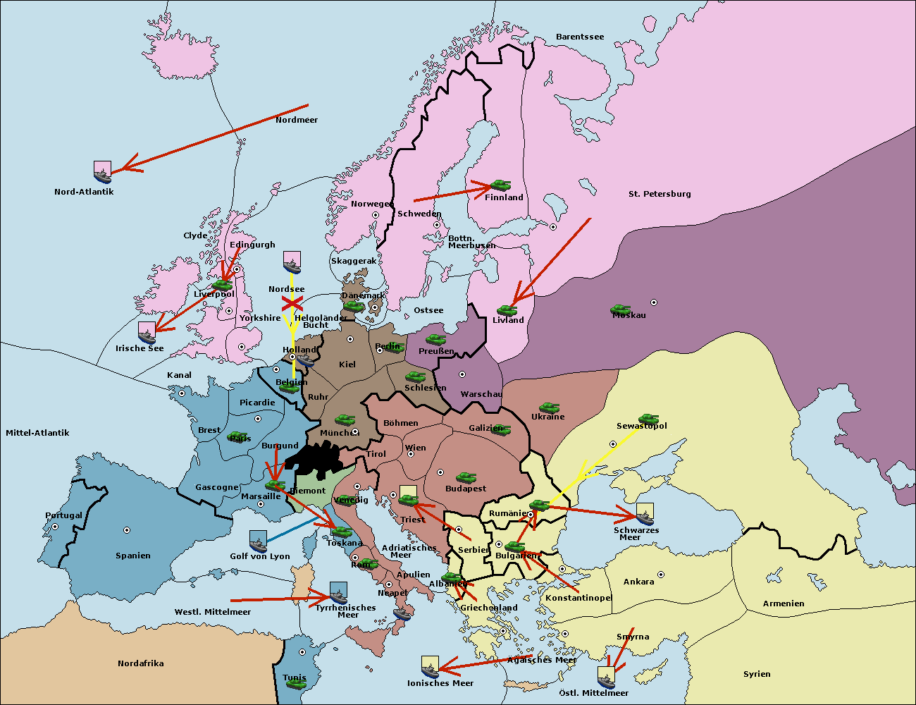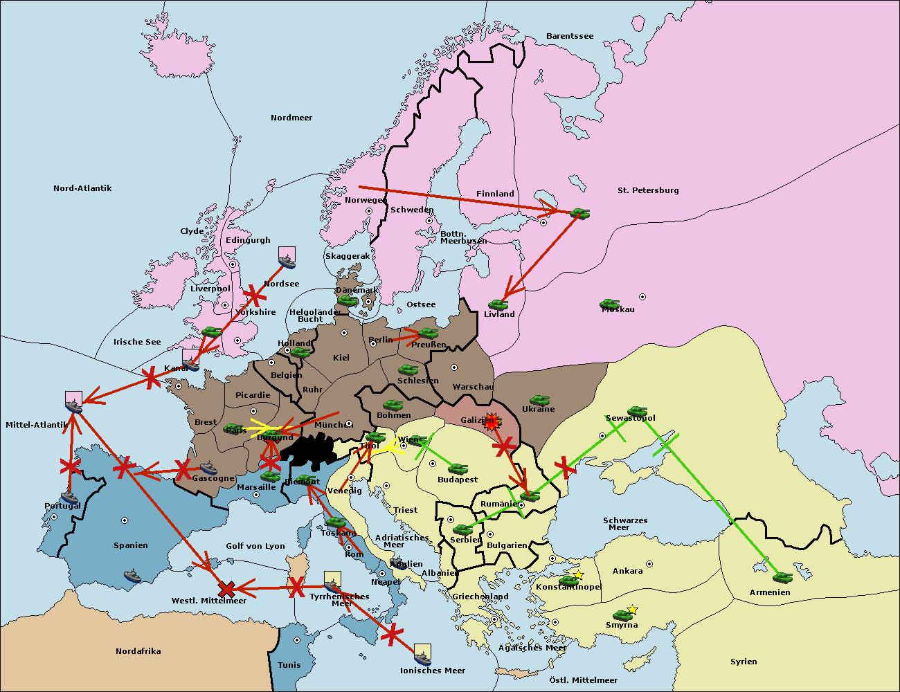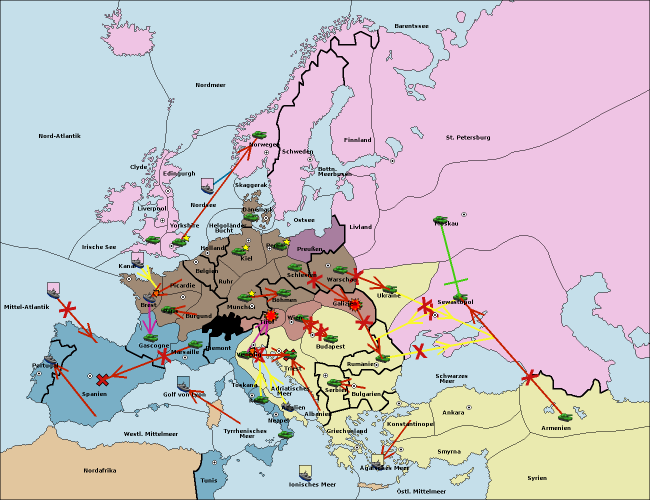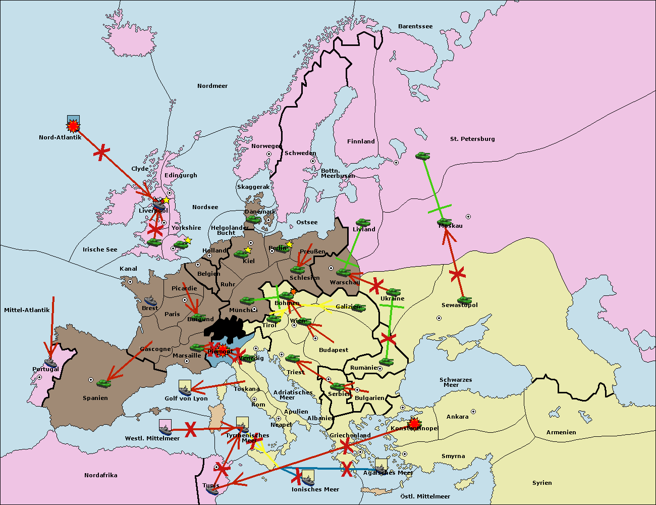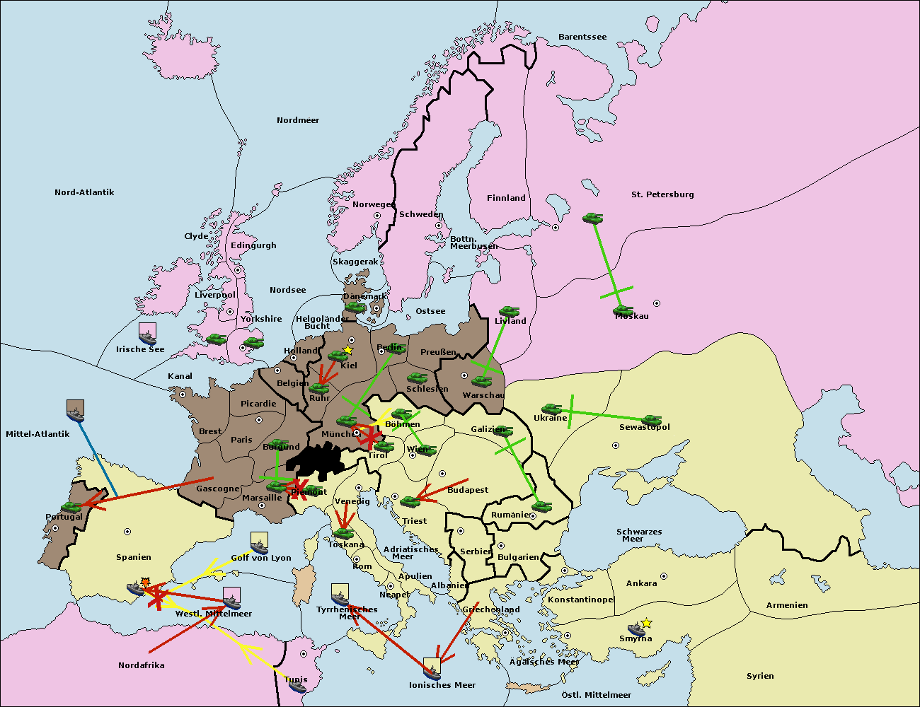 • Die Armee in Tunis move nach Nord Afrika. (gescheitert)