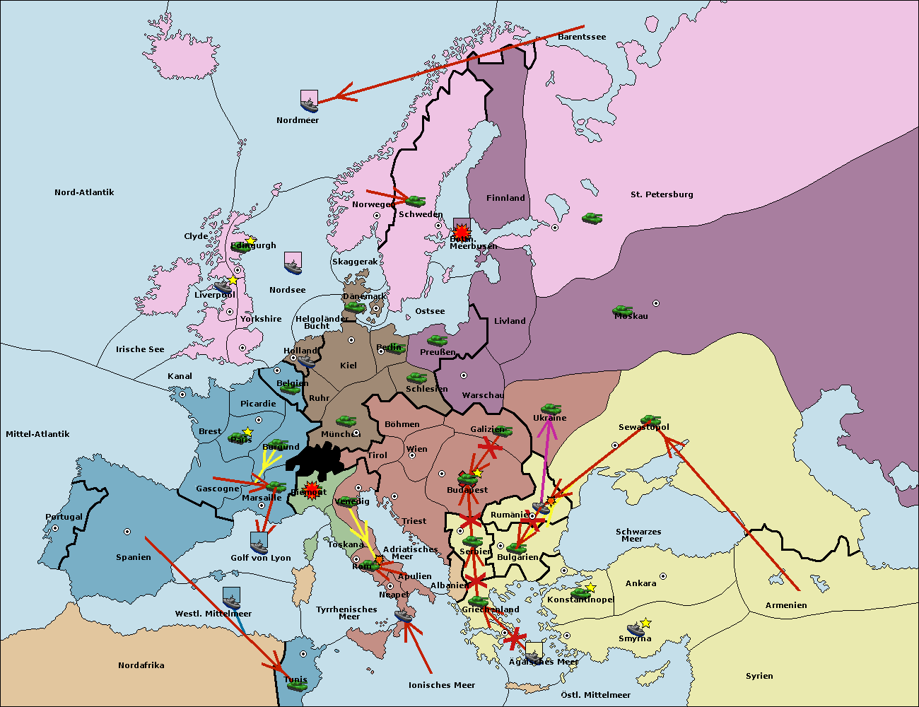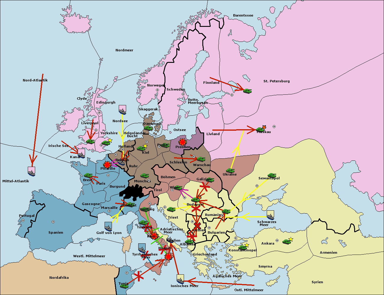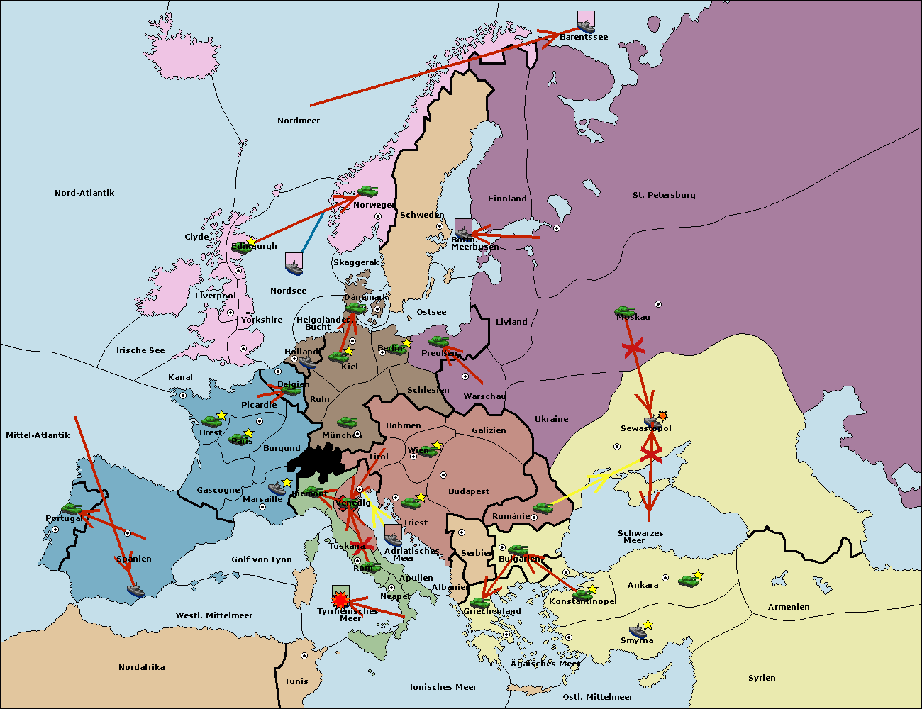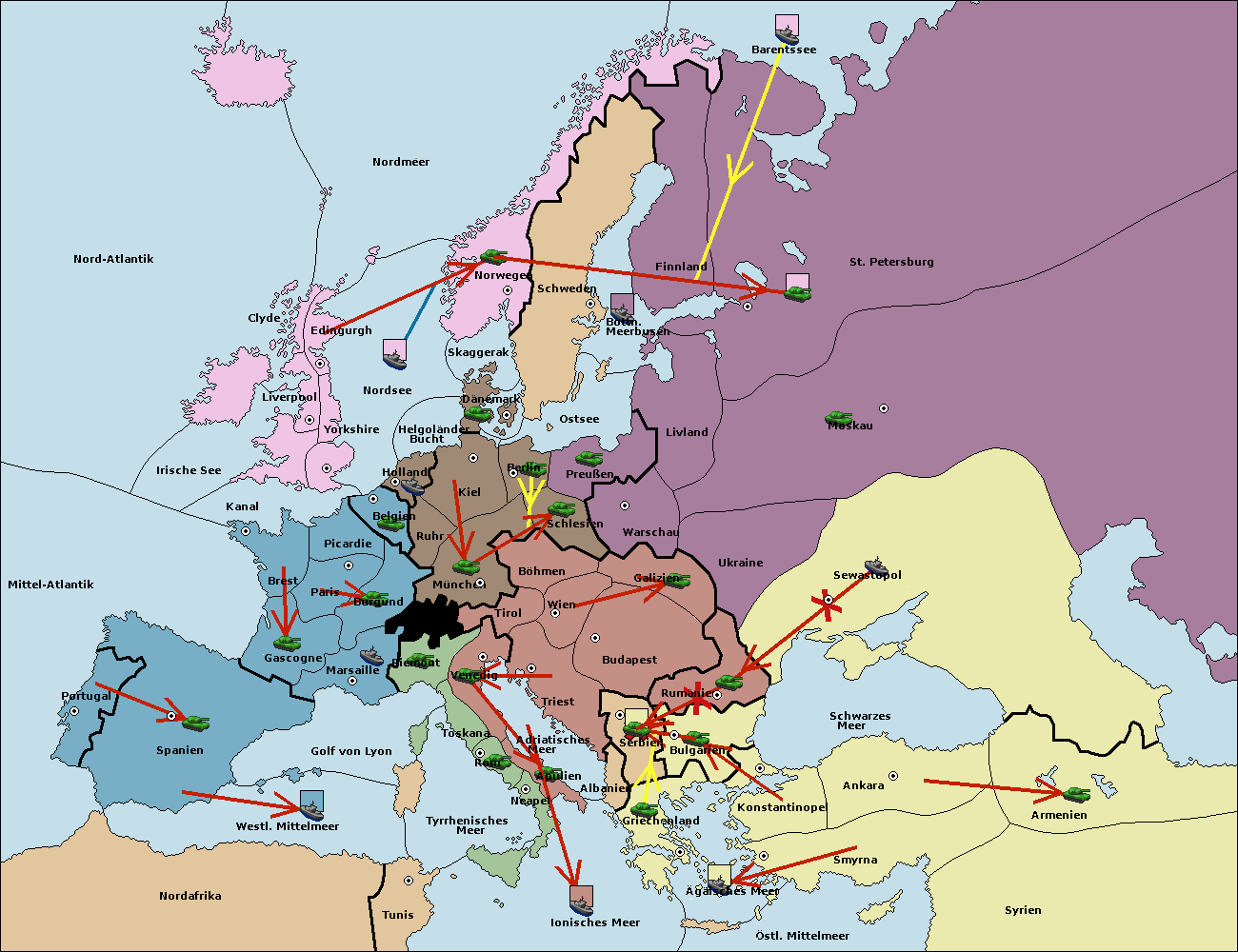 • Die Armee in Tunis move nach Nord Afrika. (gescheitert)