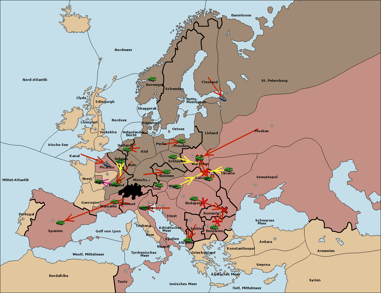 • Die Armee in Bulgarien move nach Rumänien. (gescheitert)
