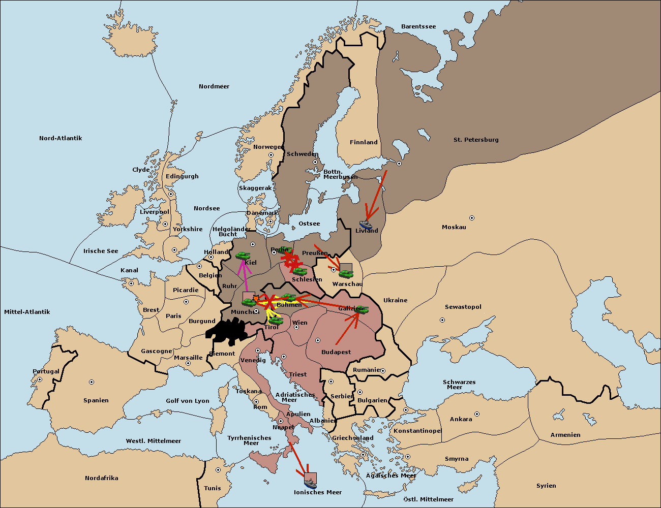 • Die Armee in Kiel support move nach München von Böhmen.