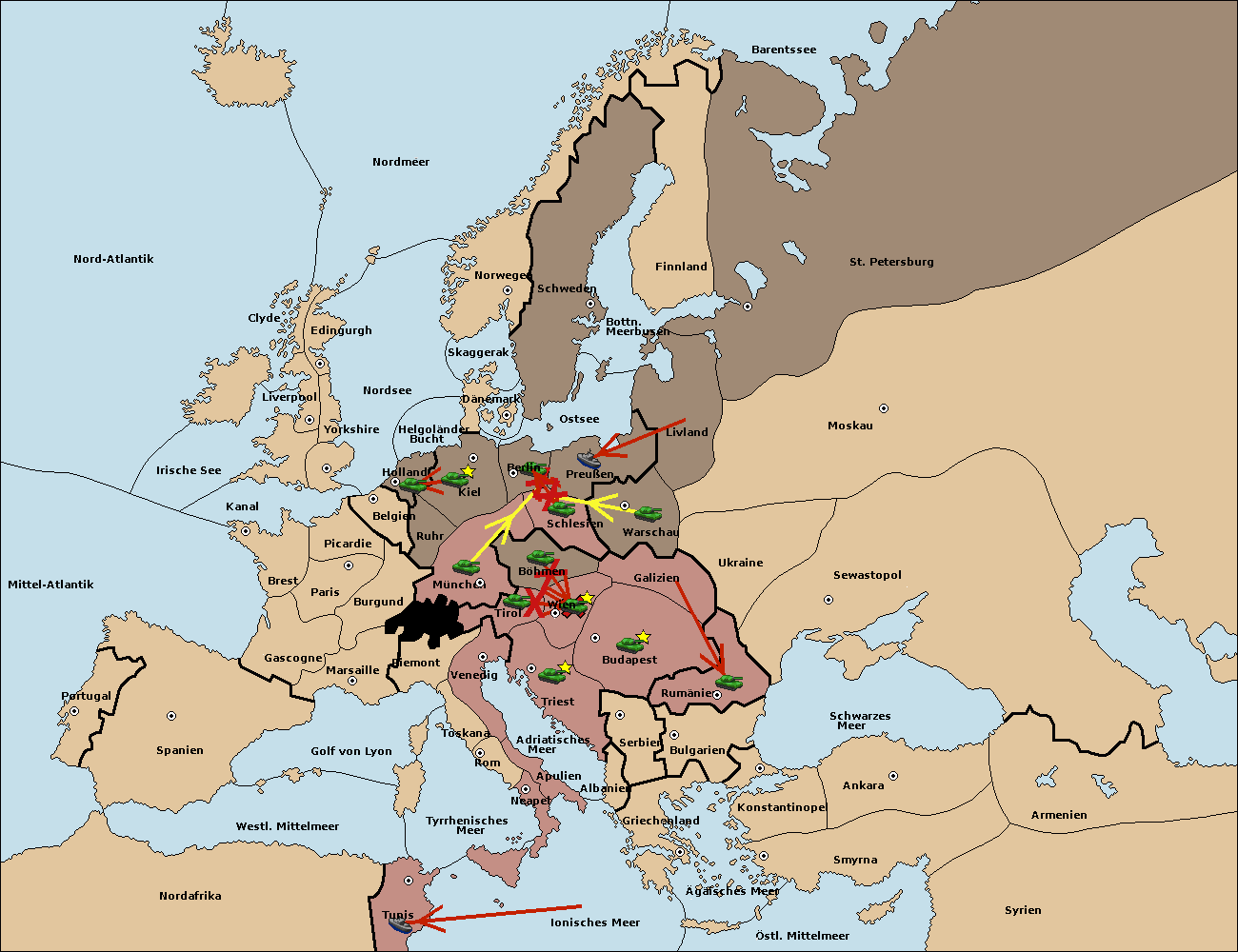 • Die Armee in Budapest support move nach Galizien von Wien.