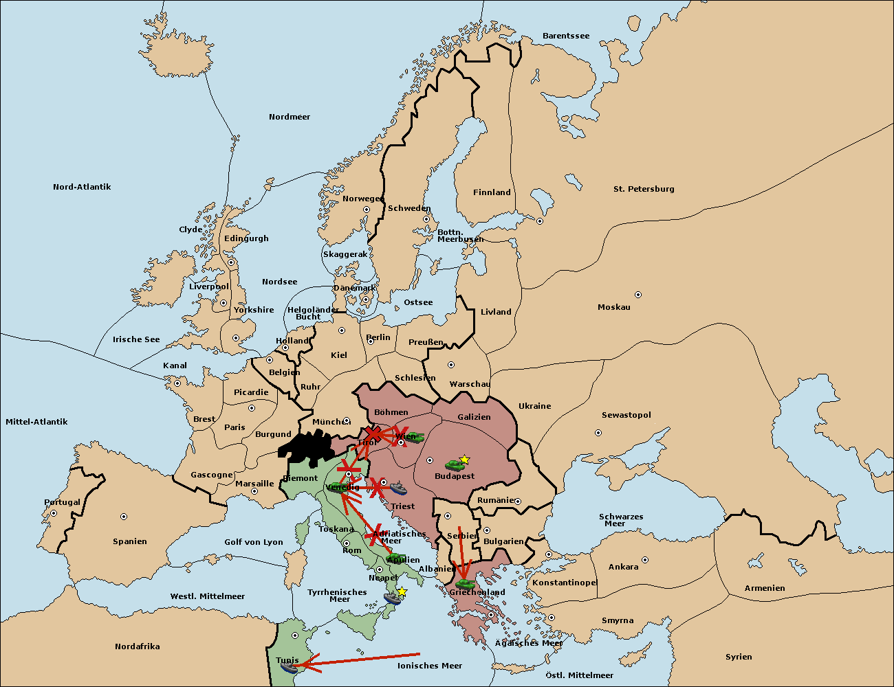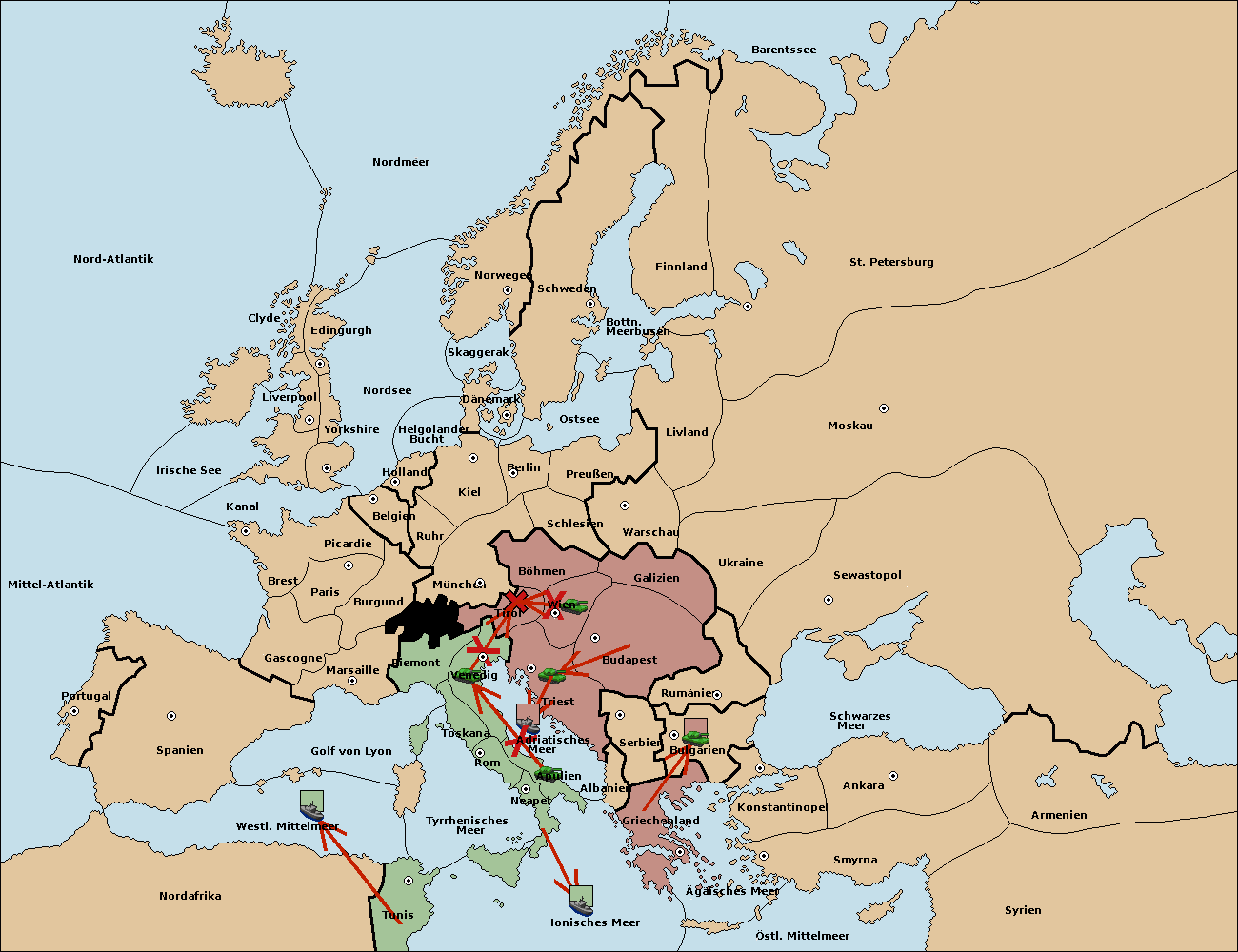 • Die Armee in Tirol support move nach Venedig von Triest.