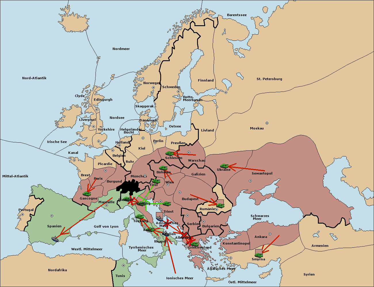 • Die Armee in Griechenland move nach Albanien. (gescheitert)