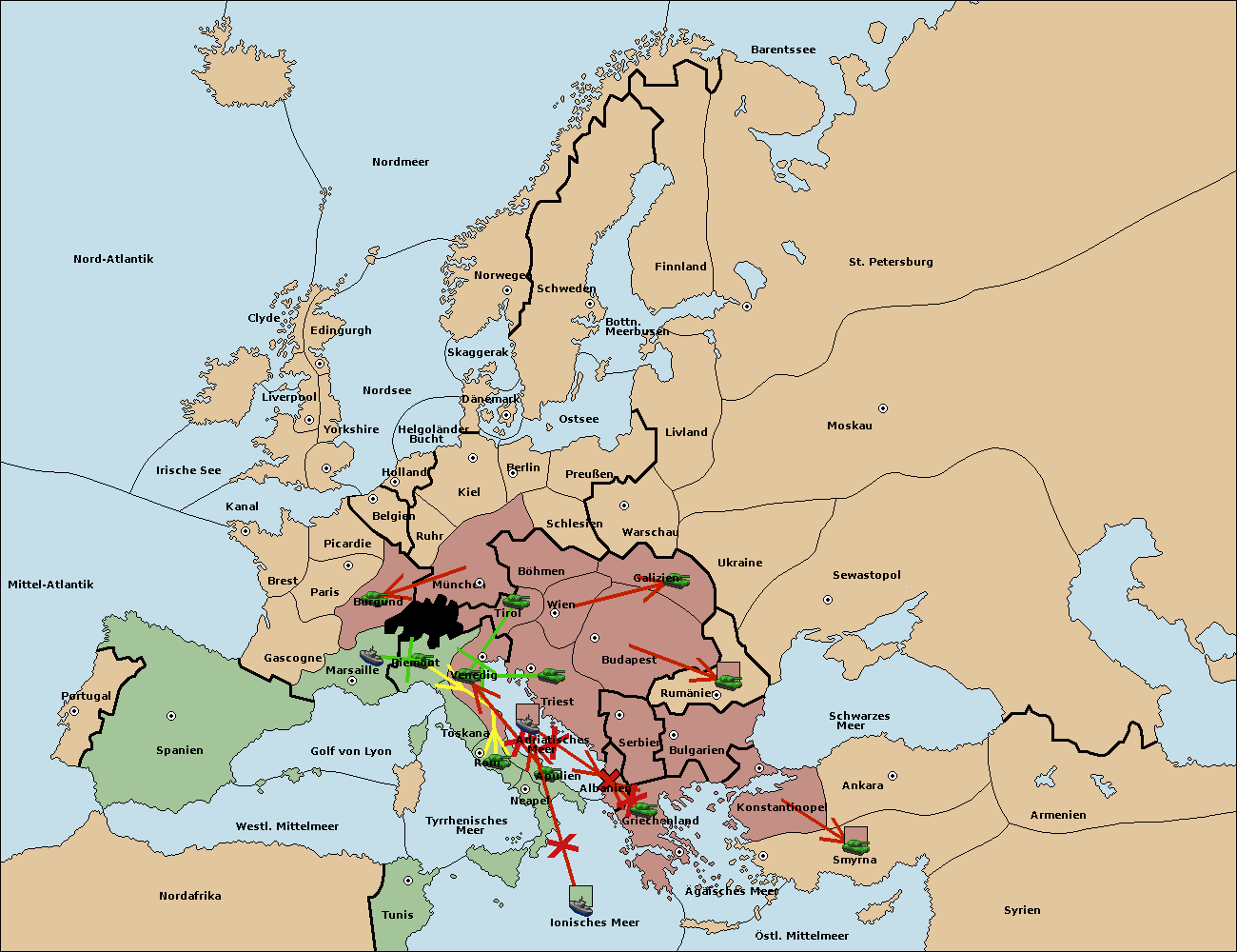 • Die Armee in Venedig support move nach Triest von Albanien. (gescheitert)