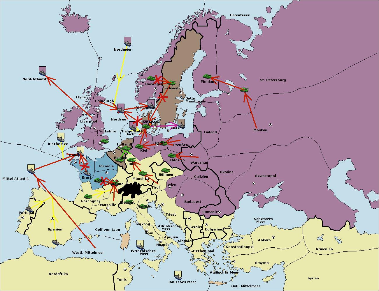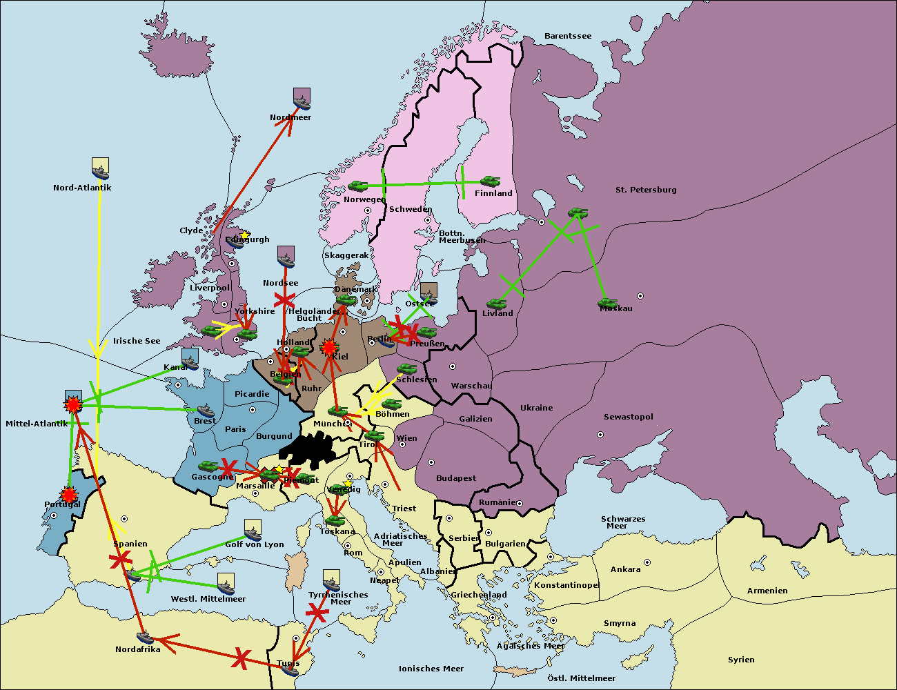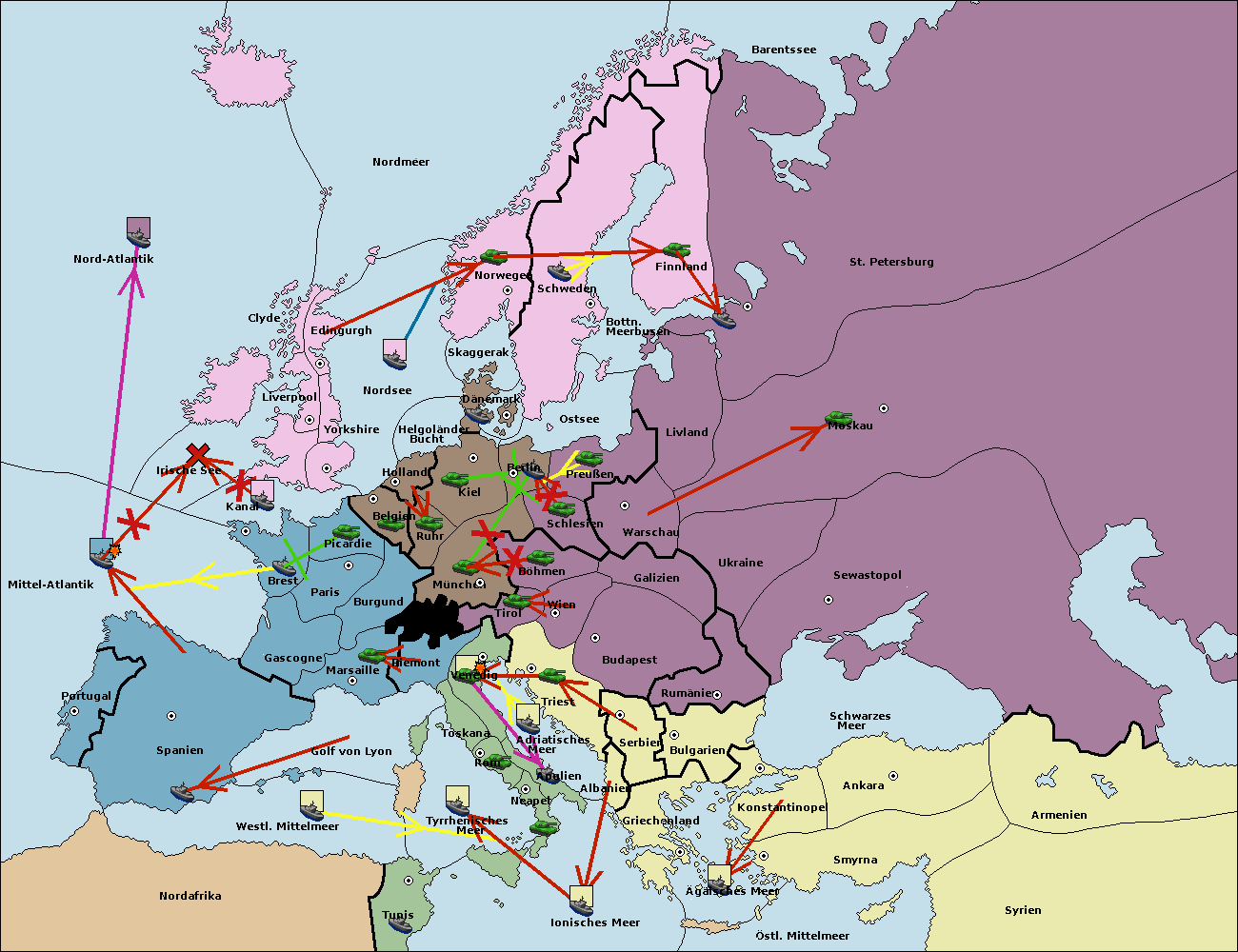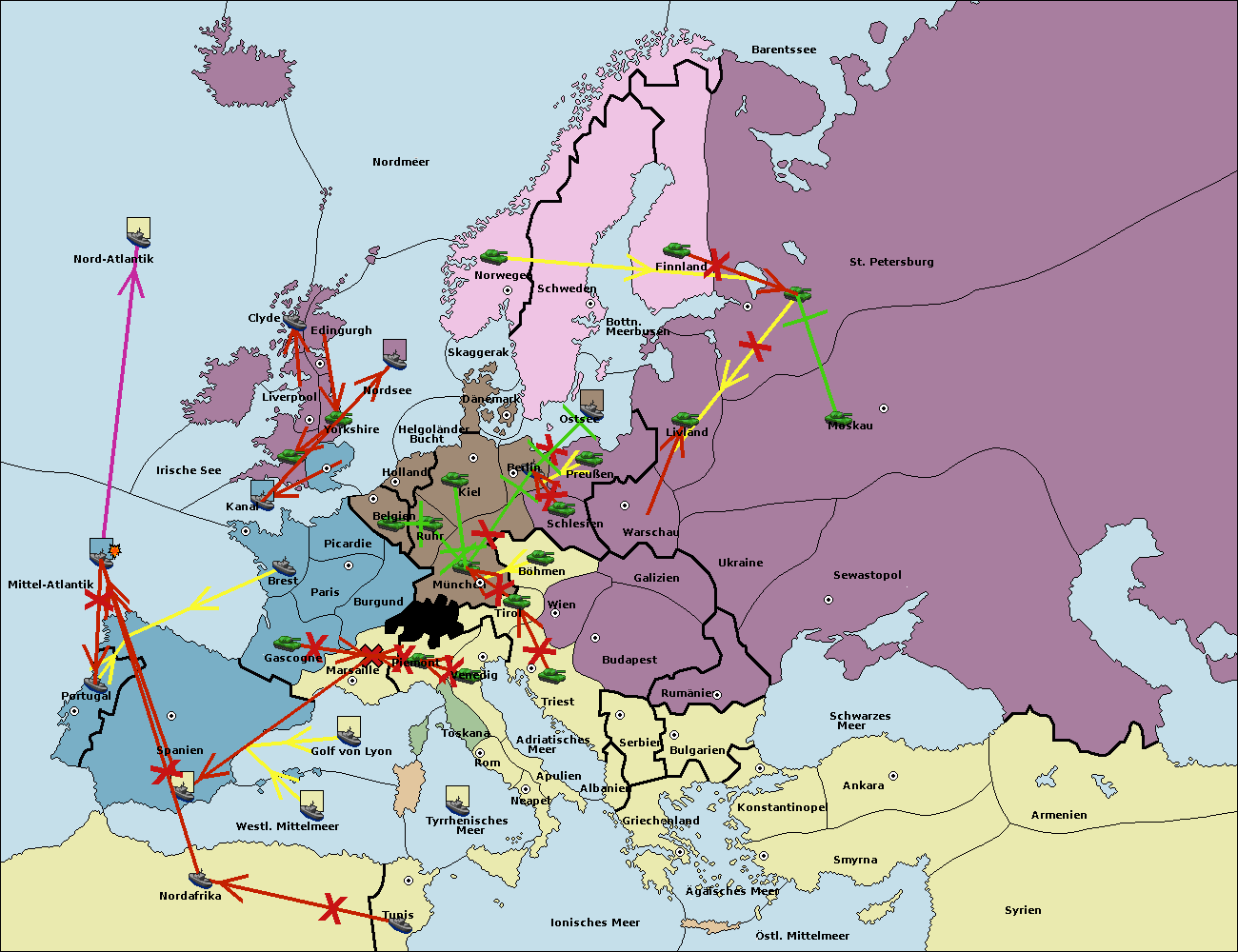• Die Flotte in Spanien (Südküste) support move nach Mittel-Atlantik von westl. Mittelmeer.