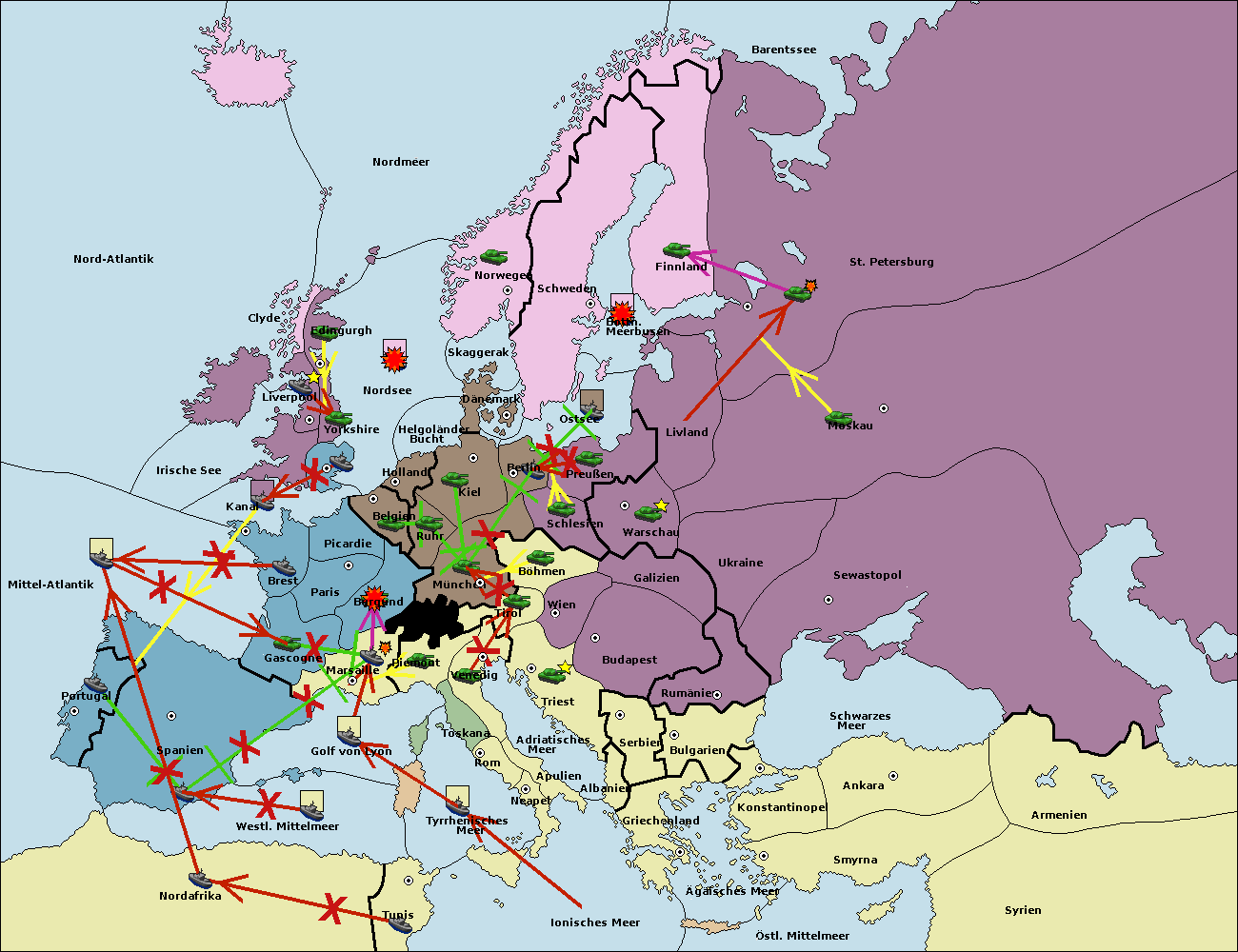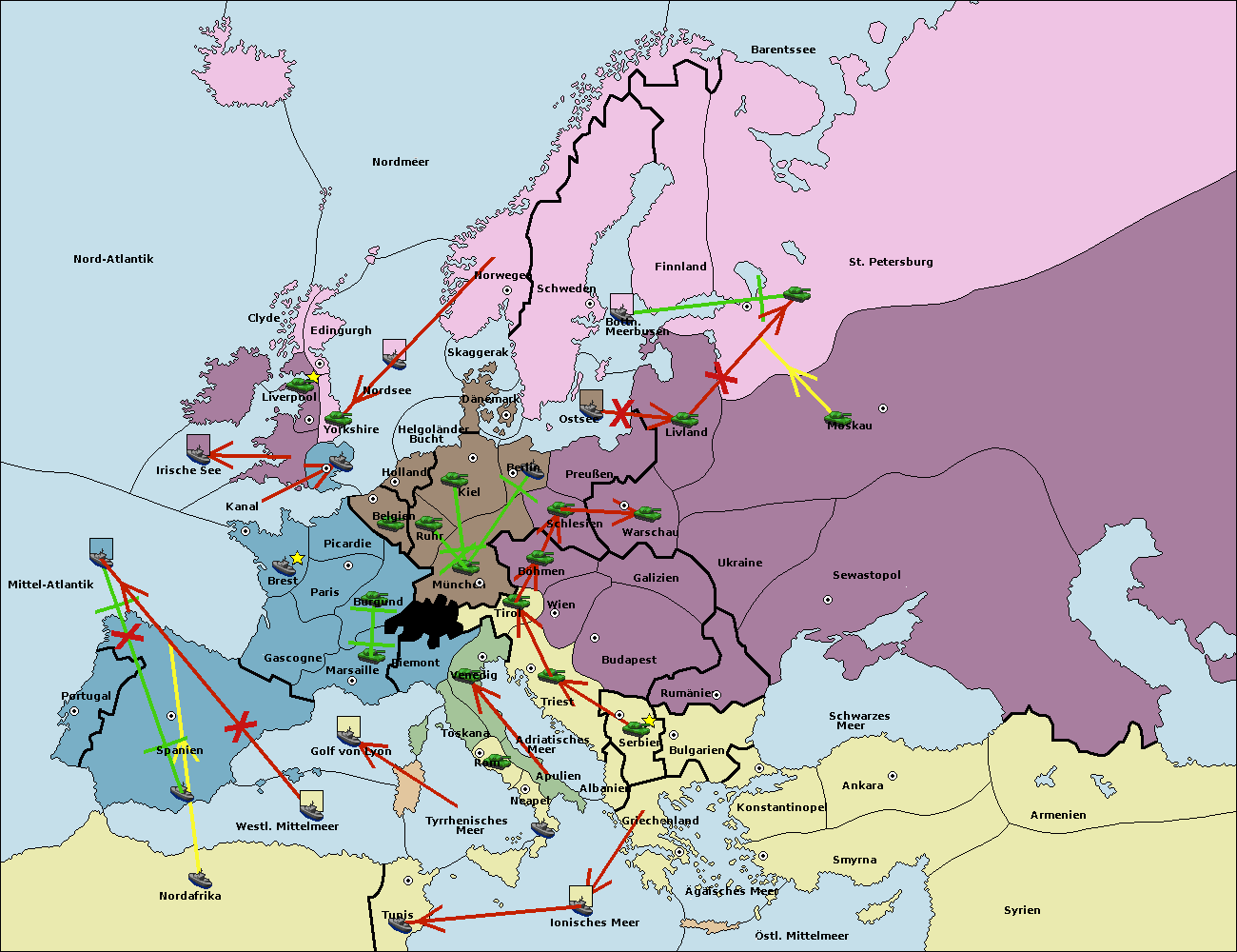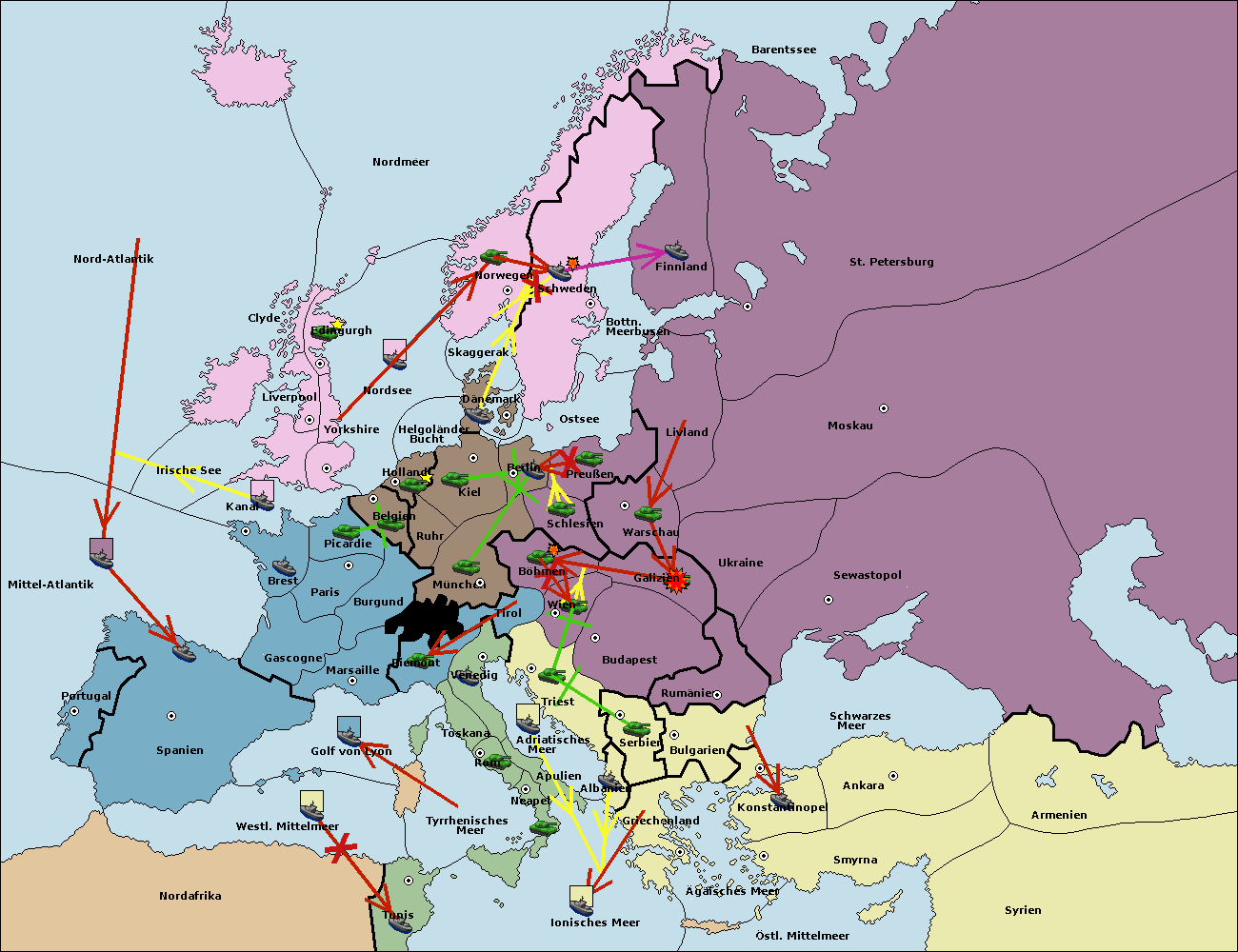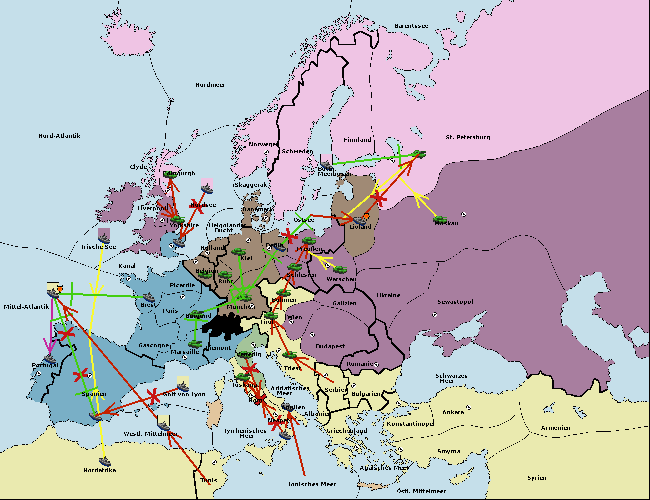• Die Flotte in Spanien (Südküste) support move nach Mittel-Atlantik von westl. Mittelmeer.