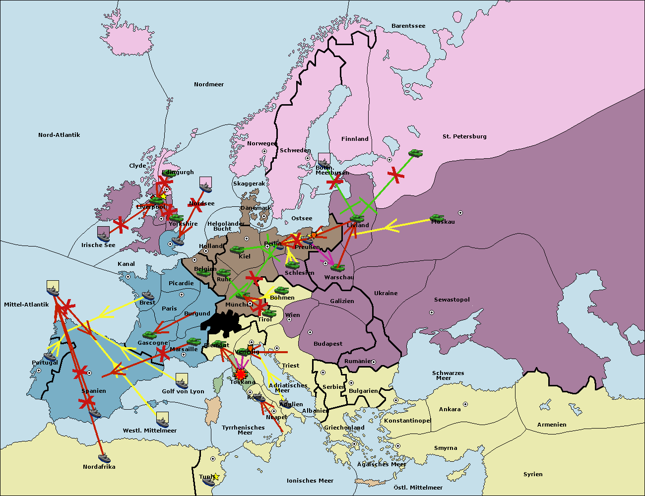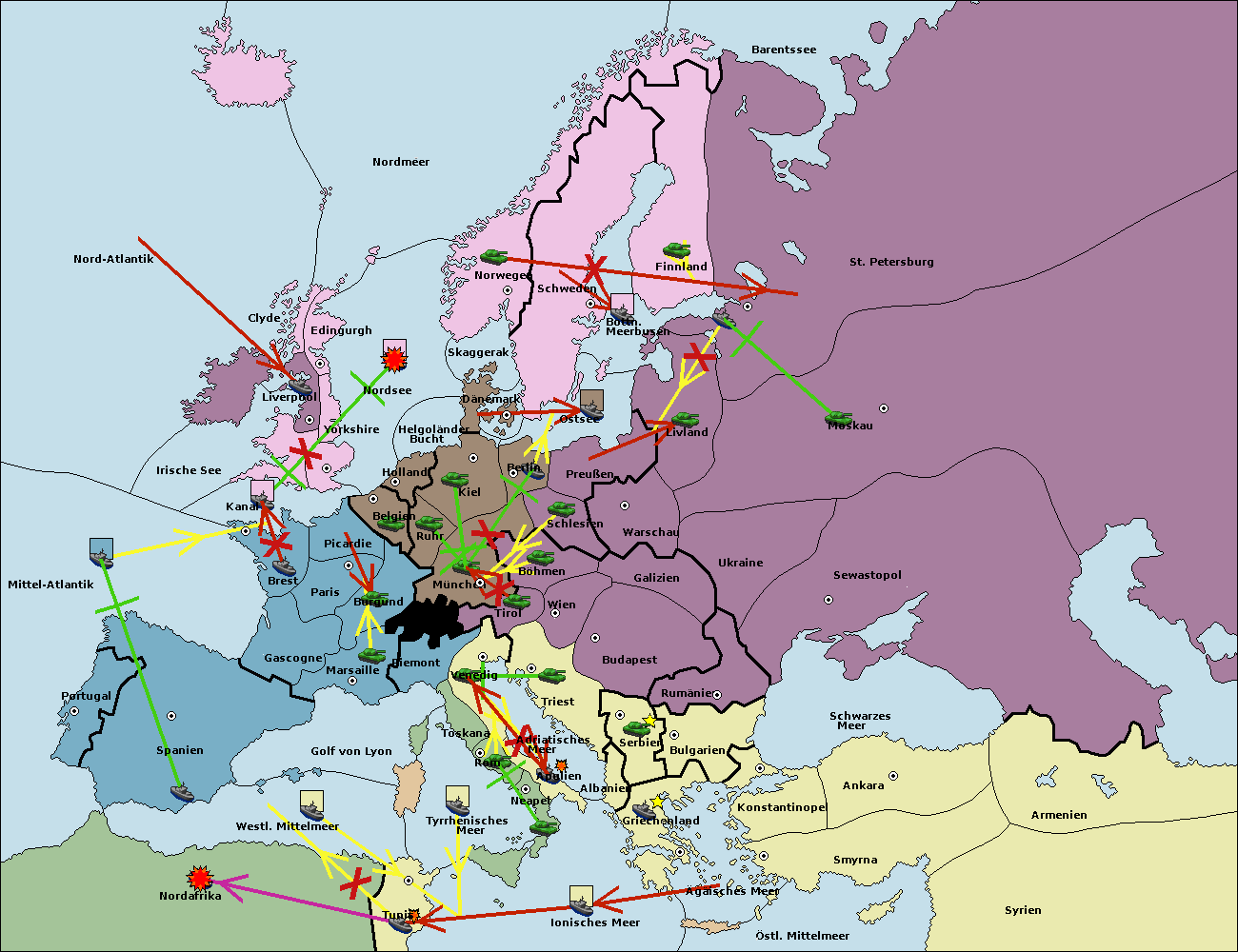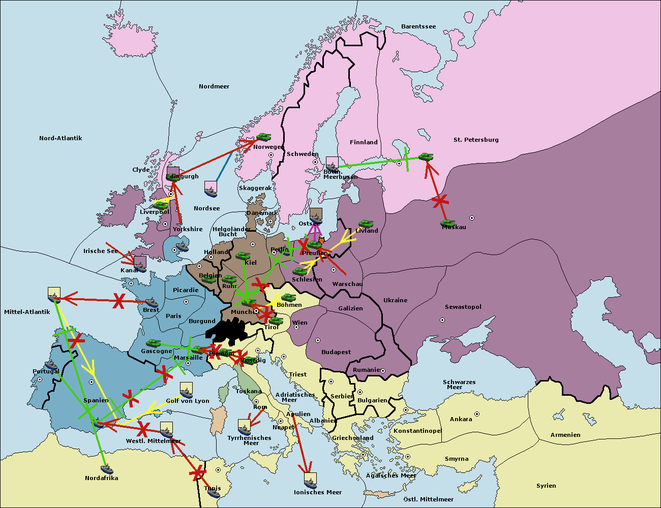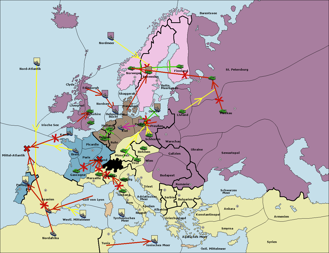 • Die Flotte in Spanien (Südküste) support move nach Mittel-Atlantik von westl. Mittelmeer.