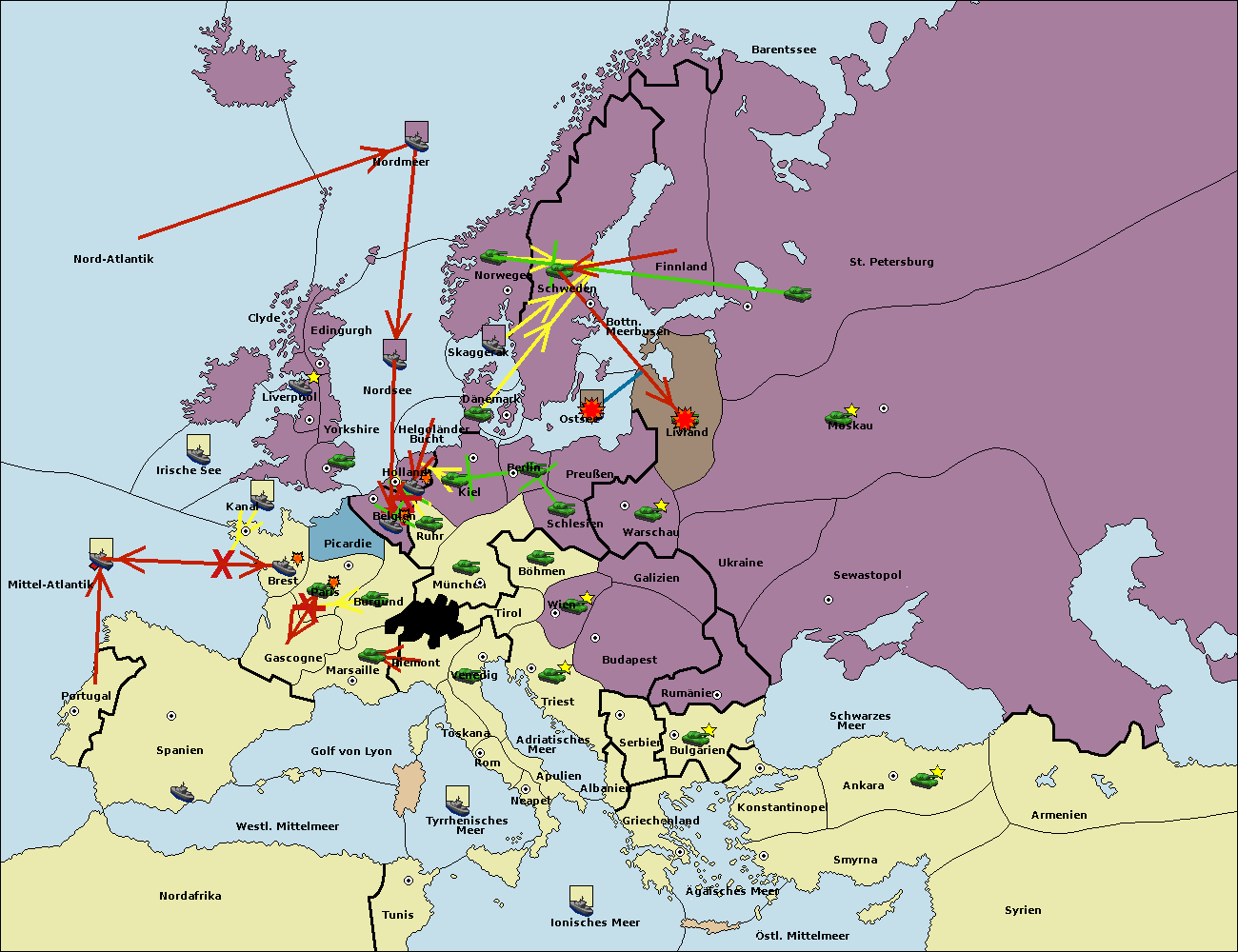 • Die Flotte in St. Petersburg (Nordküste) move nach Barentssee.