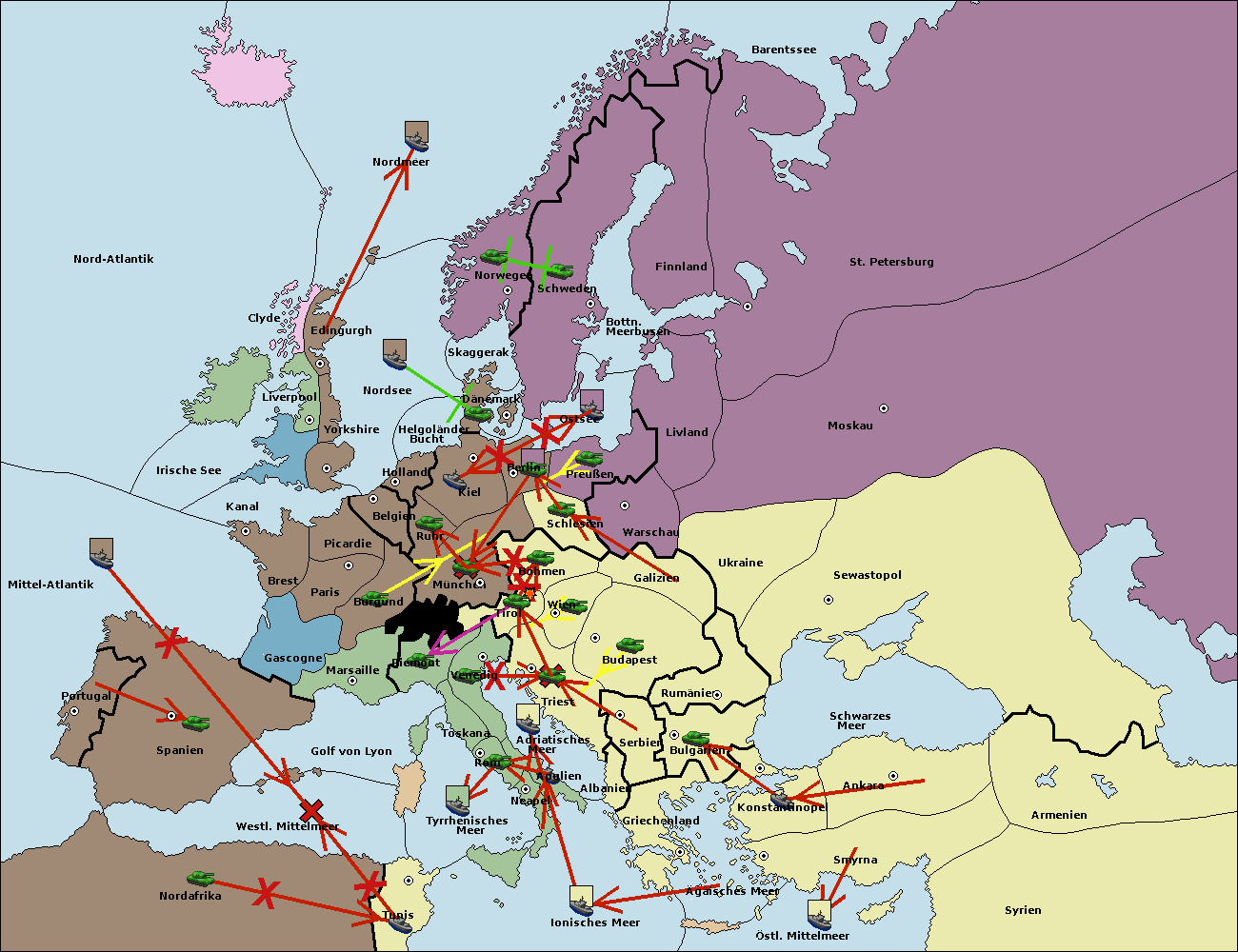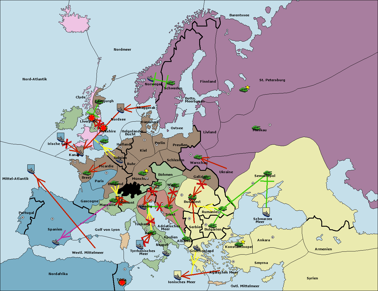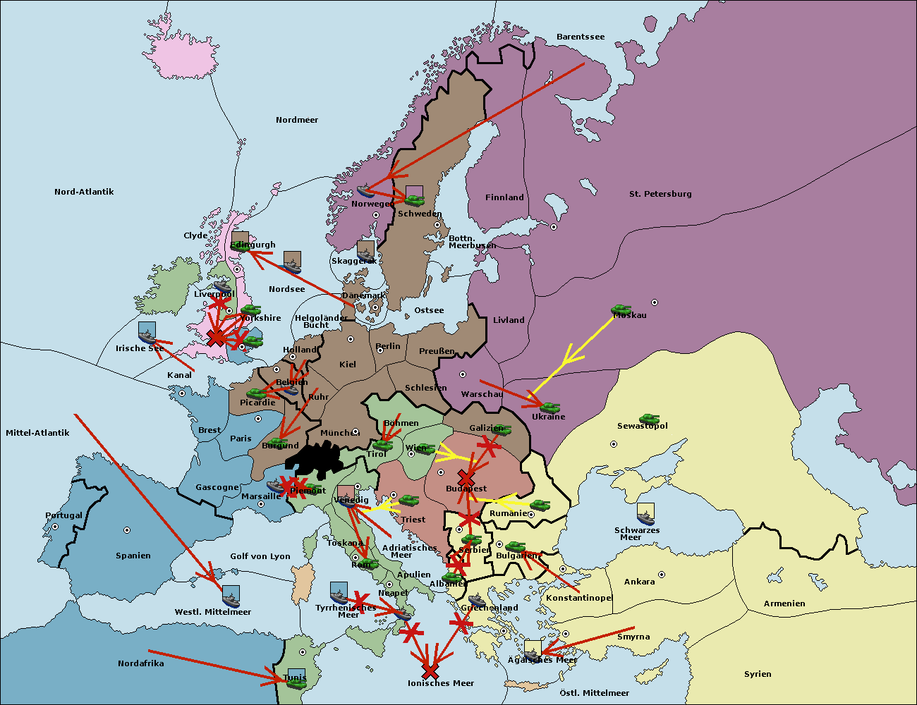 • Die Armee in Wien support move nach Triest von Serbien. (gescheitert)