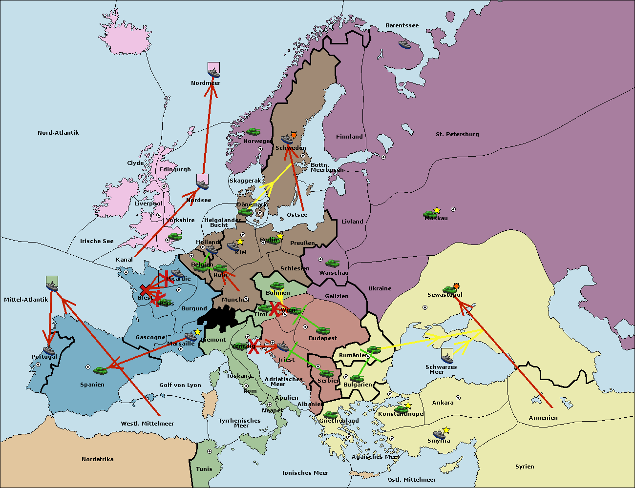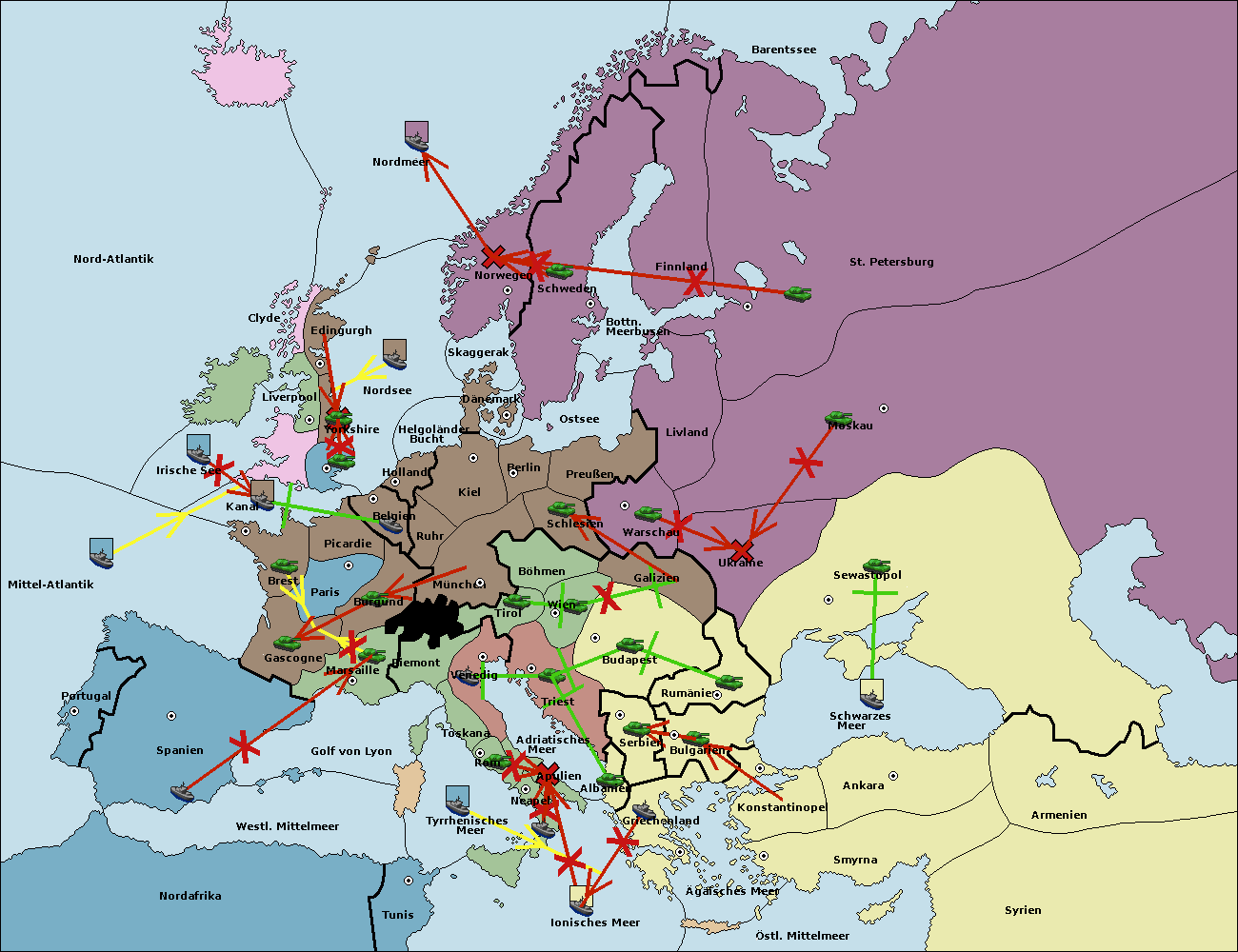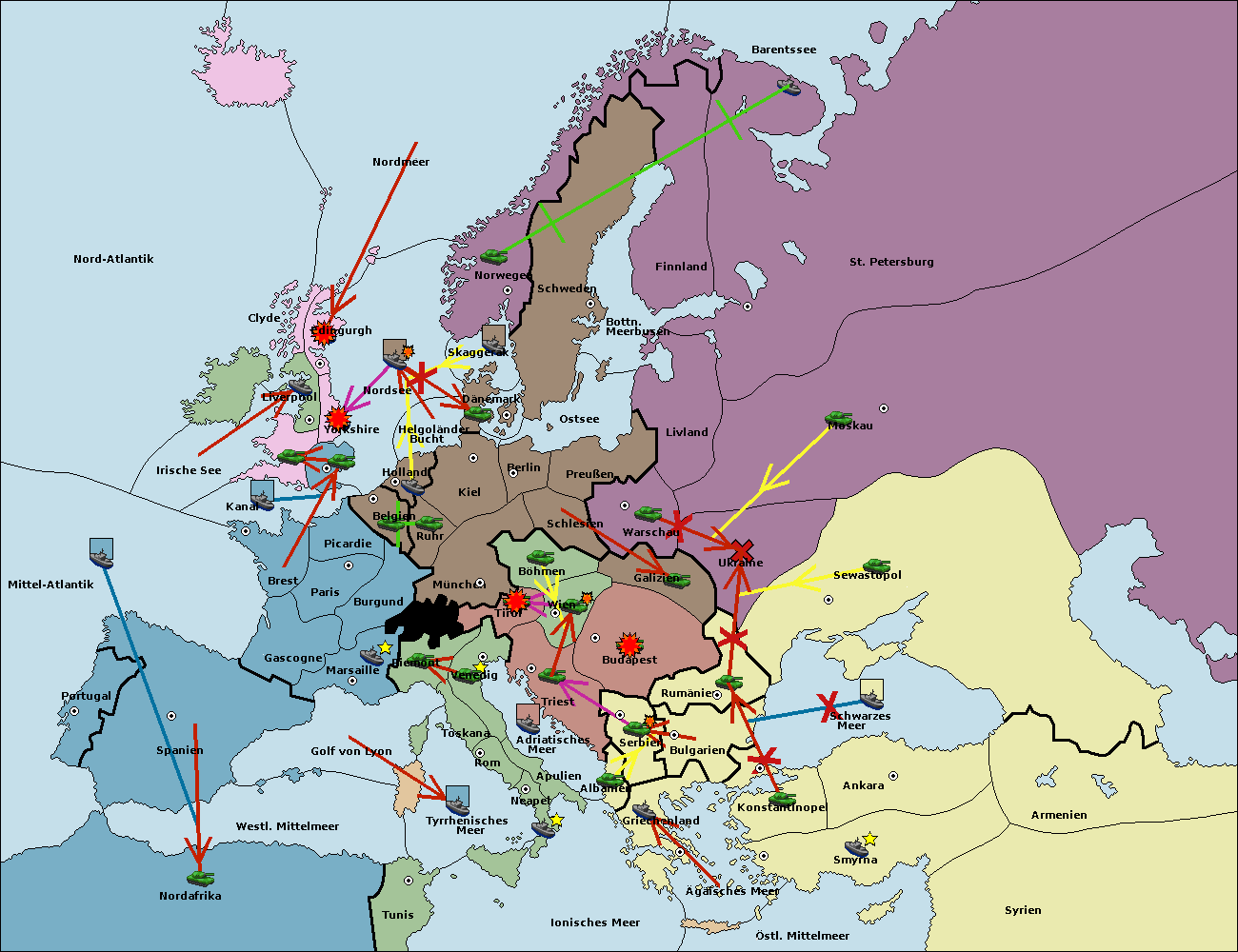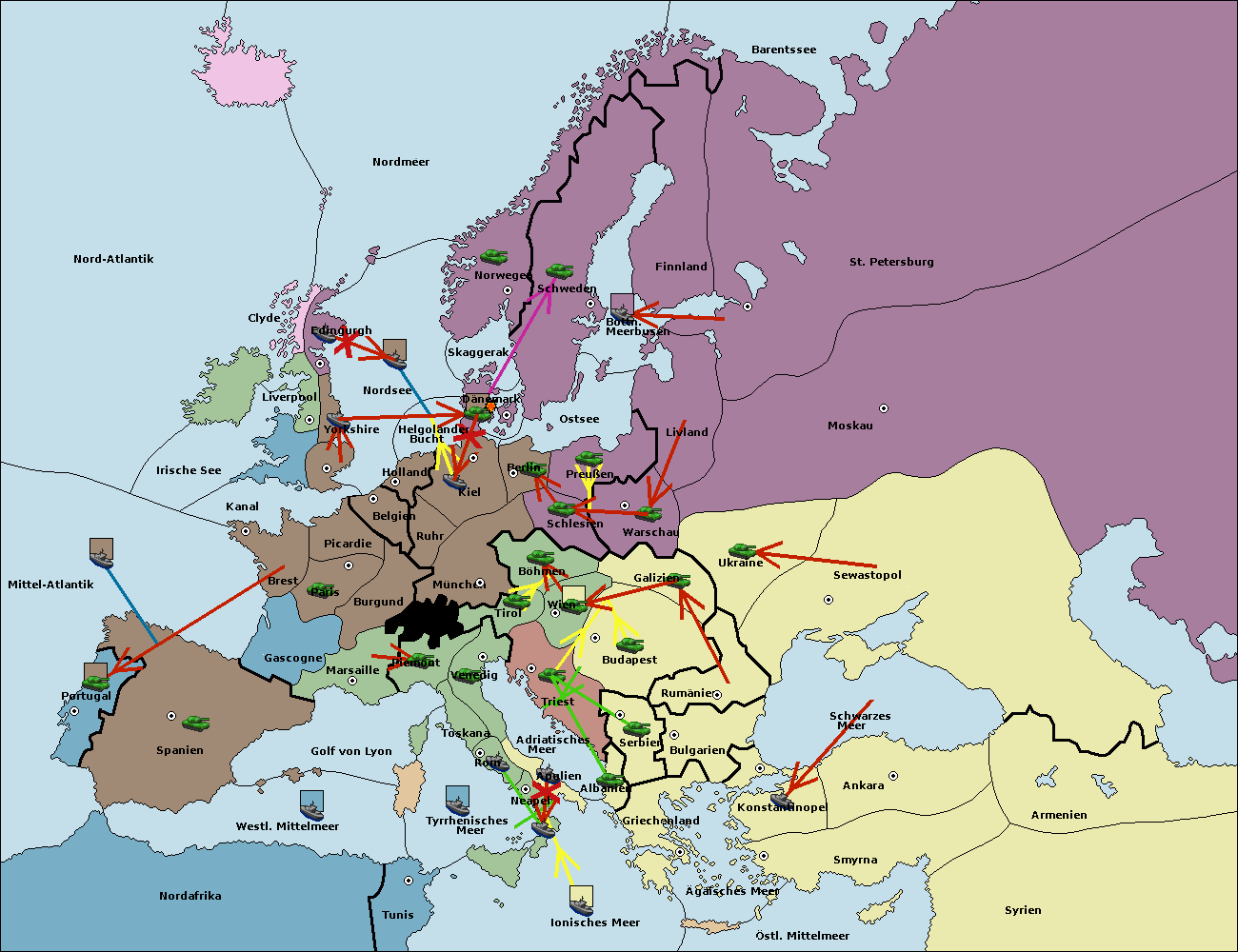 • Die Armee in Wien support move nach Triest von Serbien. (gescheitert)
