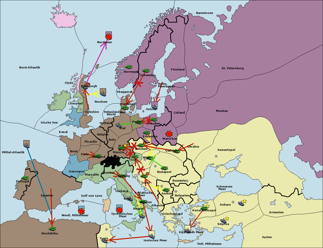 • Die Armee in Nord Afrika move nach Tunis. (gescheitert)