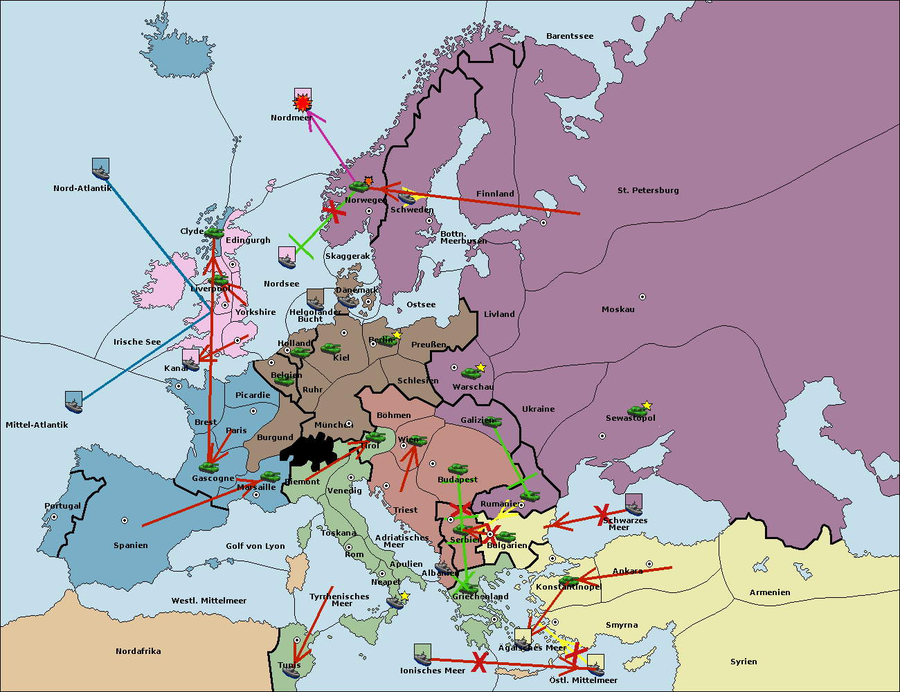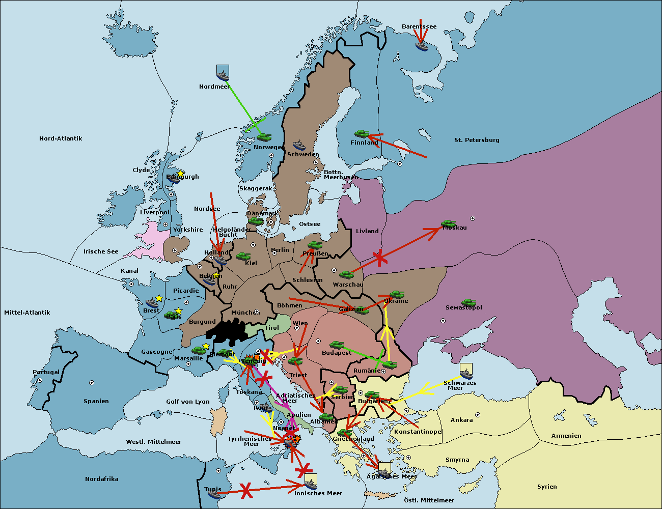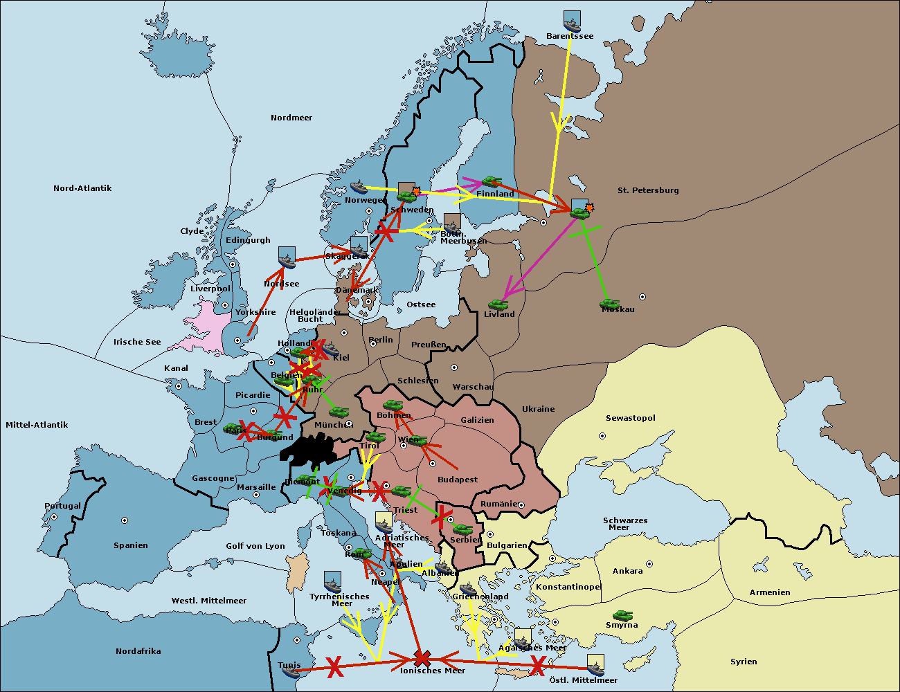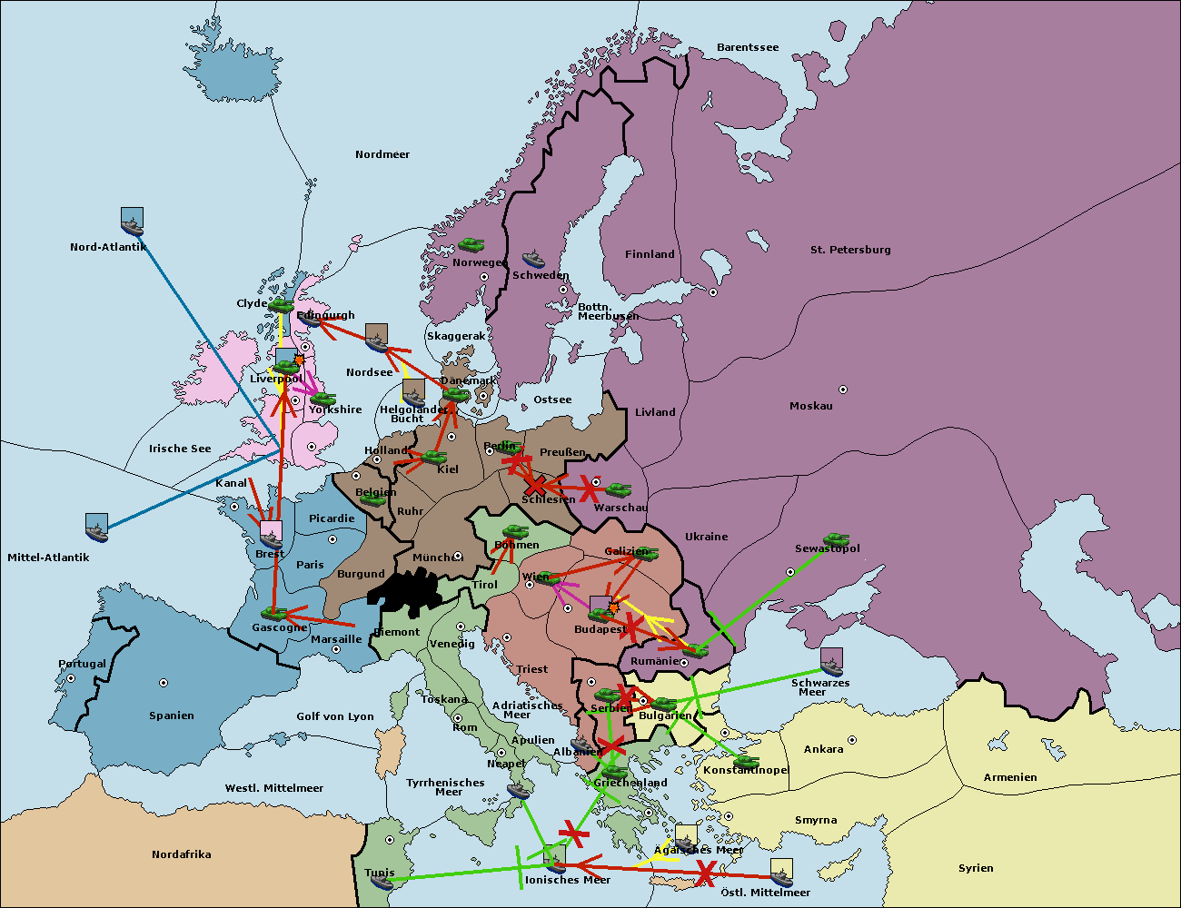 • Die Armee in Kiel support move nach München von Burgund. (gescheitert)