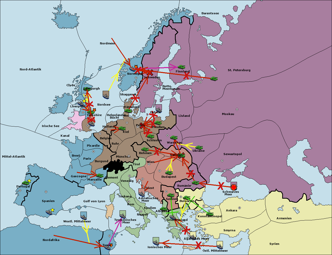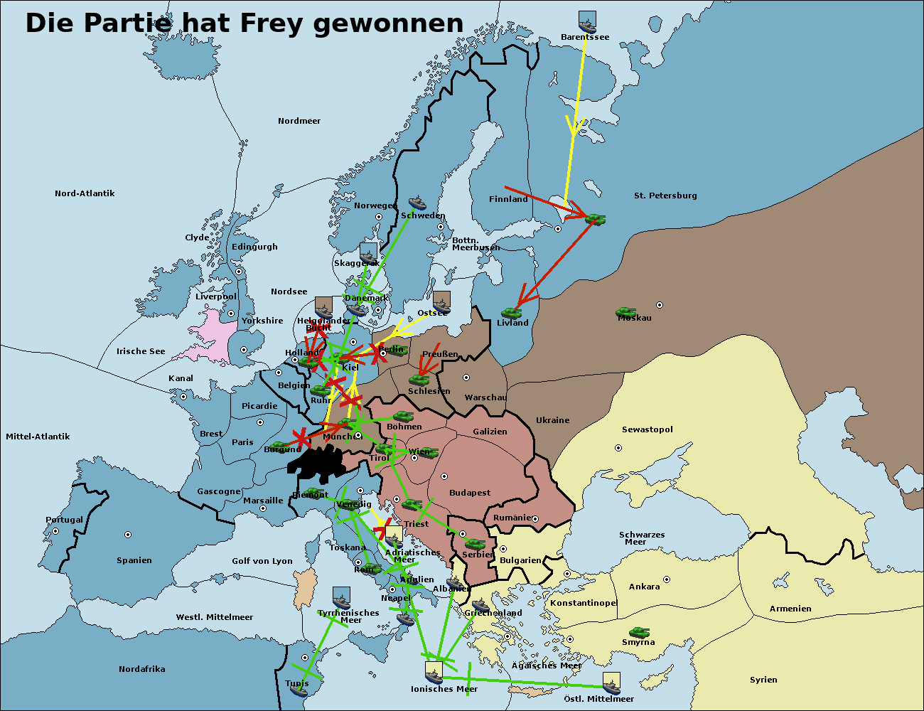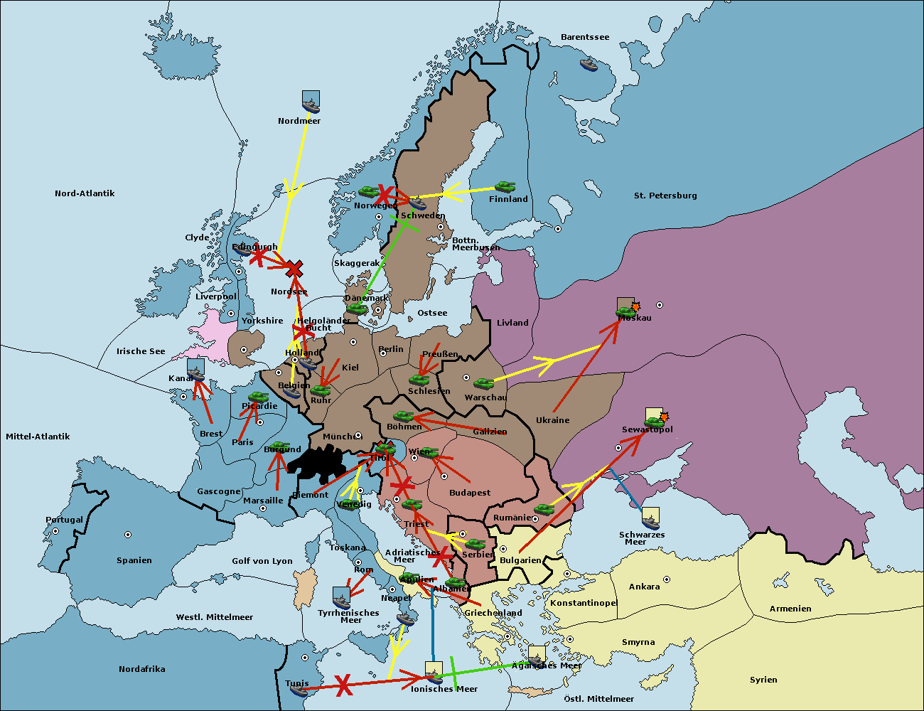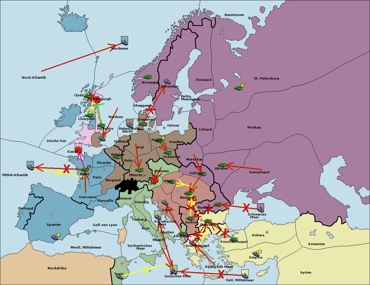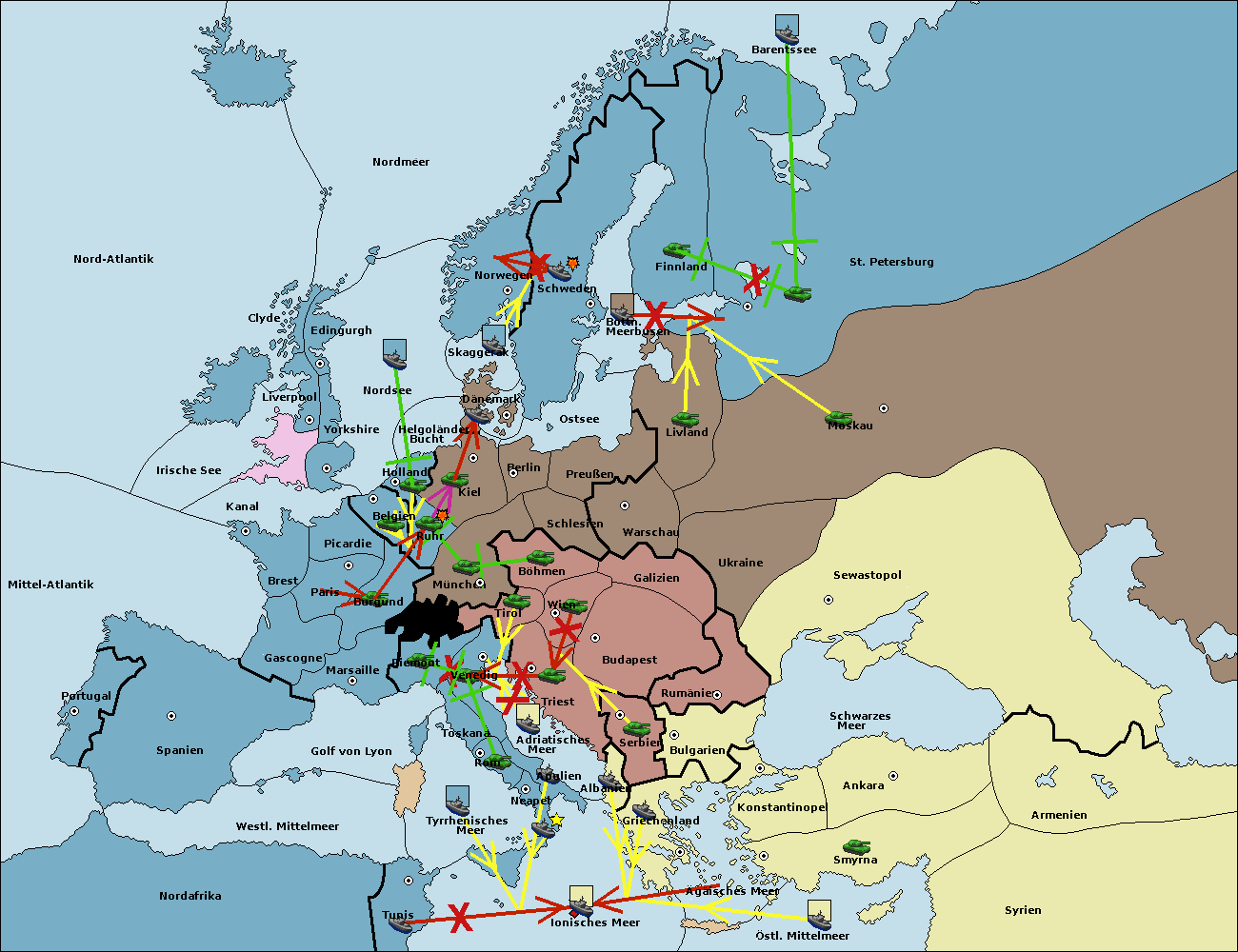 • Die Armee in Kiel support move nach München von Burgund. (gescheitert)