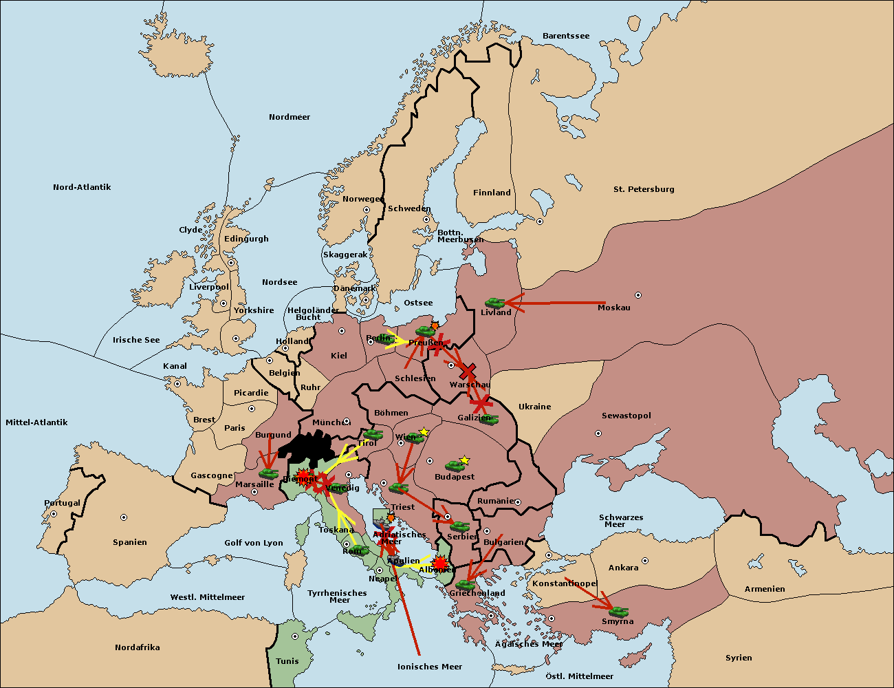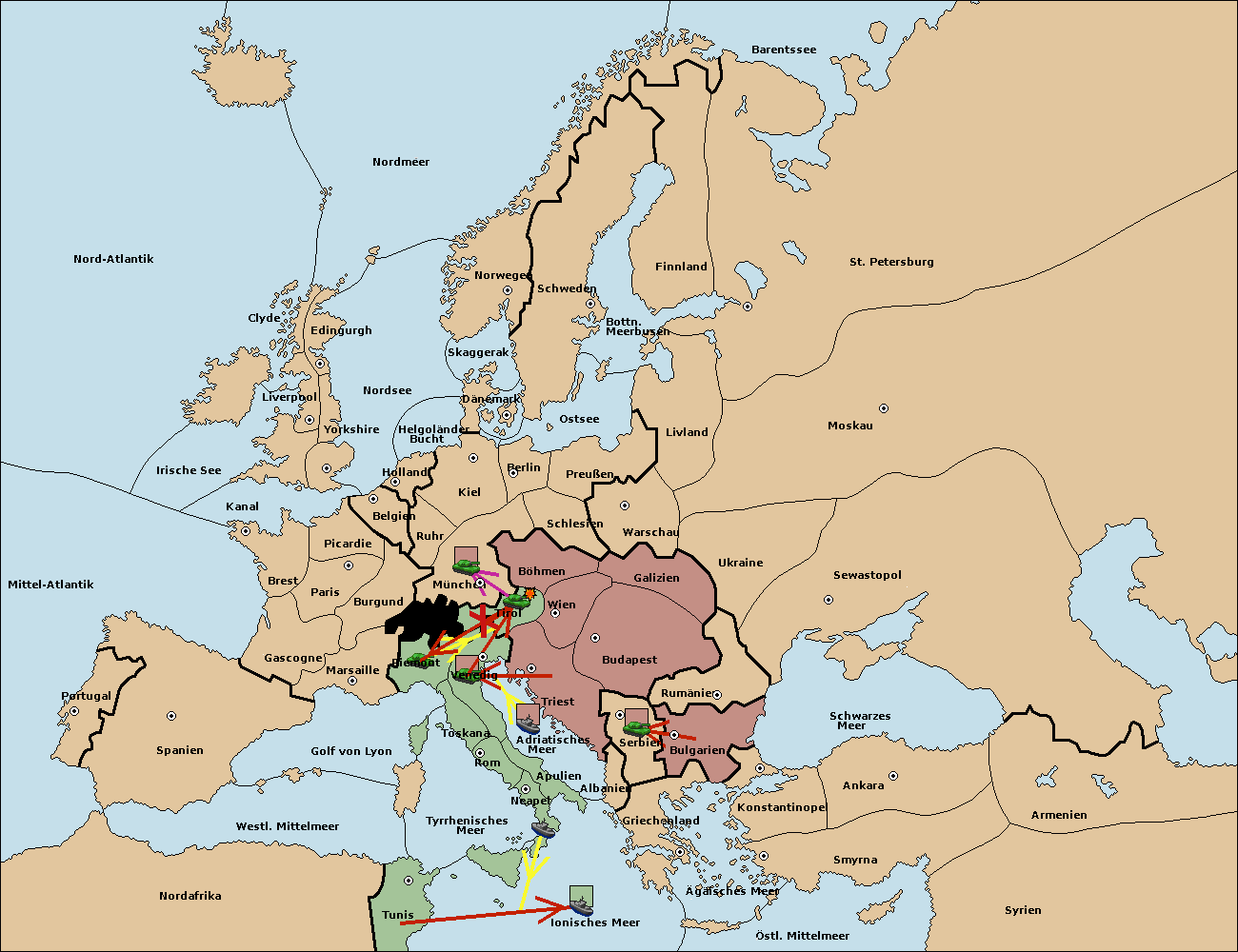 • Die Armee in Piemont support move nach Tirol von Venedig.