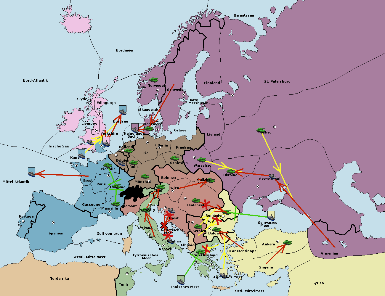 • Die Flotte in Sewastopol support move nach Rumänien von Budapest. (gescheitert)