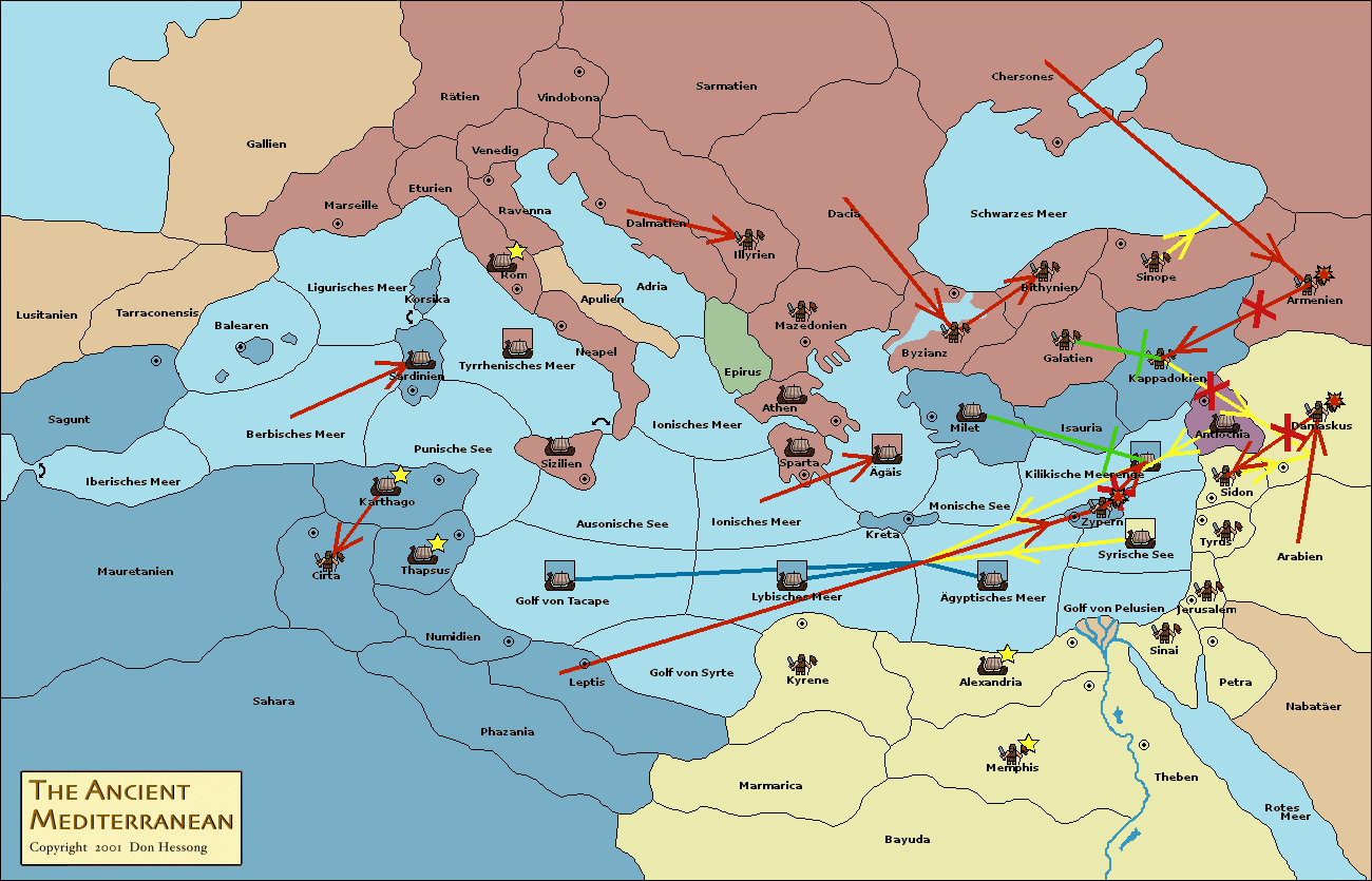 • Die Flotte in Antiochia move nach Kilikische Meerenge.