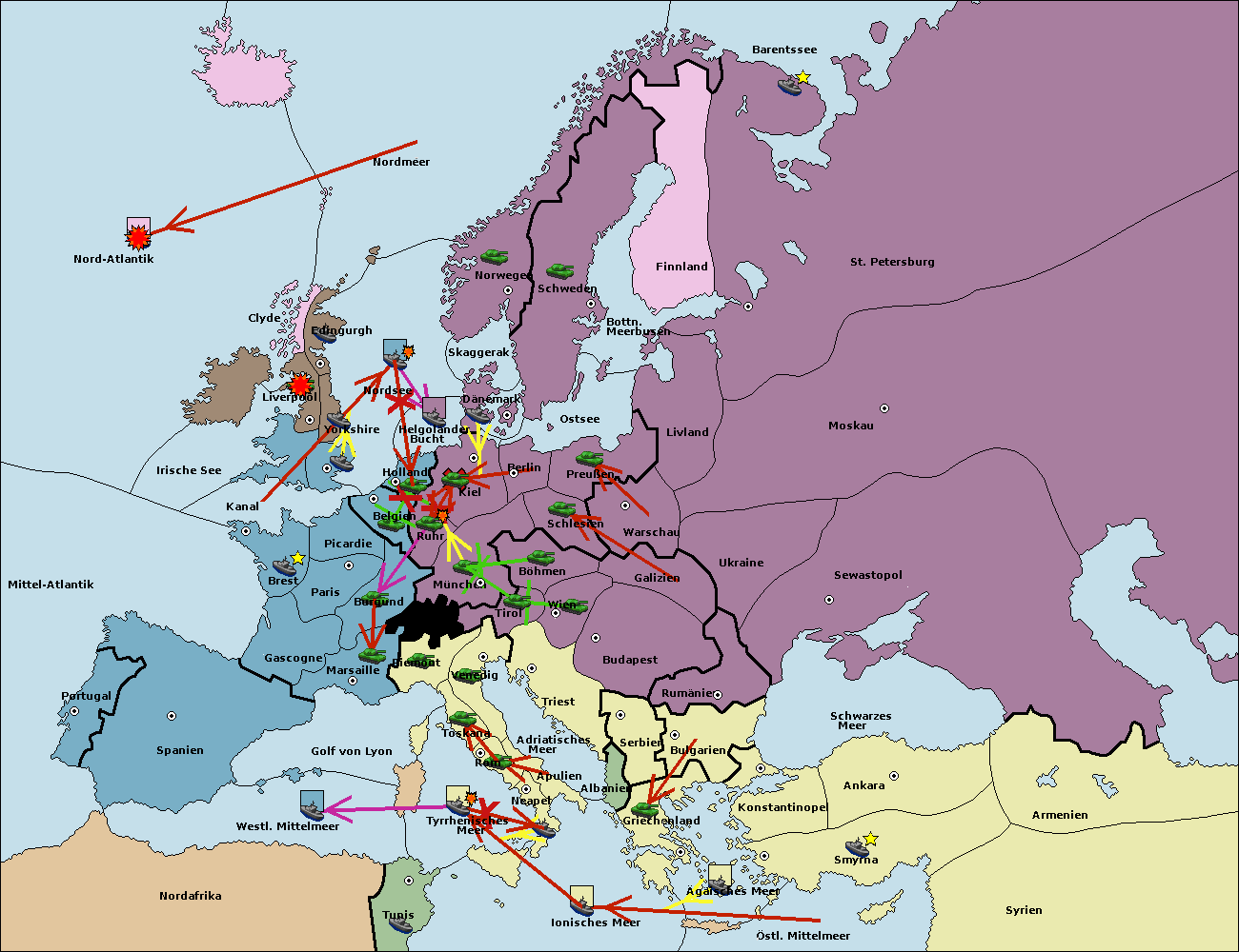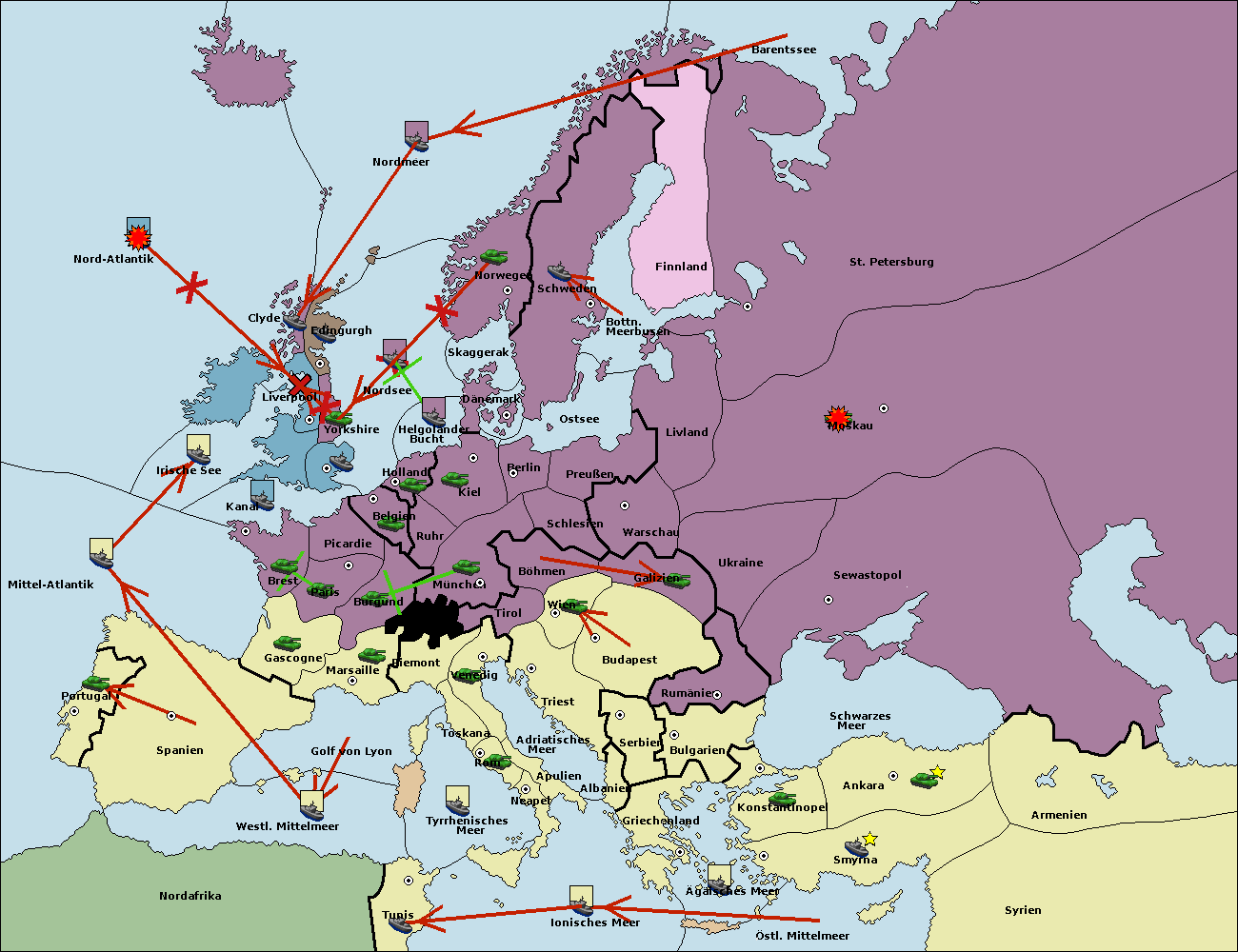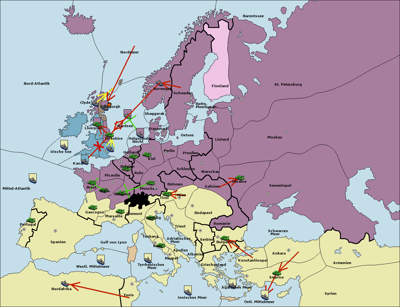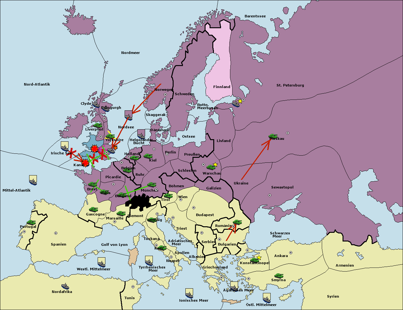 • Die Flotte in Bulgarien (Südküste) move nach Griechenland.