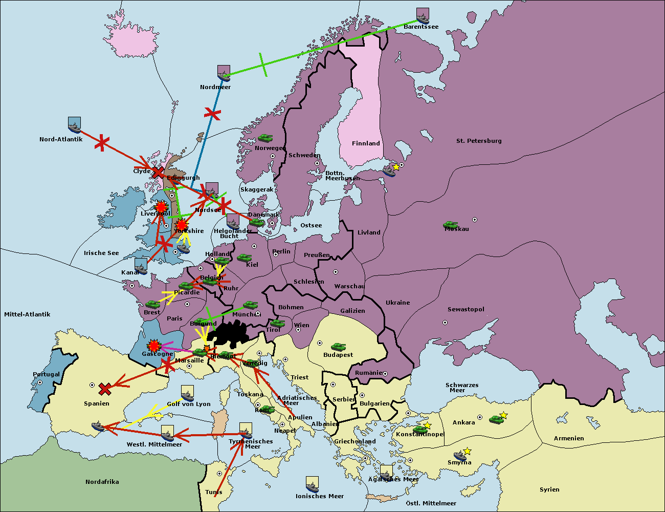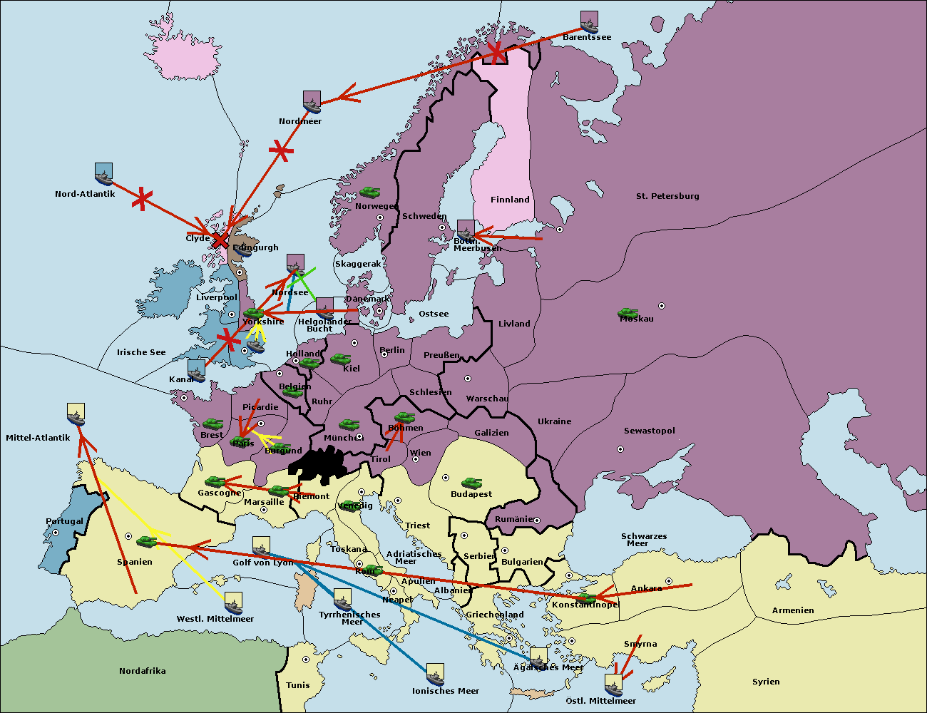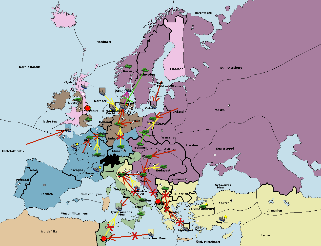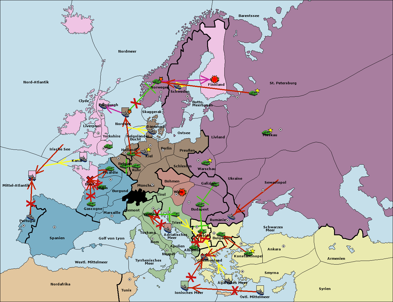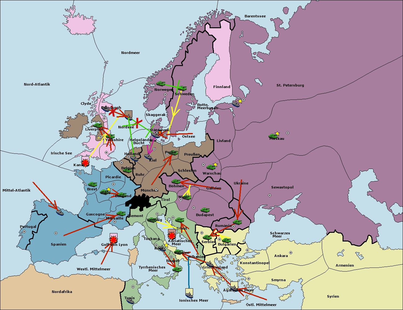 • Die Flotte in Bulgarien (Südküste) move nach Griechenland.