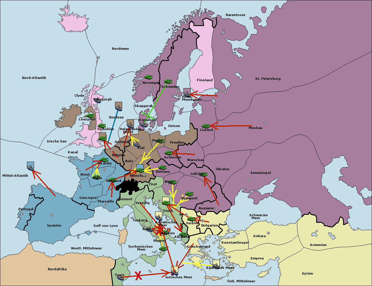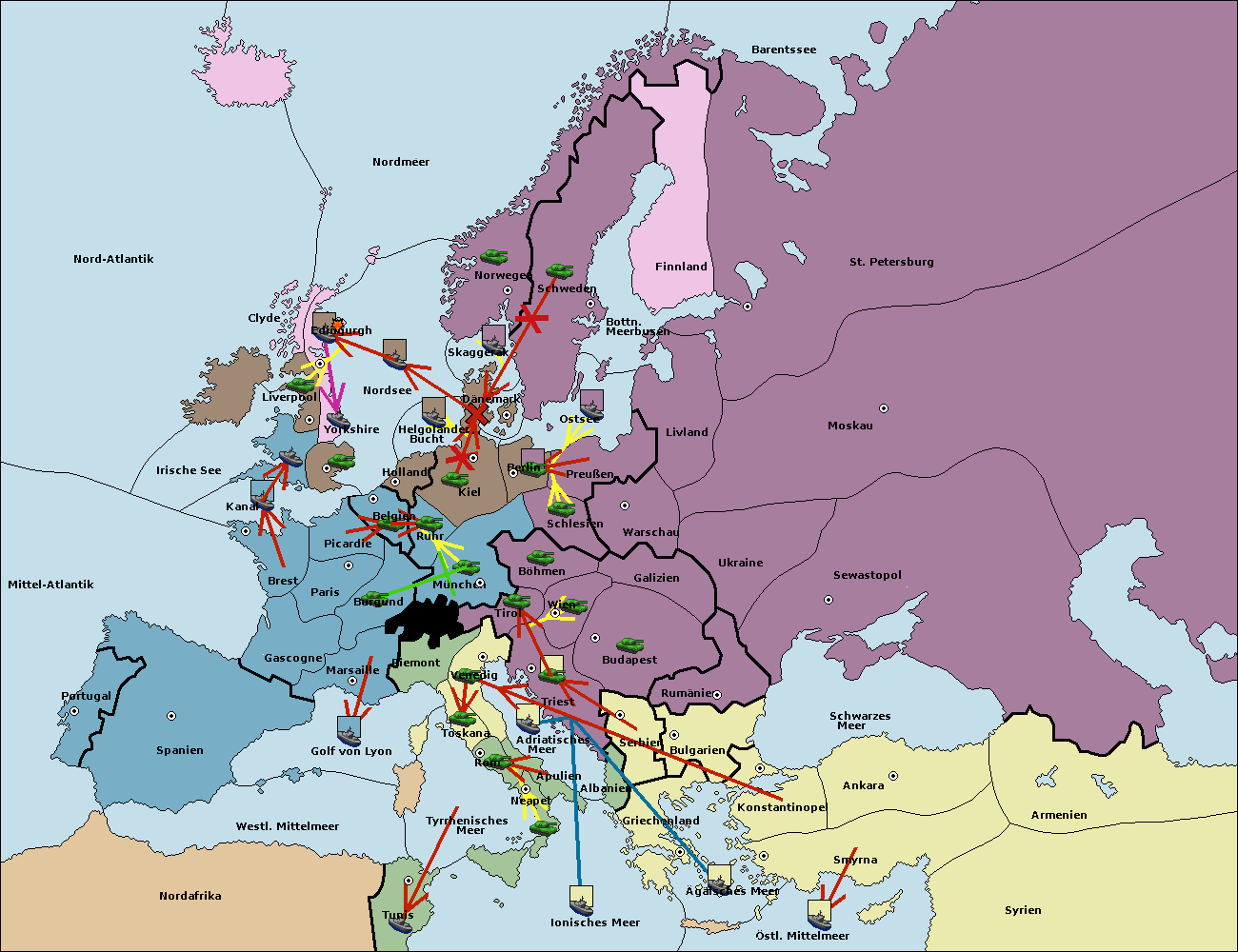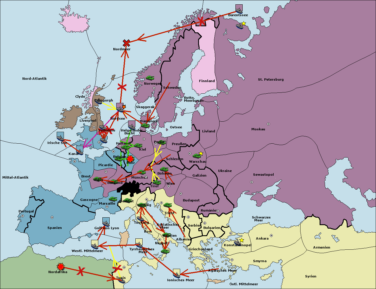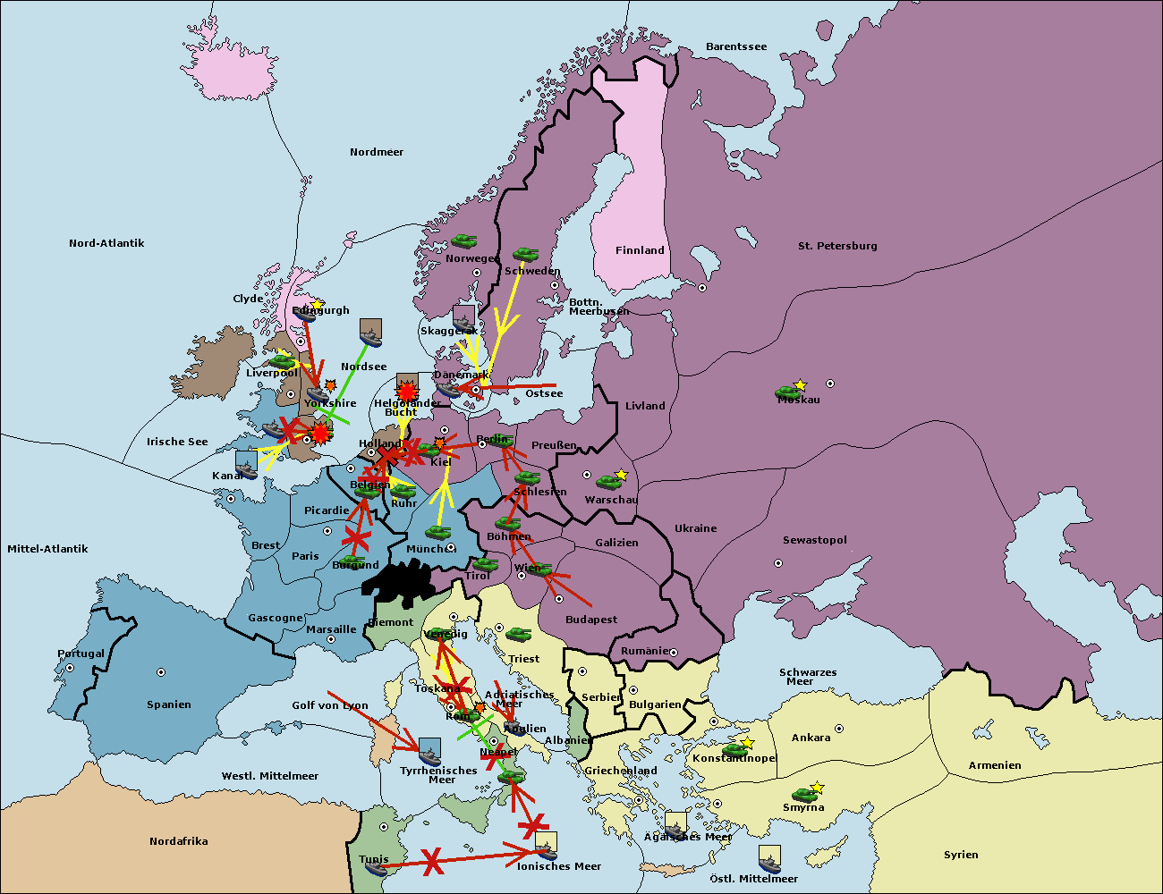 • Die Flotte in Bulgarien (Südküste) move nach Griechenland.