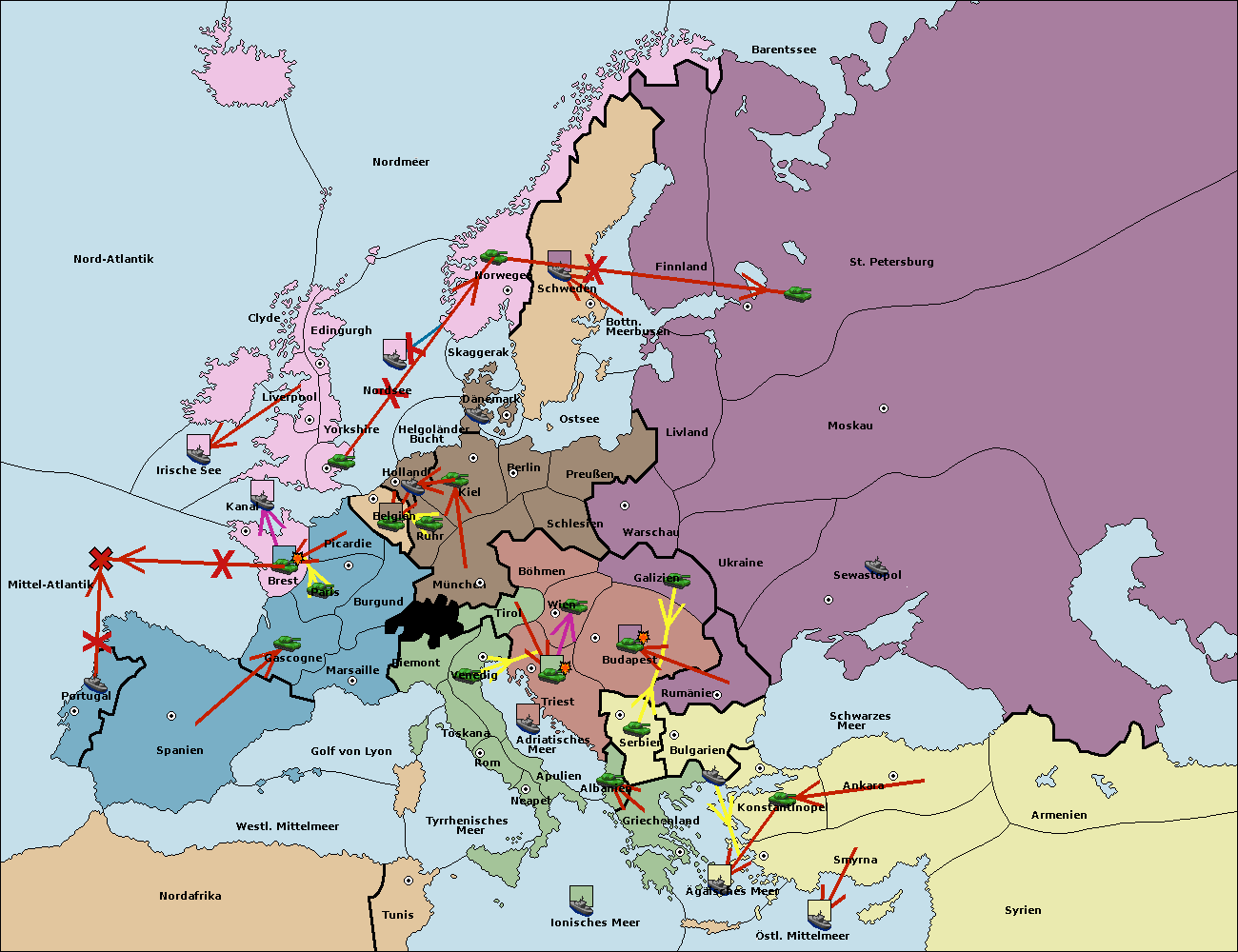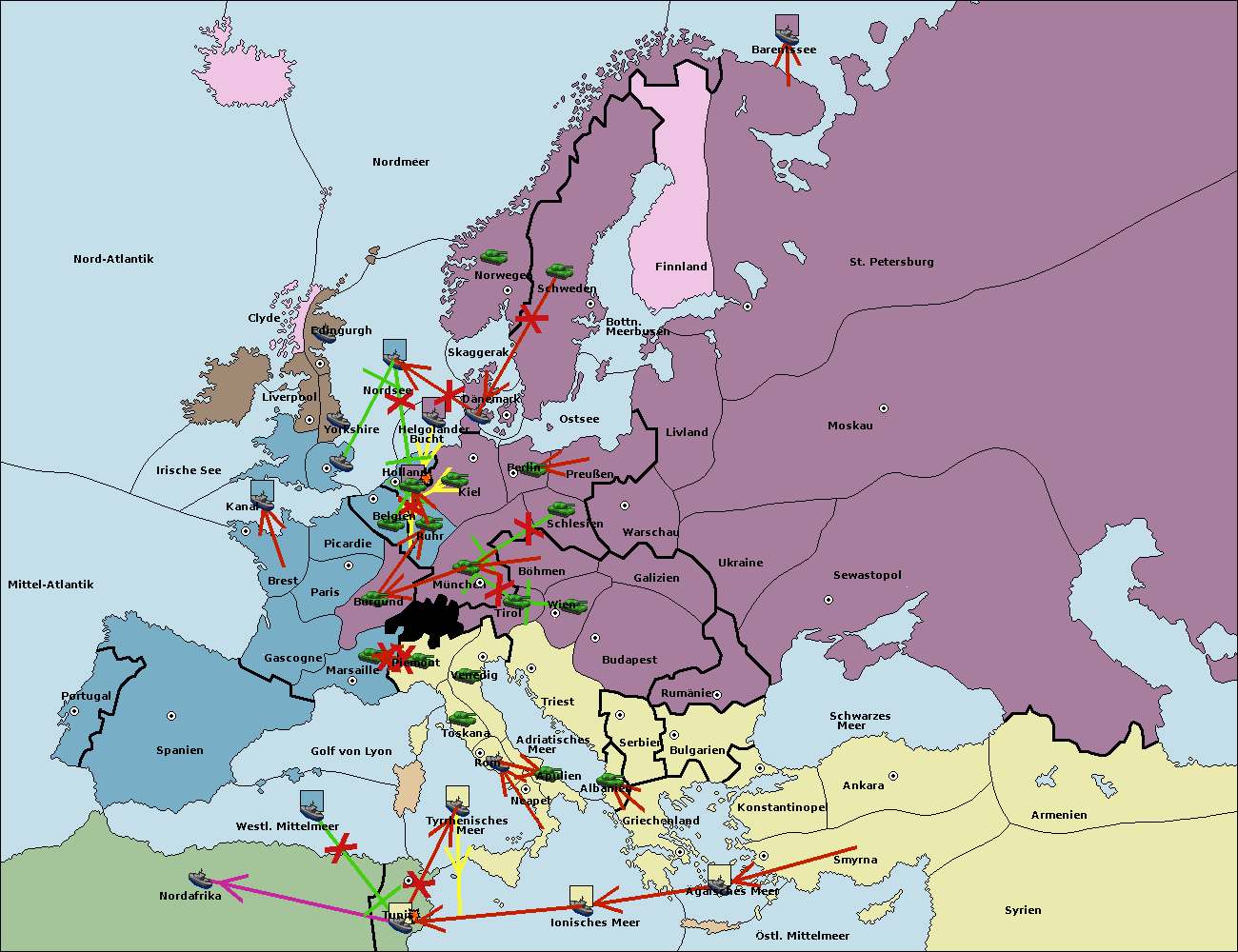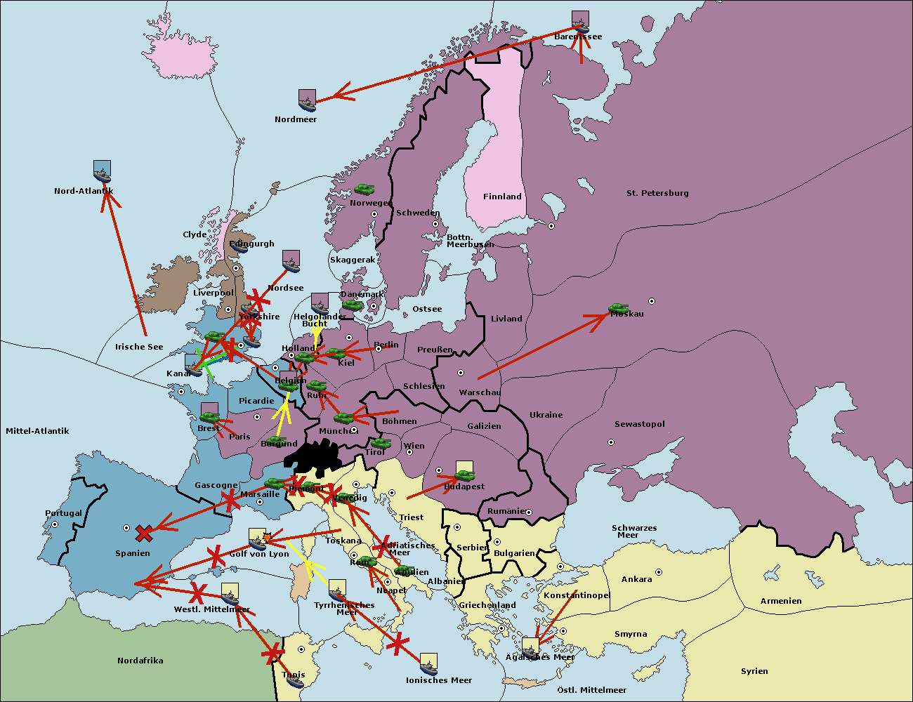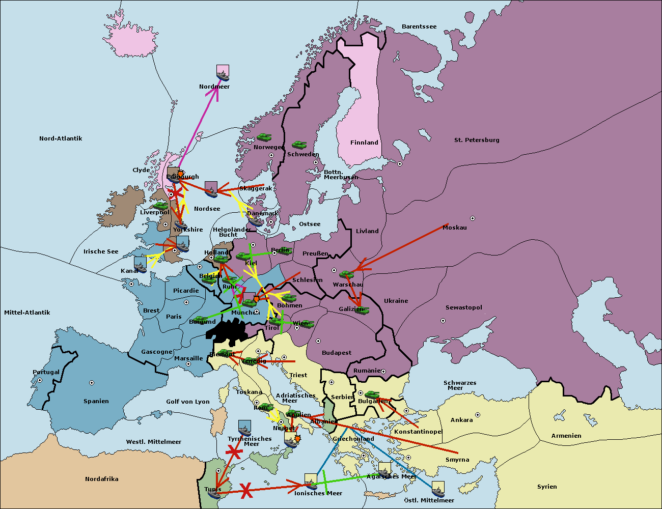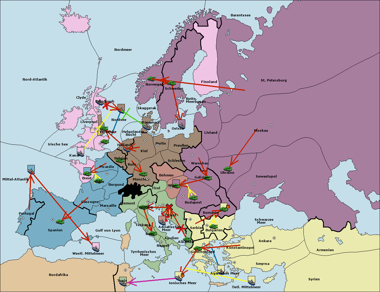 • Die Flotte in Bulgarien (Südküste) move nach Griechenland.