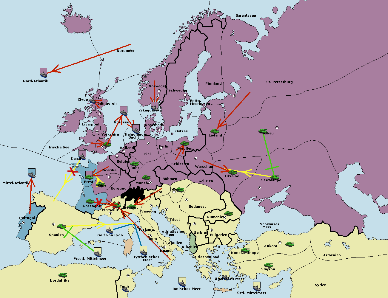 • Die Armee in Nord Afrika move nach Tunis. (gescheitert)