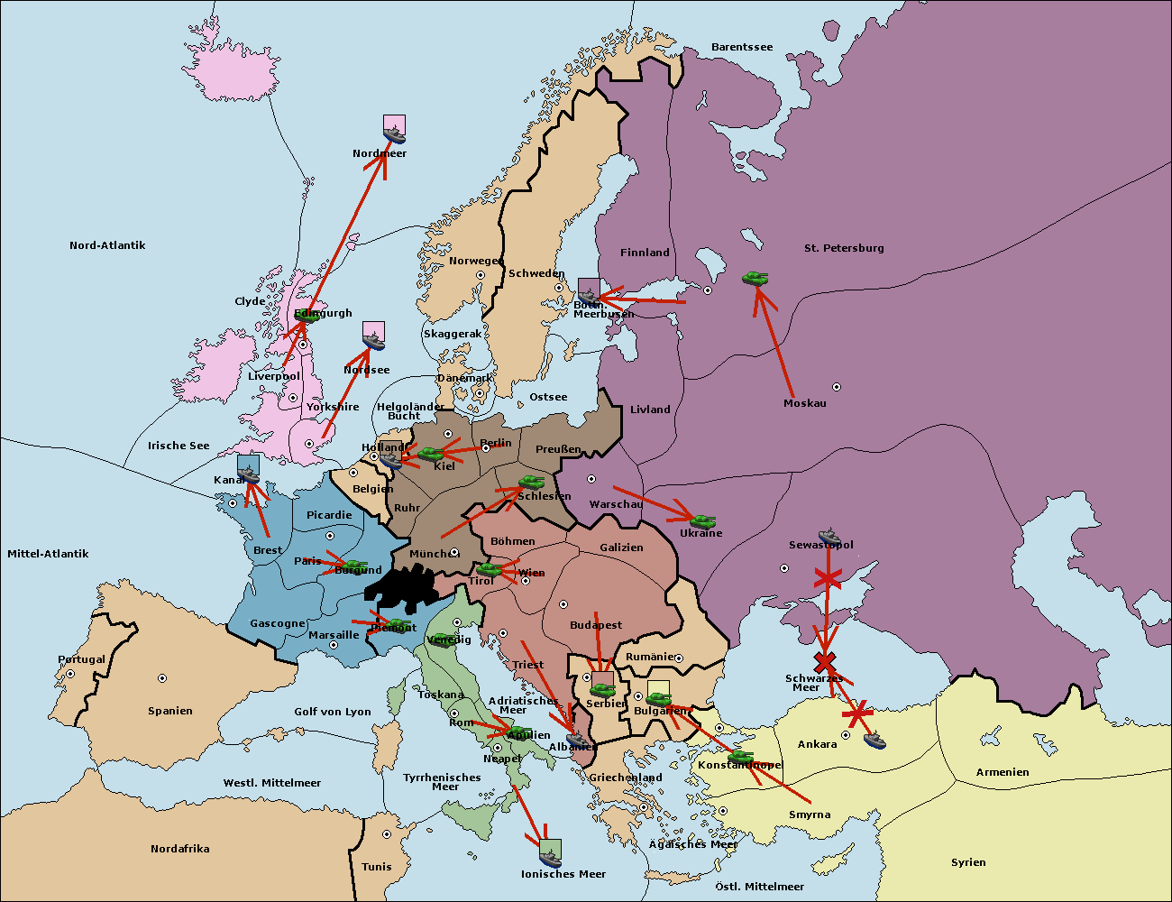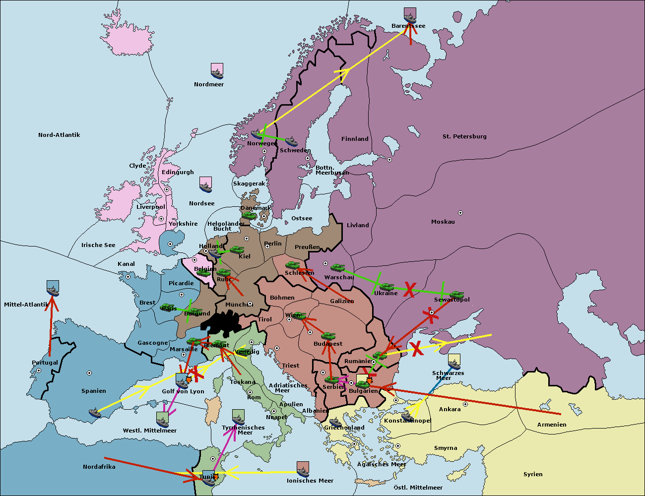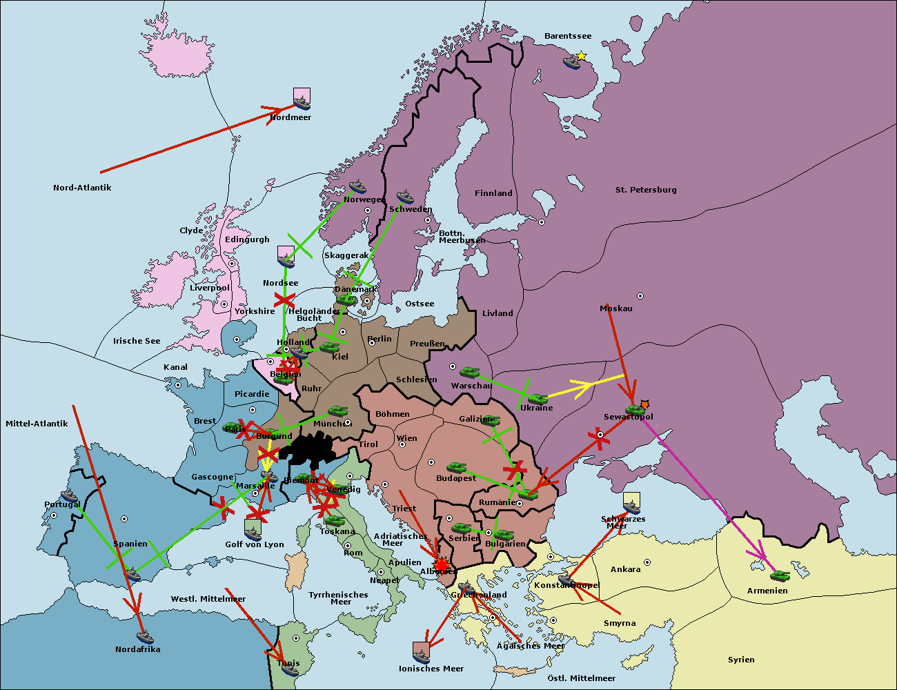 • Die Armee in Bulgarien wird zerstörtFlotte in Bulgarien gebaut.