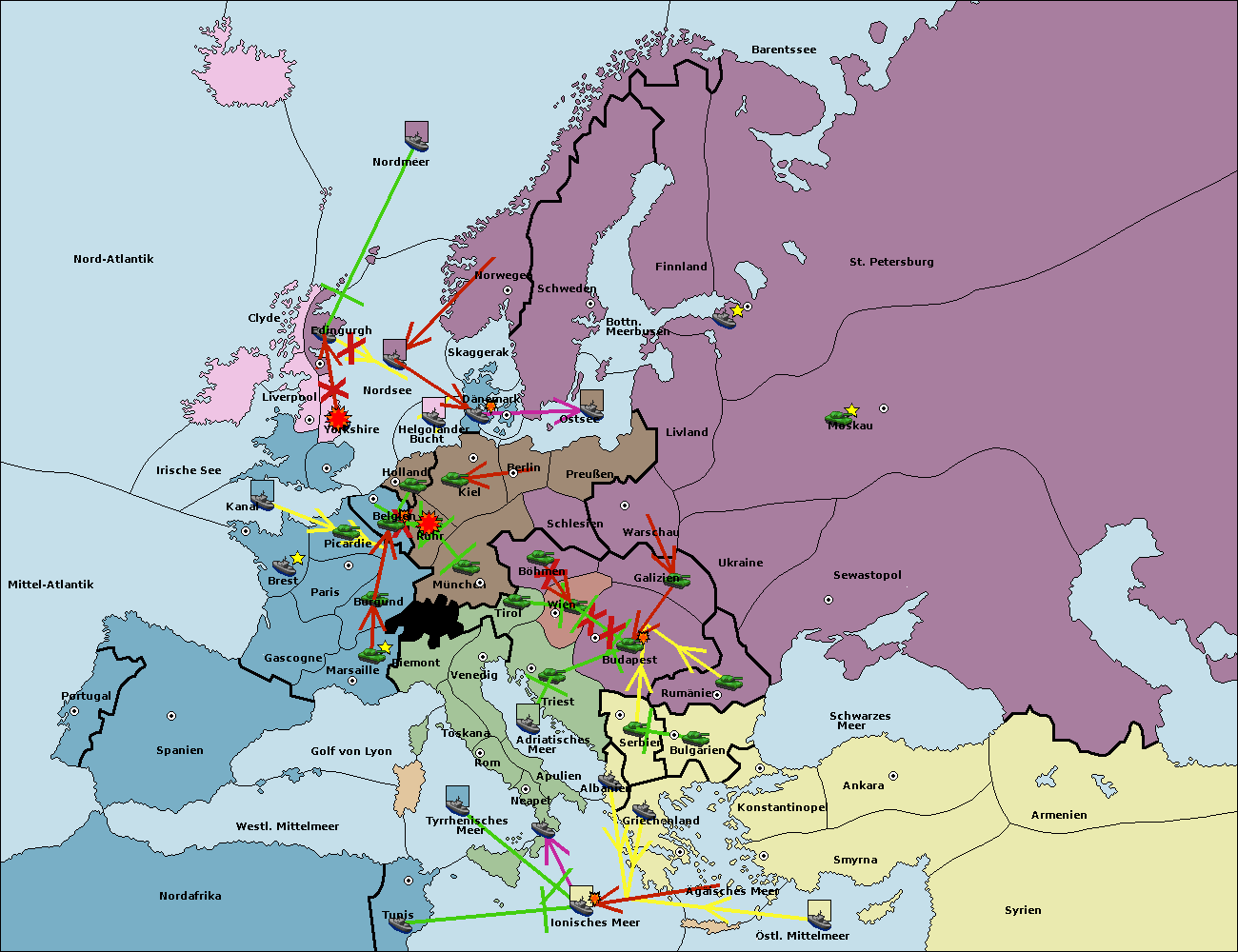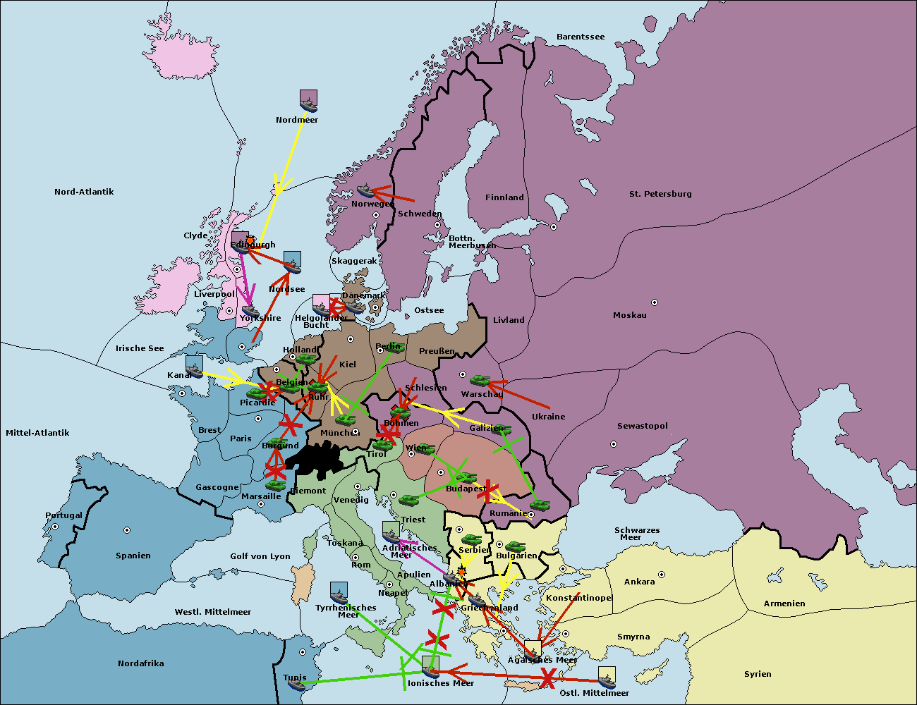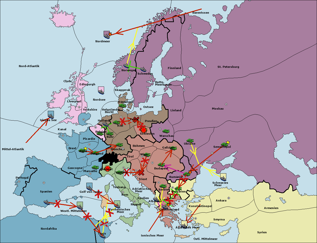 • Die Armee in Bulgarien wird zerstörtFlotte in Bulgarien gebaut.