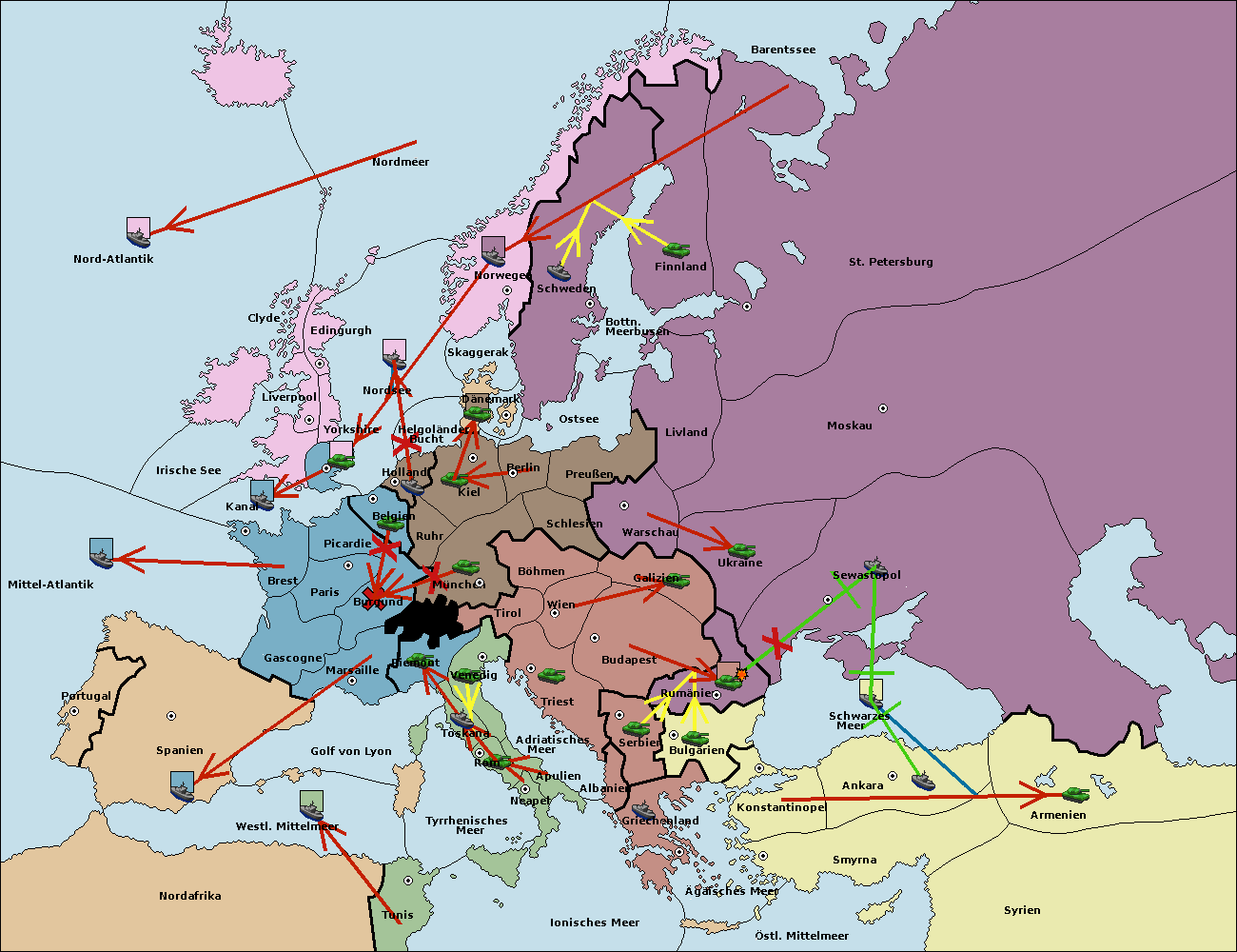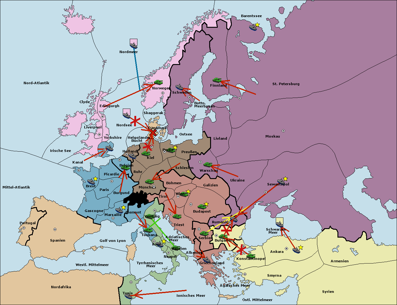 • Die Flotte in St. Petersburg (Nordküste) move nach Norwegen.