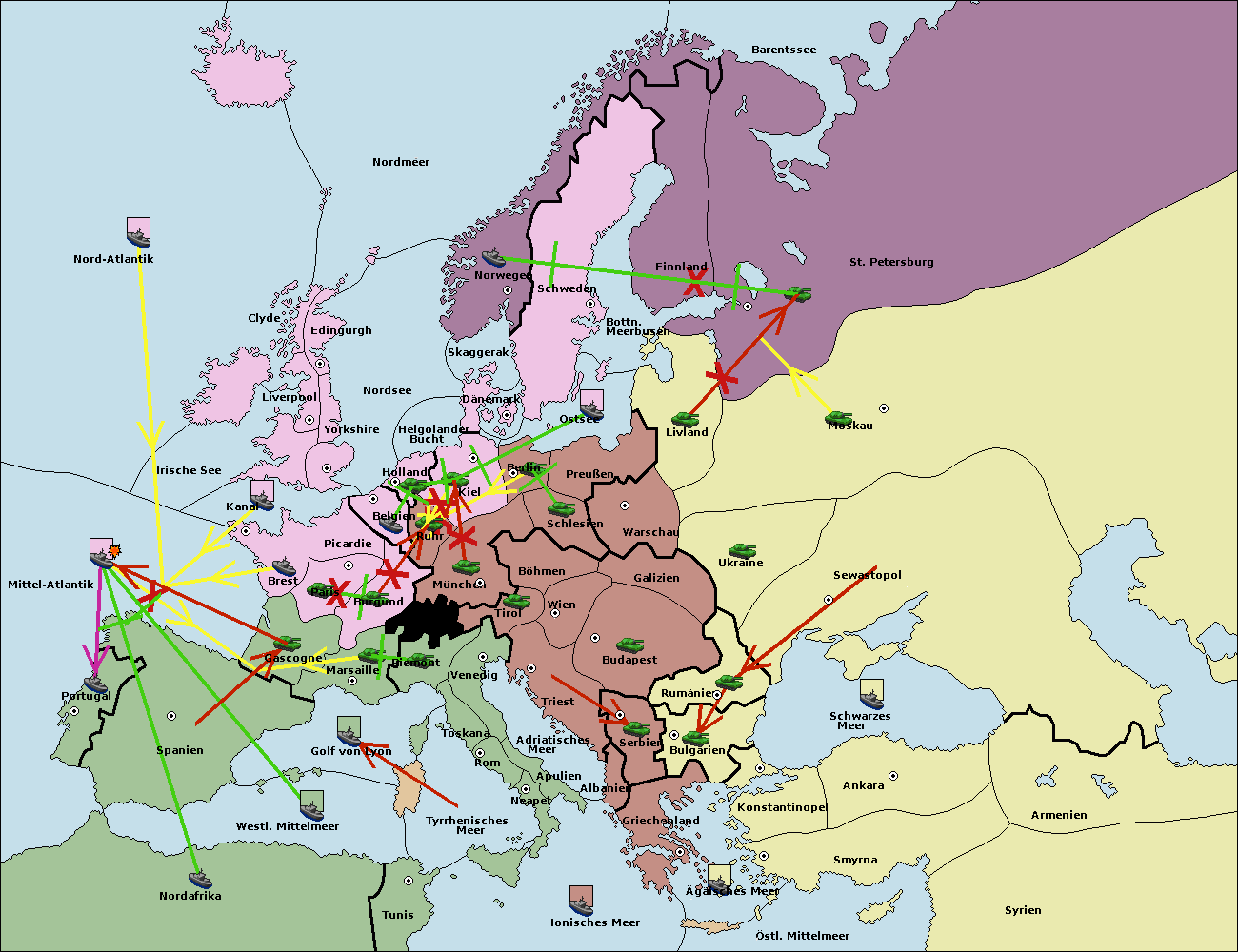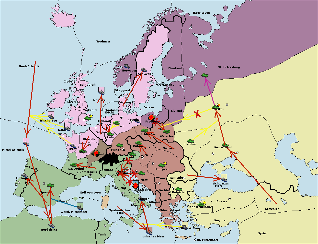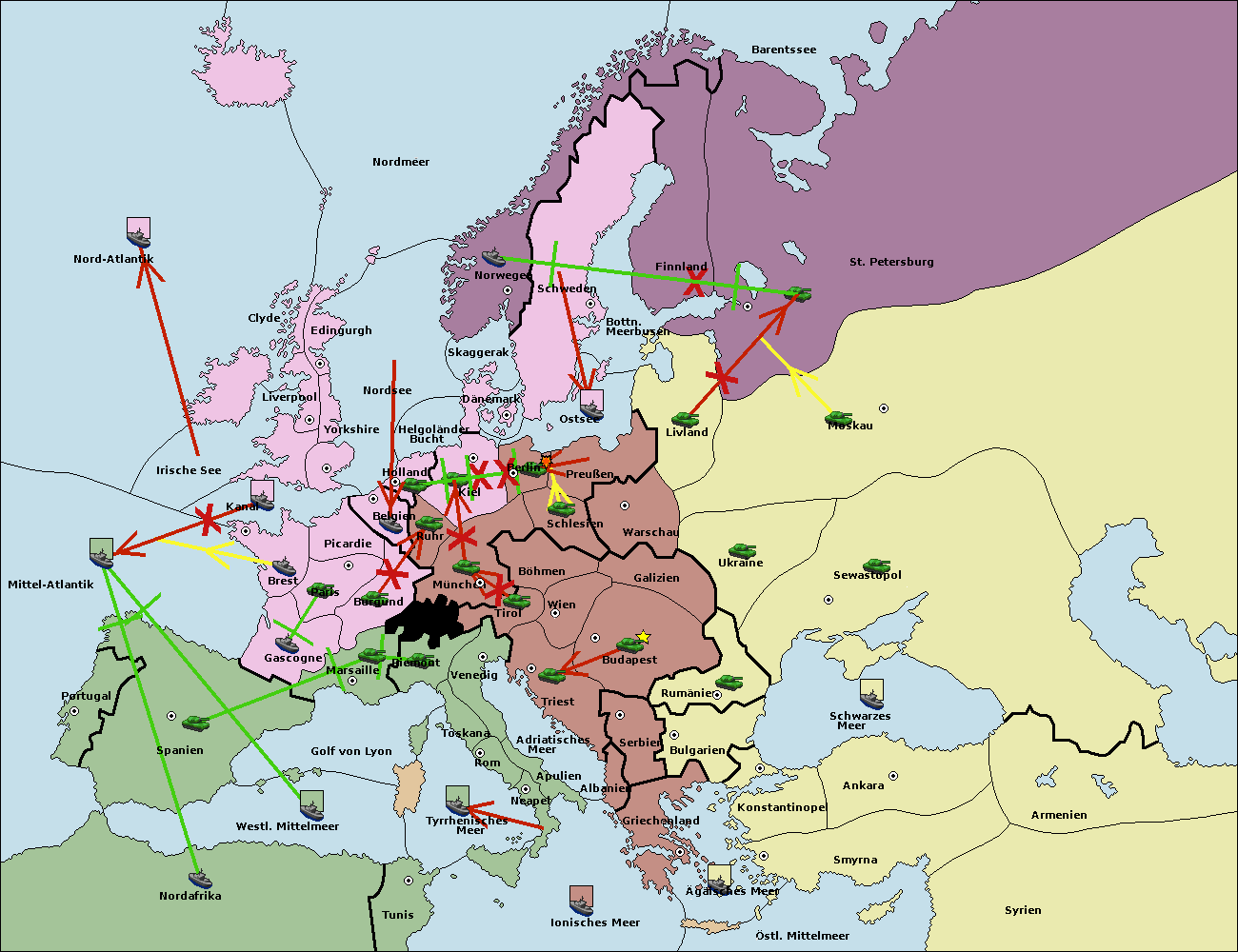 • Die Armee in St. Petersburg support hold nach Norwegen. (gescheitert)