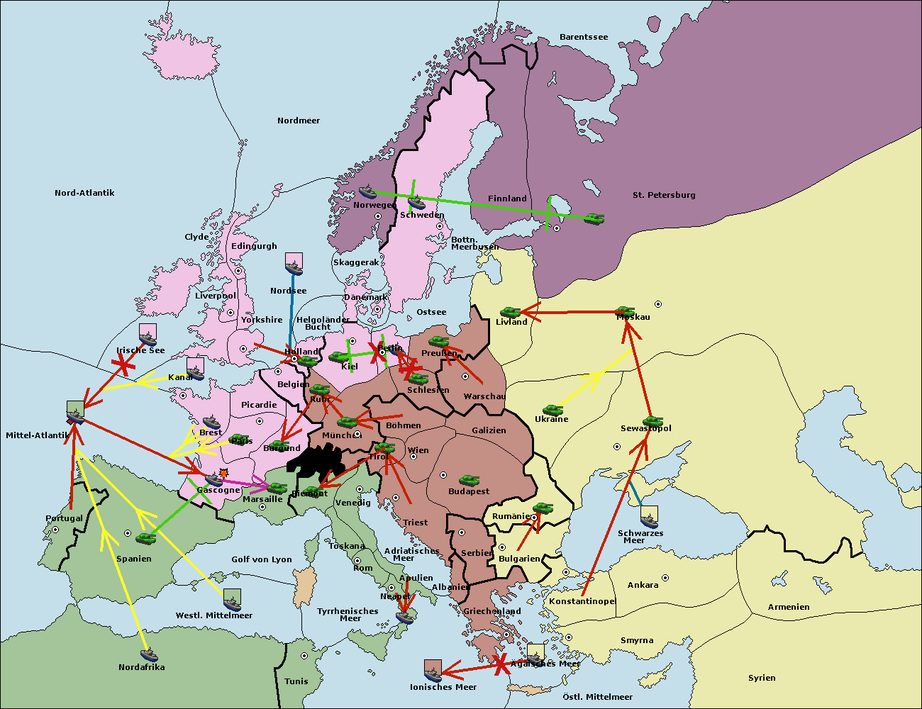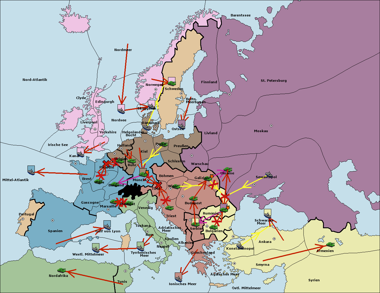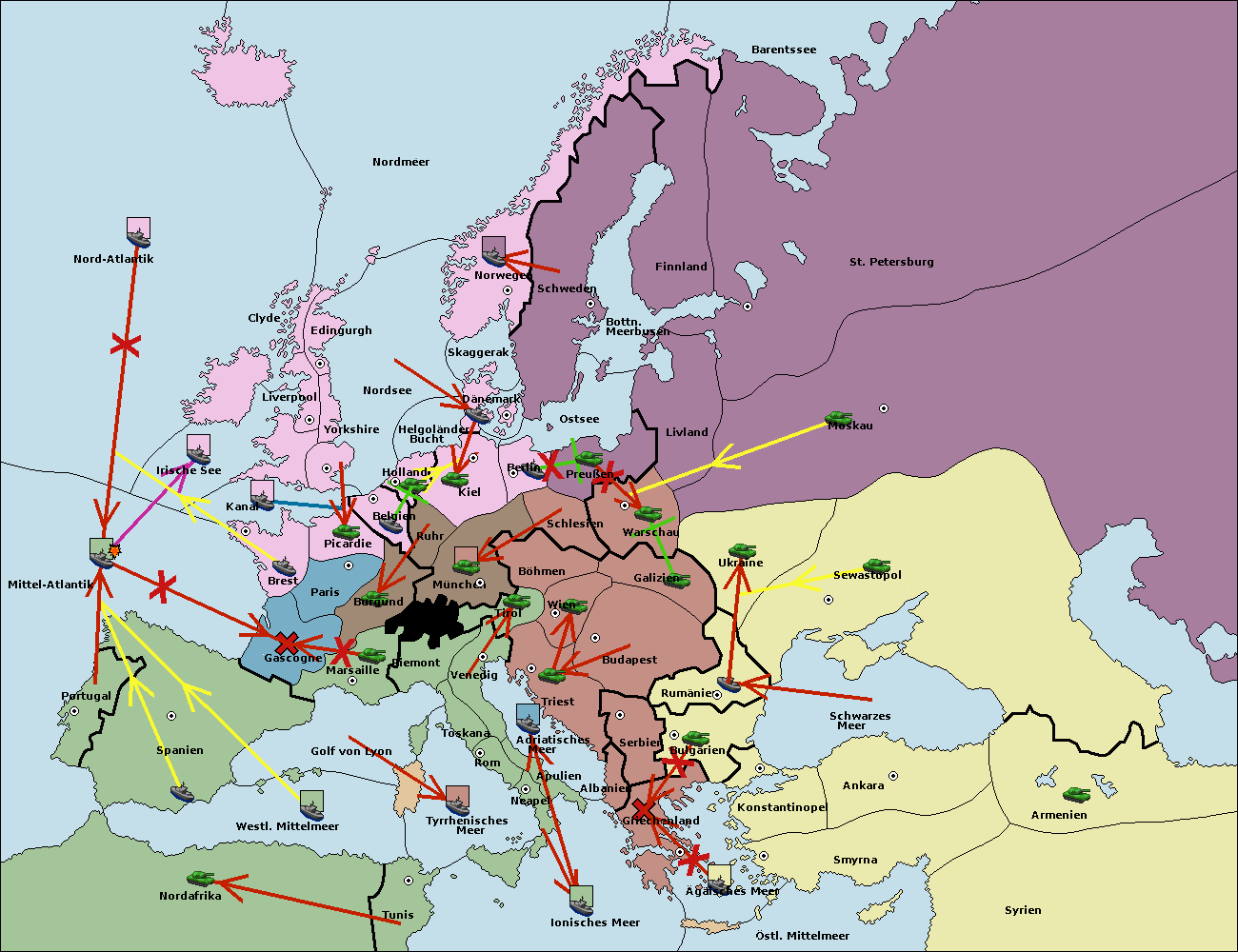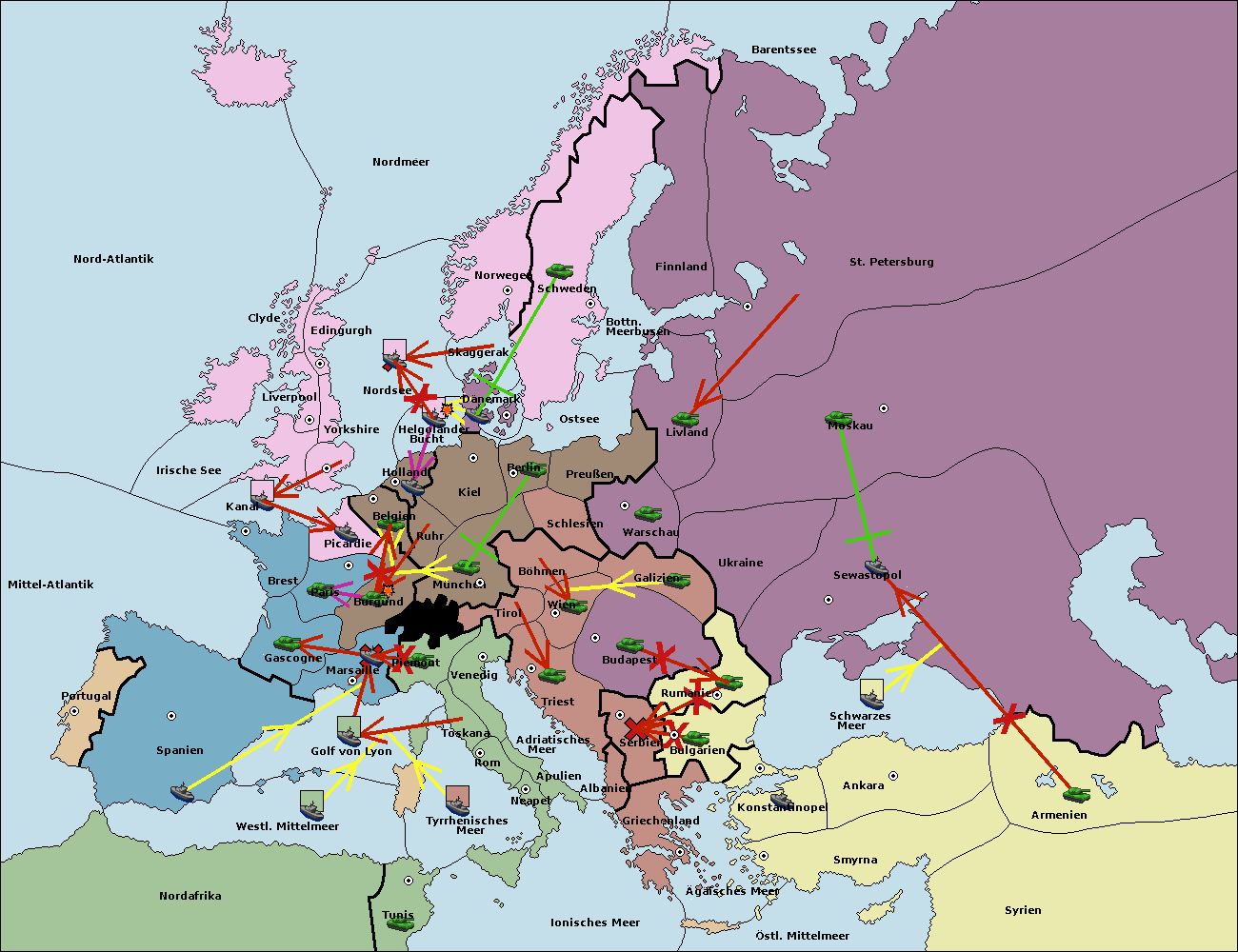 • Die Armee in St. Petersburg support hold nach Norwegen. (gescheitert)
