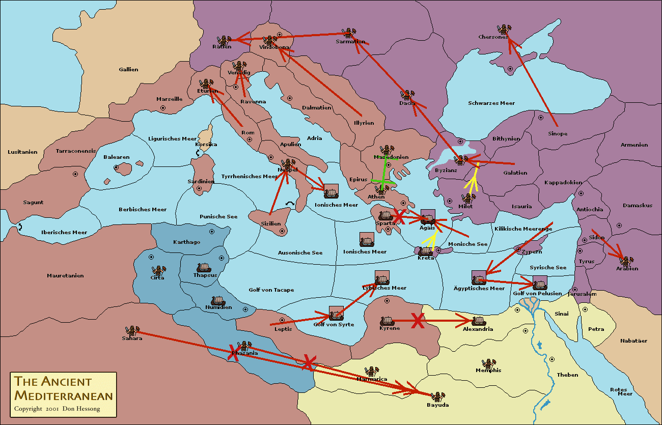 • Die Flotte in Ägäisches Meer support move nach Mazedonien von Byzianz. (gescheitert)
