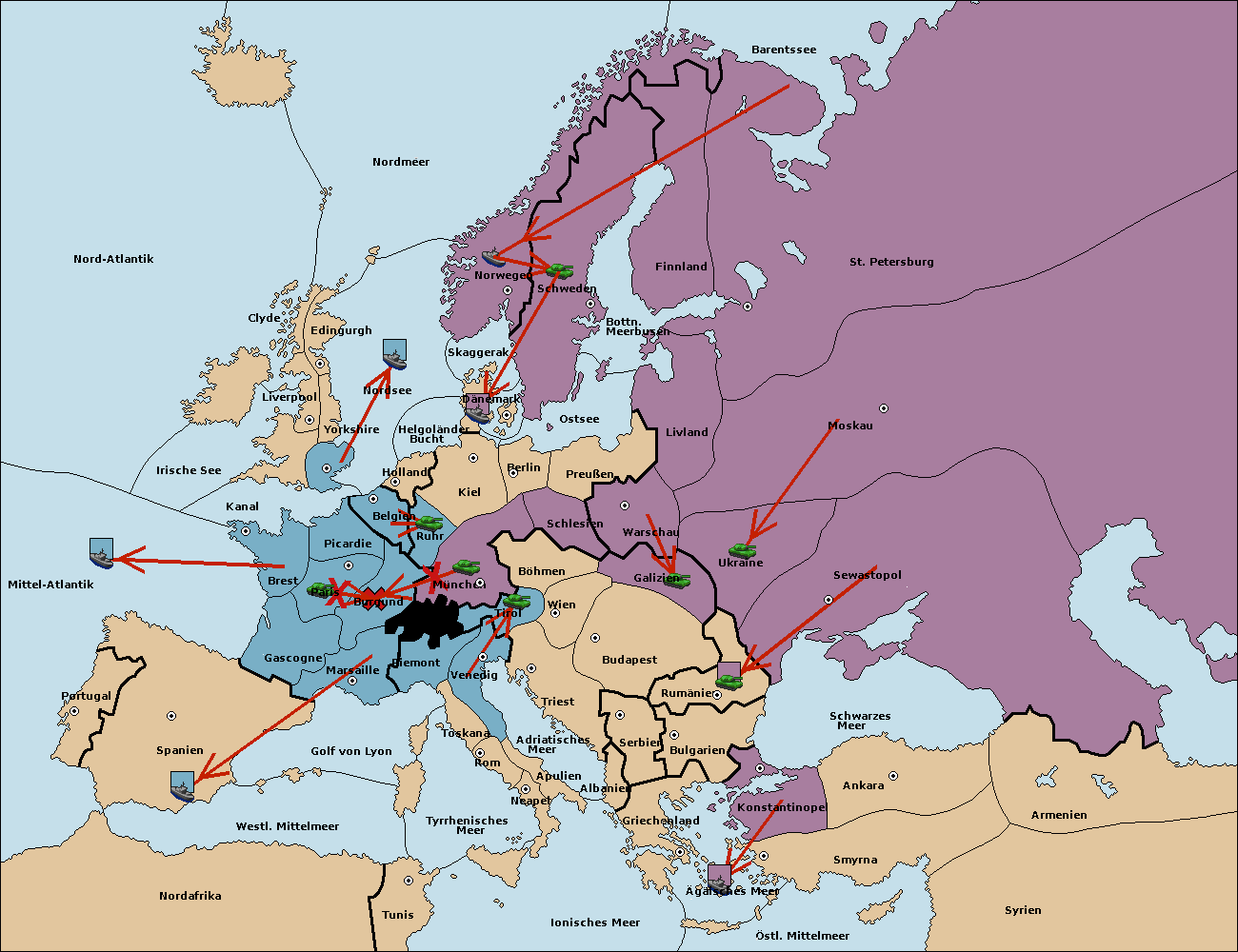 • Die Flotte in St. Petersburg (Nordküste) move nach Norwegen.
