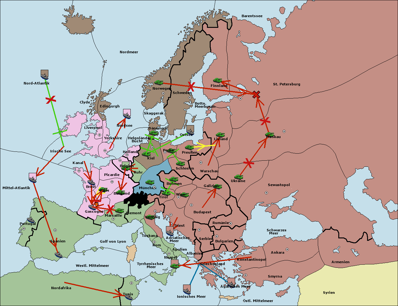 • Die Armee in München move nach Kiel. (gescheitert) (verdrängt)