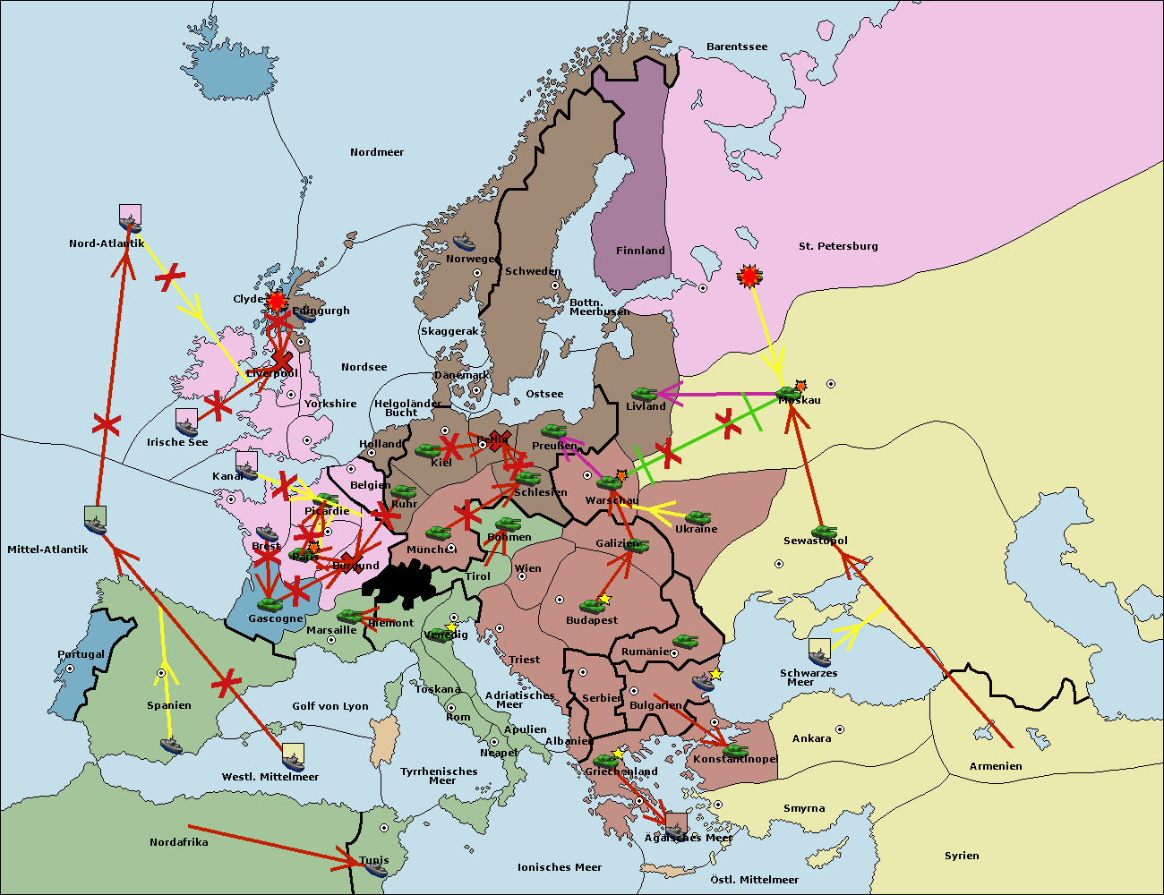 • Die Flotte in St. Petersburg (Südküste) move nach Finnland.