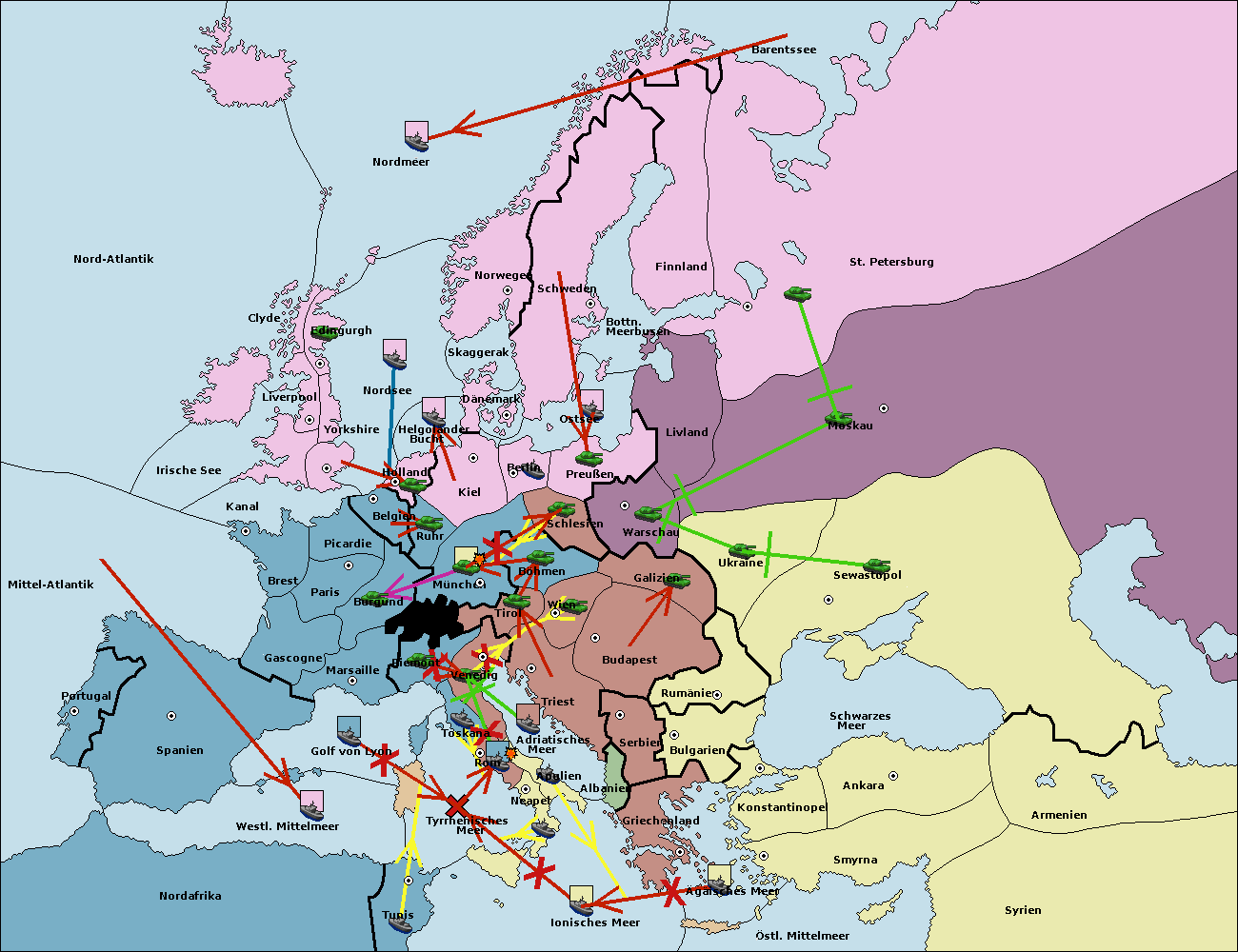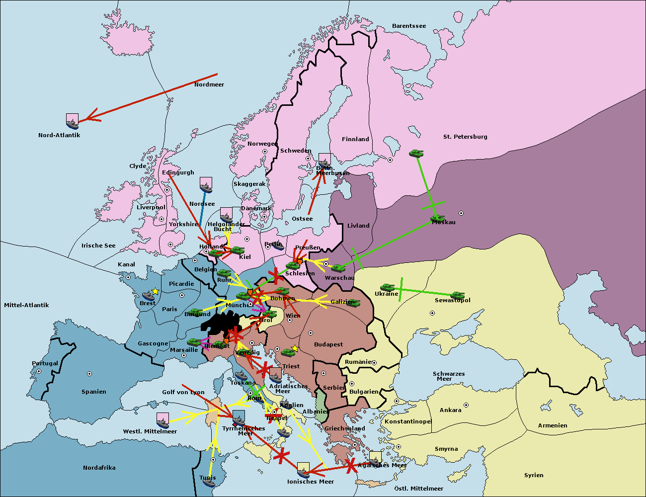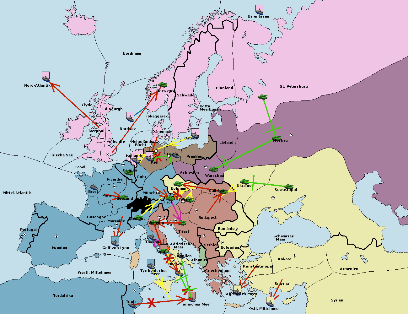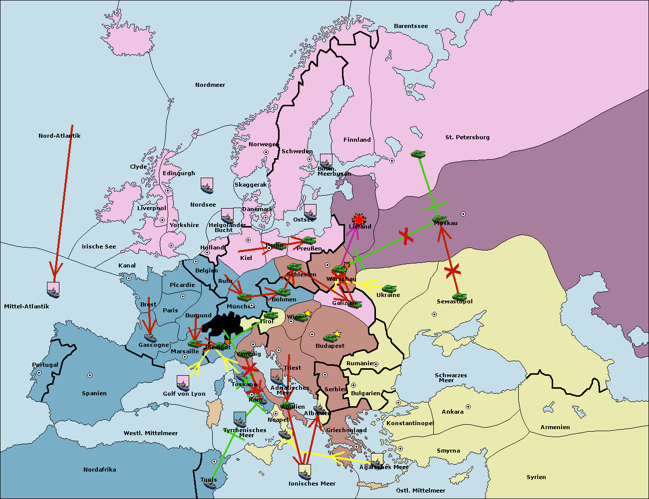 • Die Armee in Triest support move nach Tirol von München. (gescheitert)