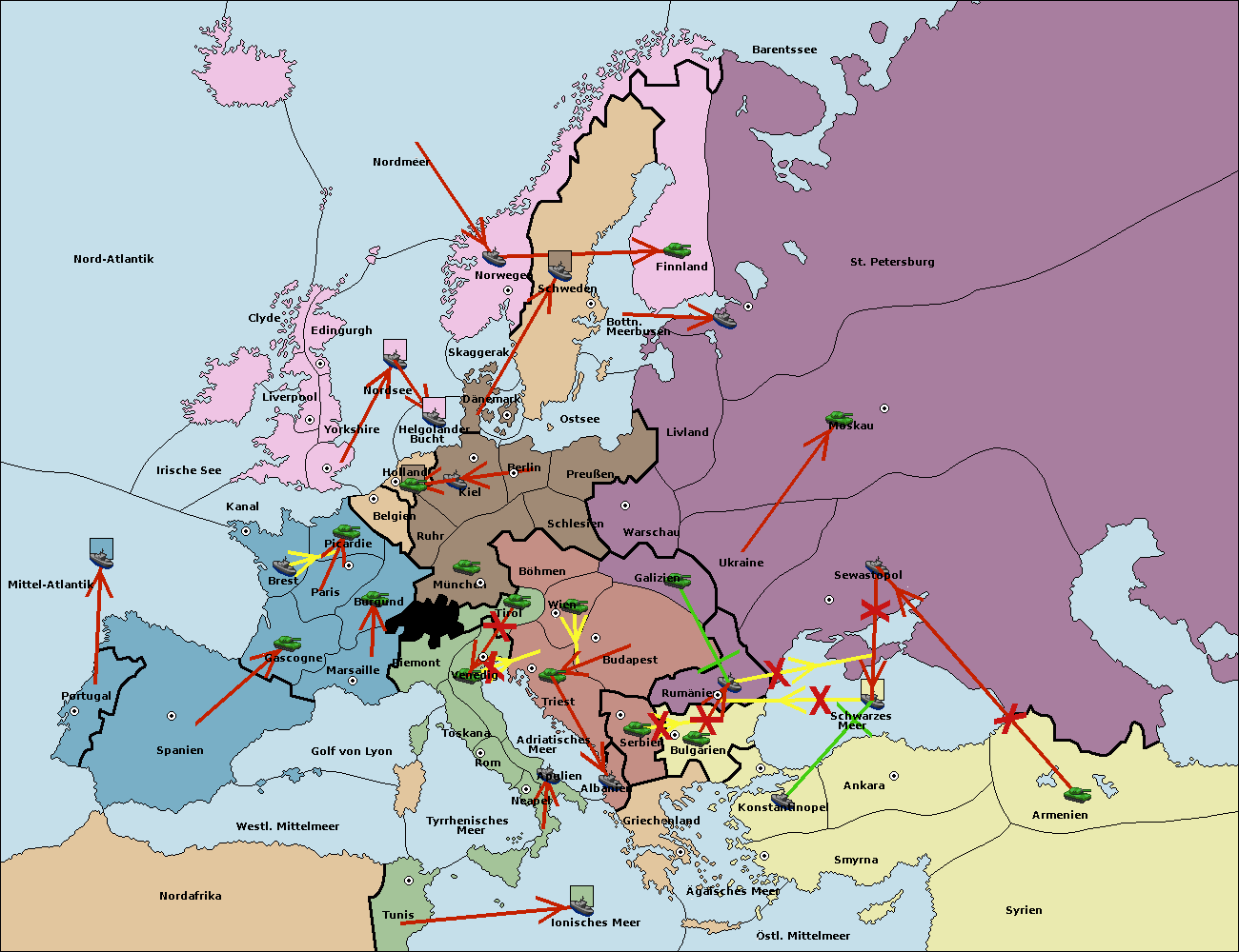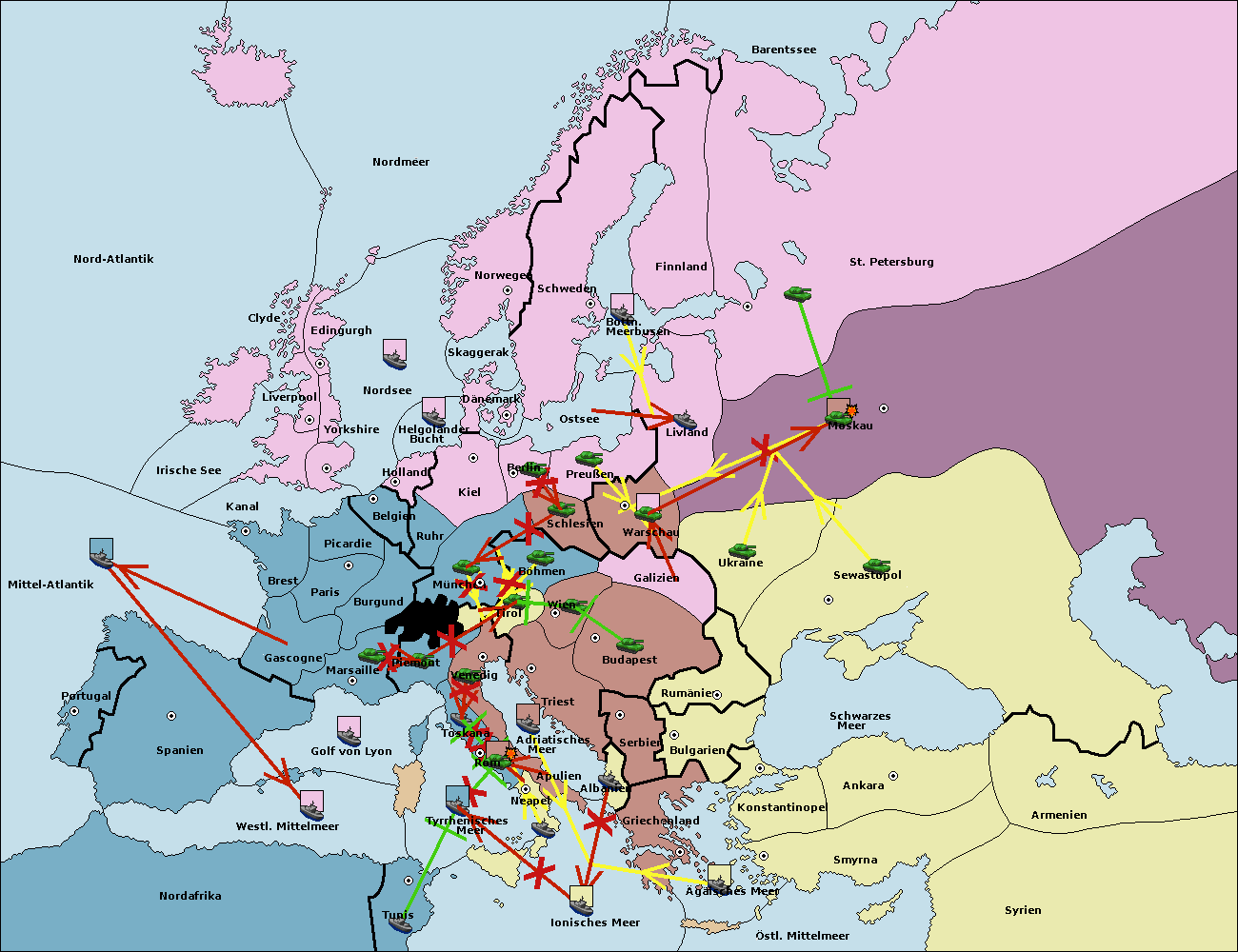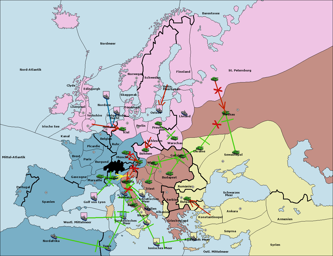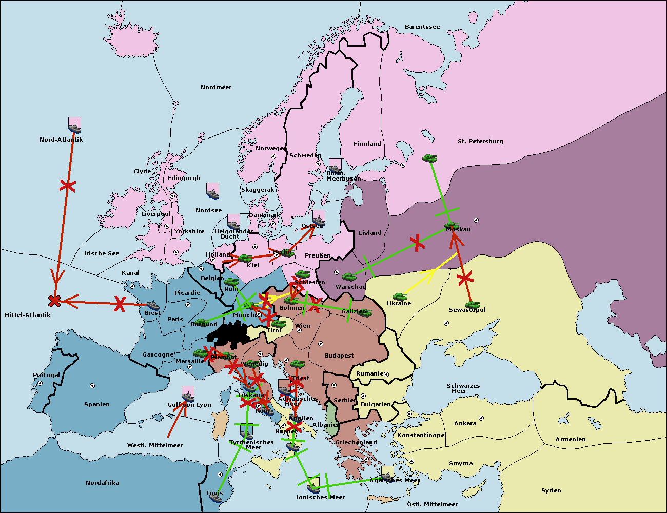 • Die Armee in Triest support move nach Tirol von München. (gescheitert)