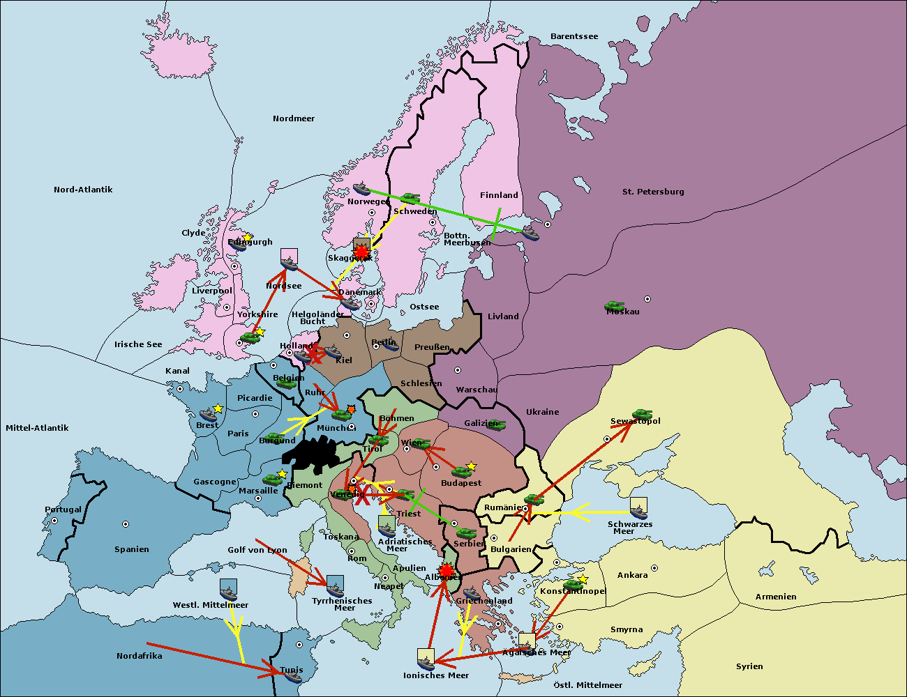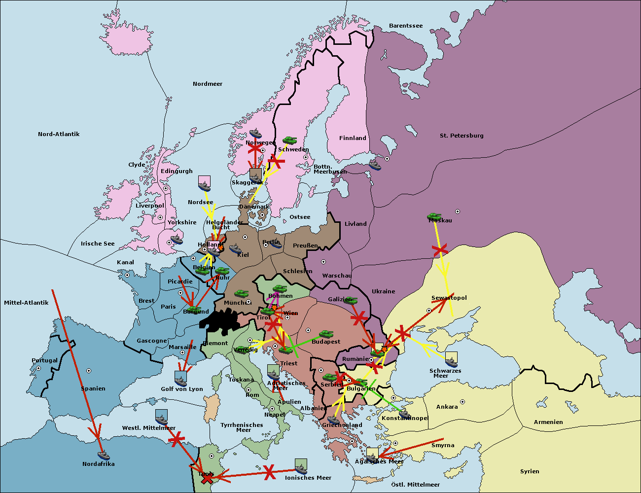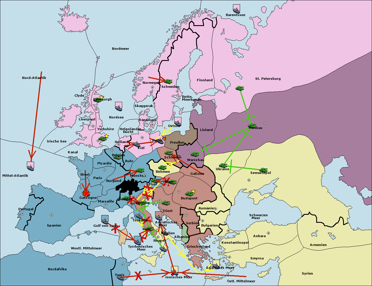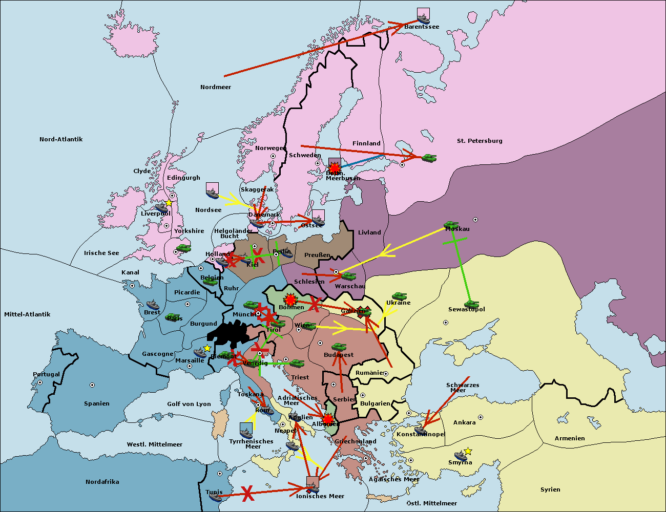 • Die Armee in Triest support move nach Tirol von München. (gescheitert)