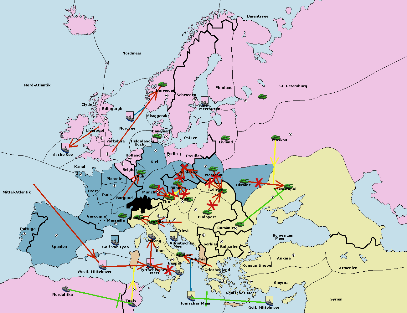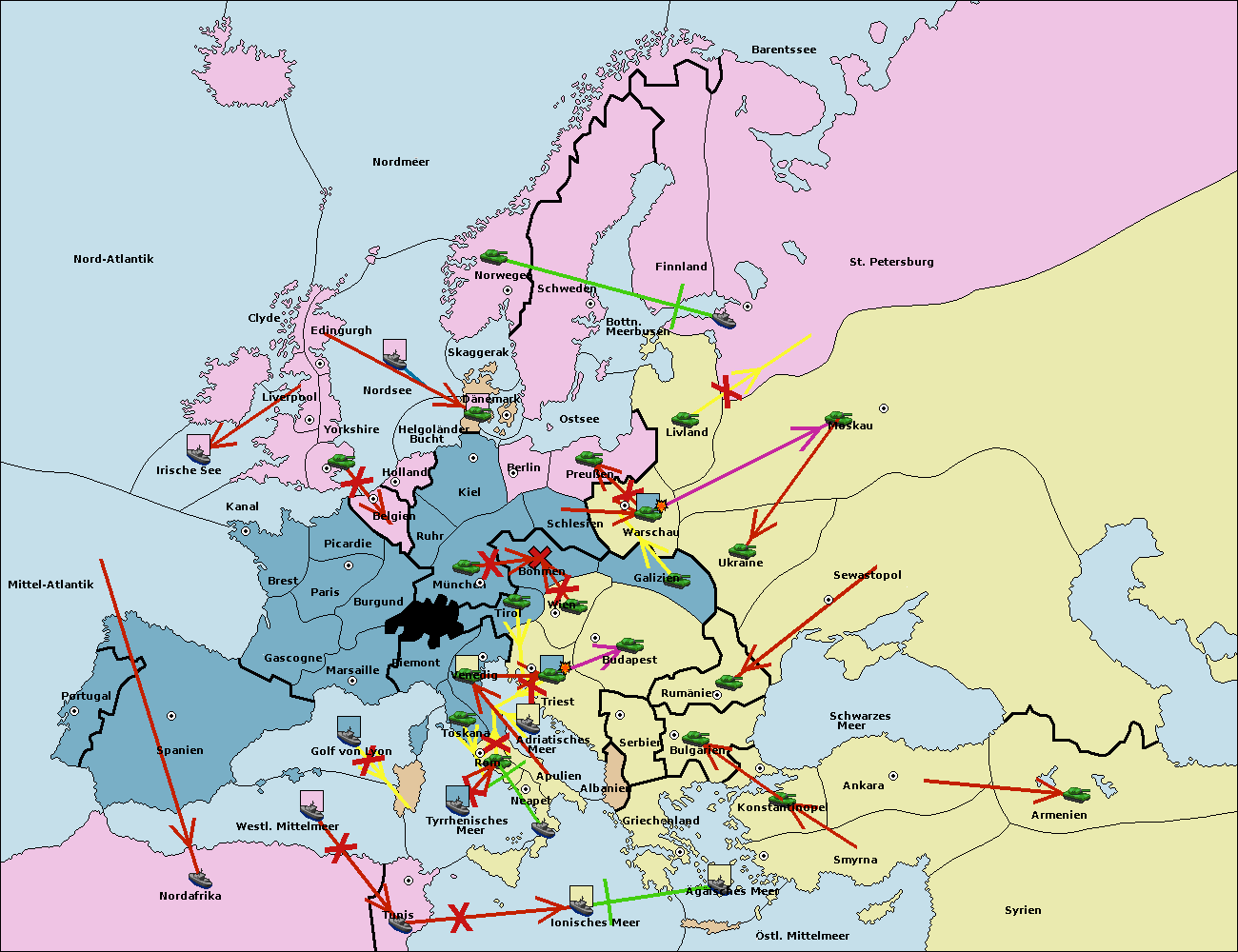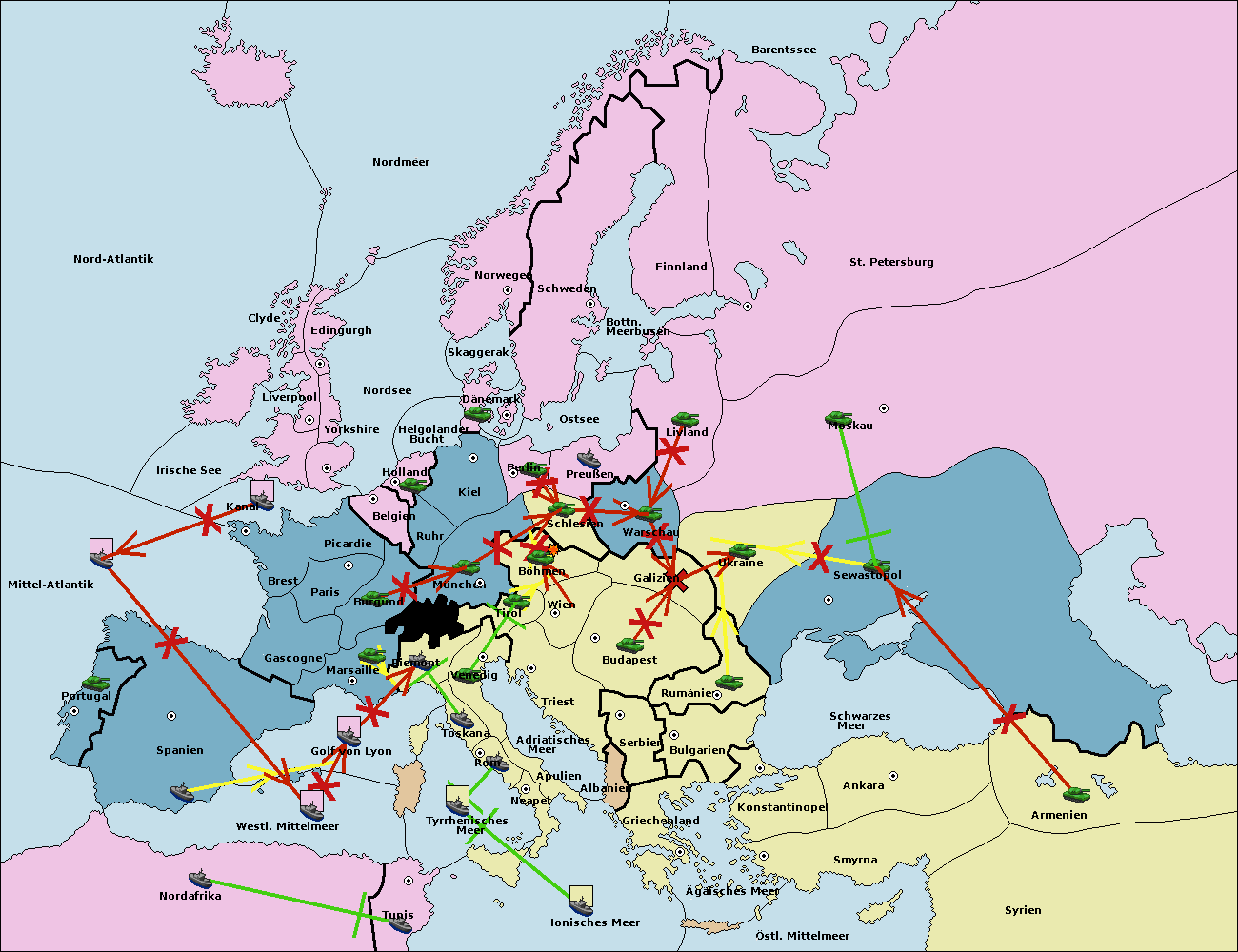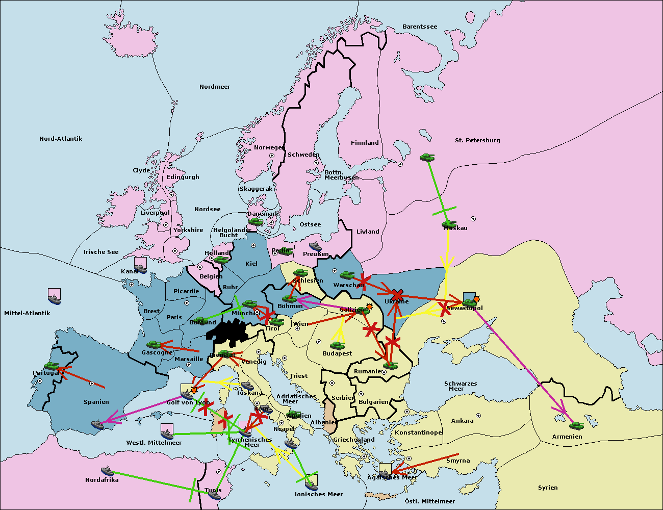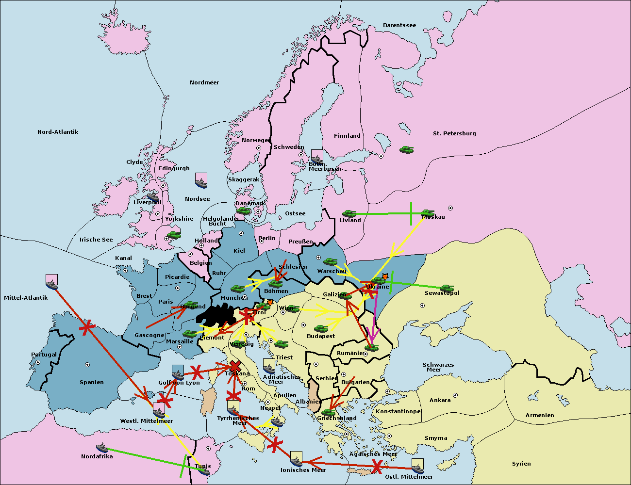 • Die Flotte in Bulgarien (Südküste) move nach Griechenland.