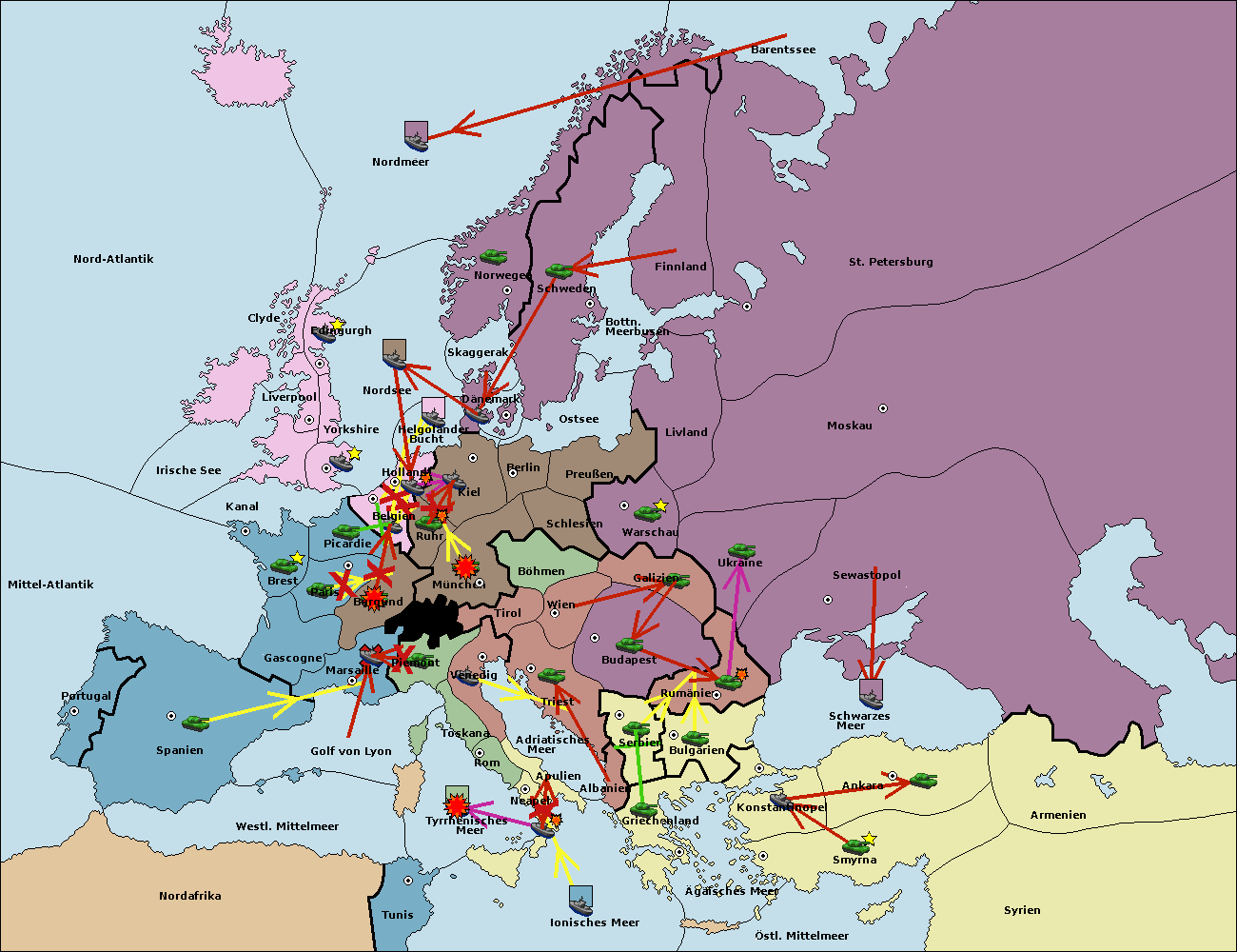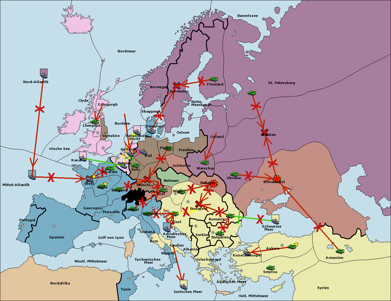 • Die Armee in Konstantinopel support hold nach Bulgarien.