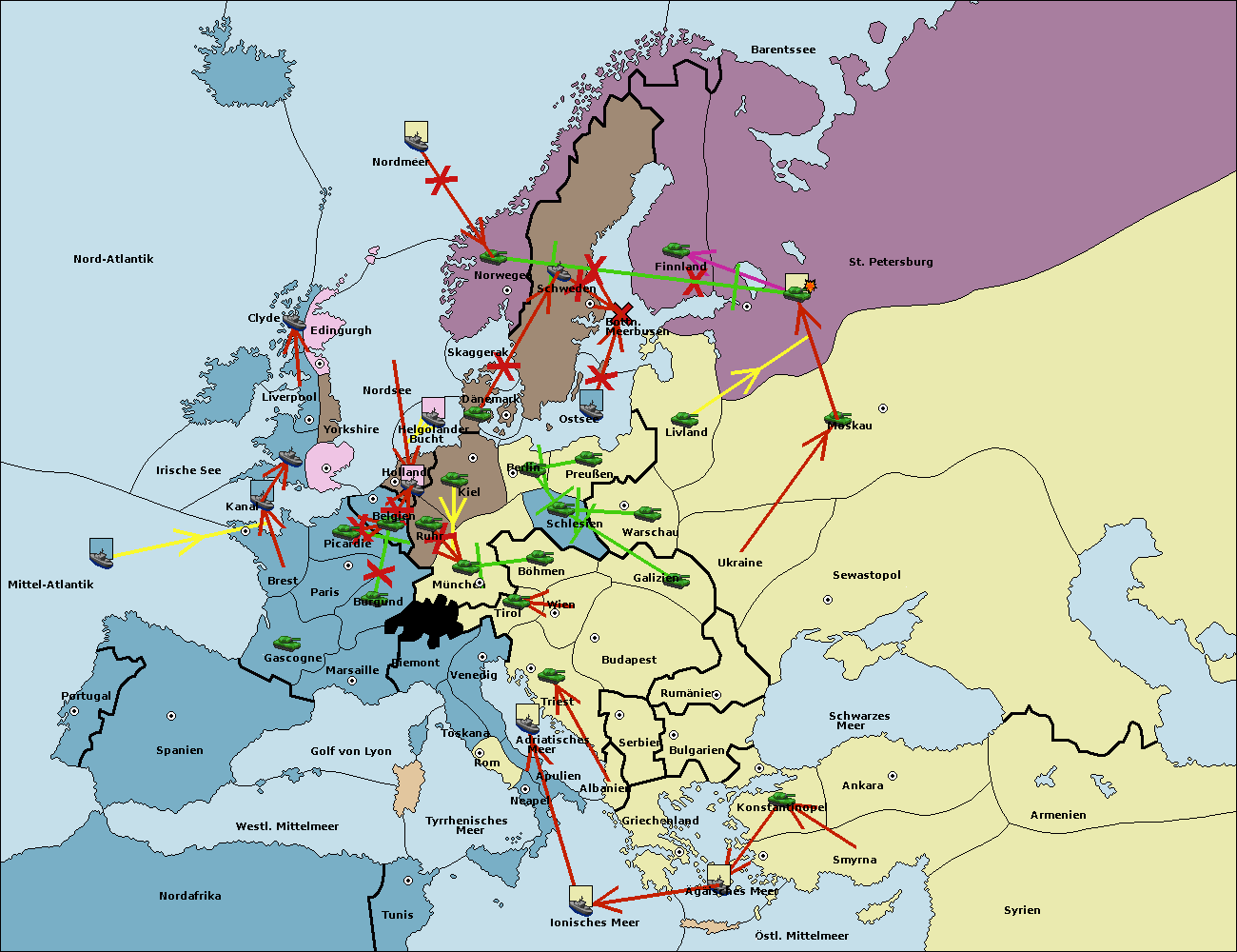 • Die Flotte in St. Petersburg (Nordküste) move nach Barentssee.
