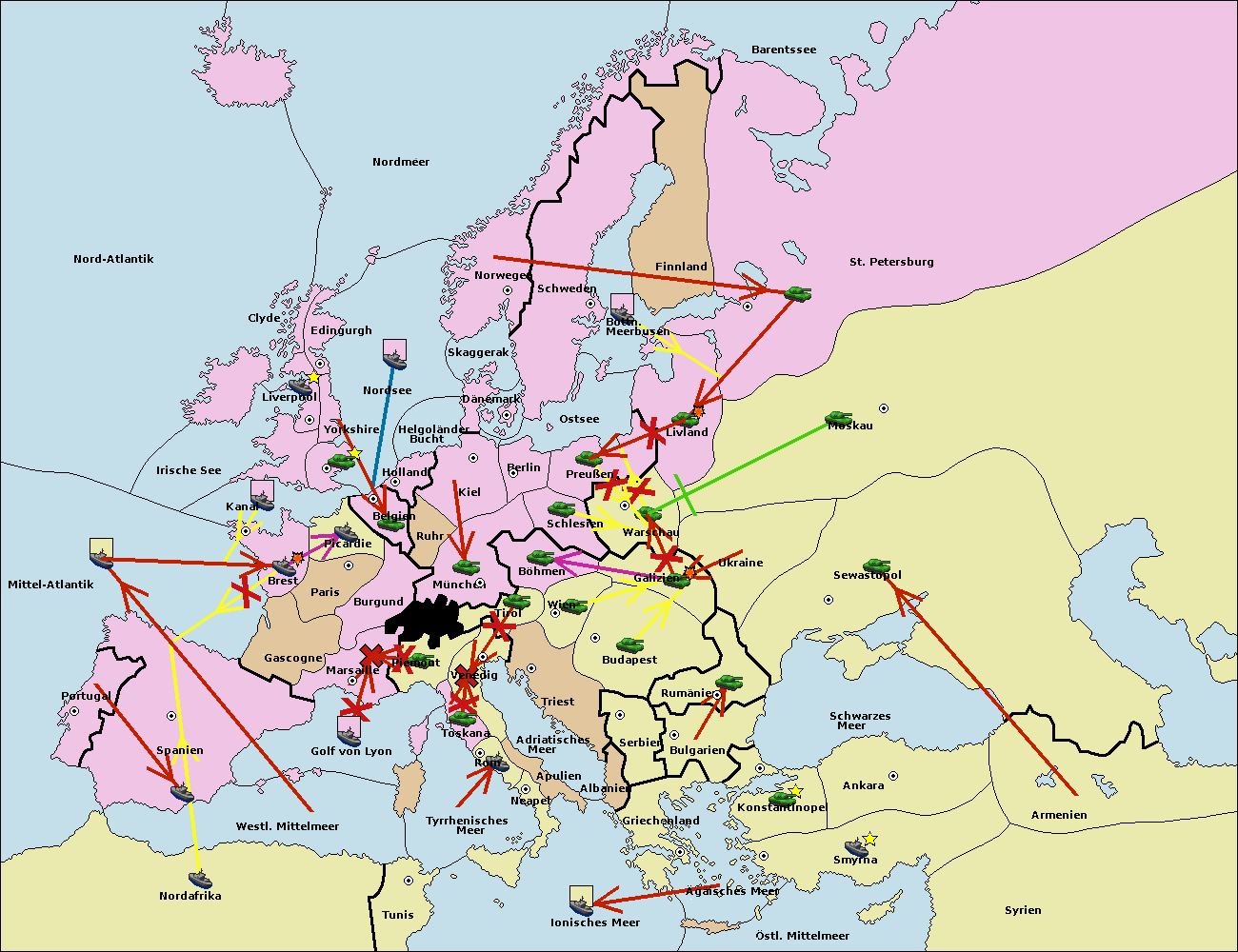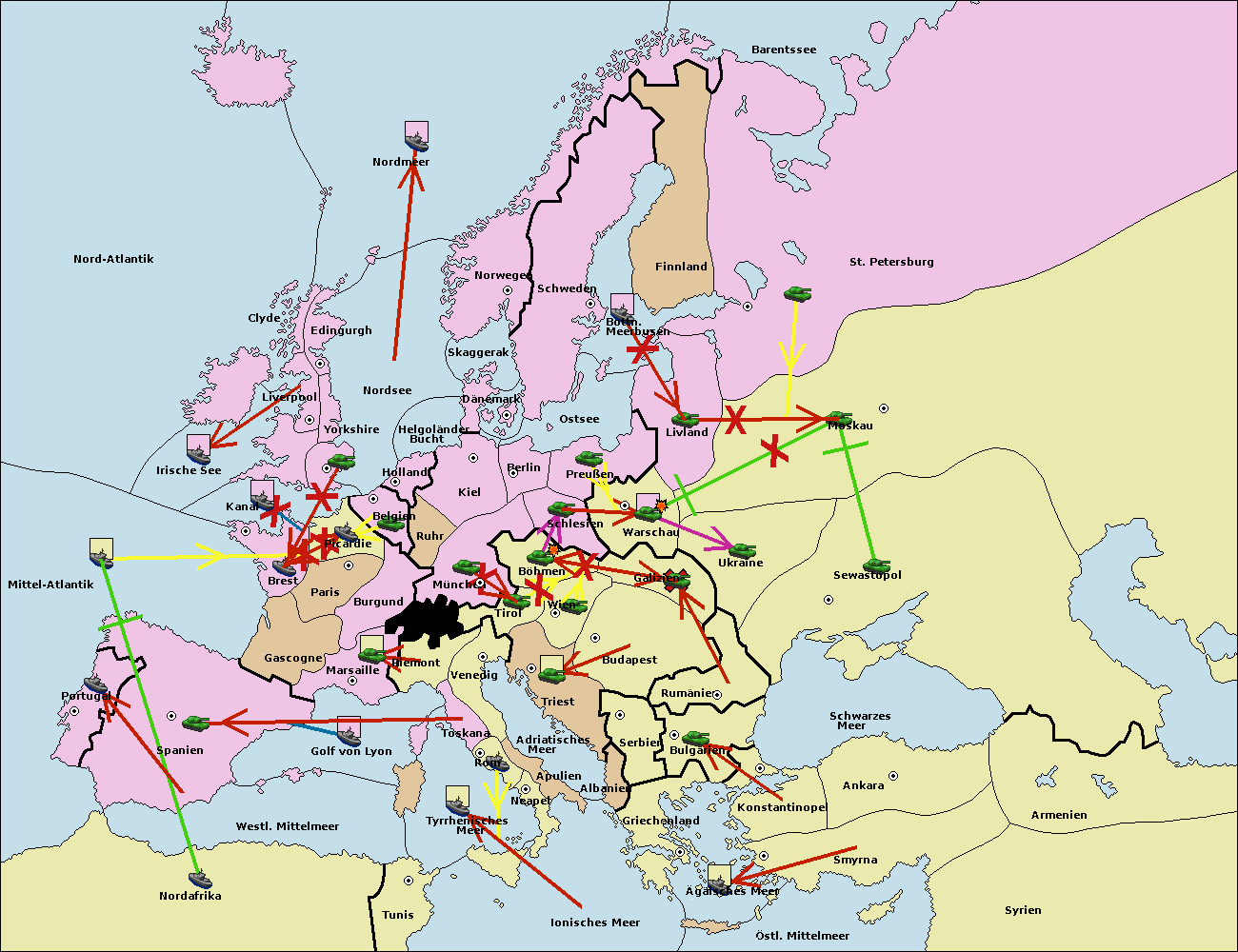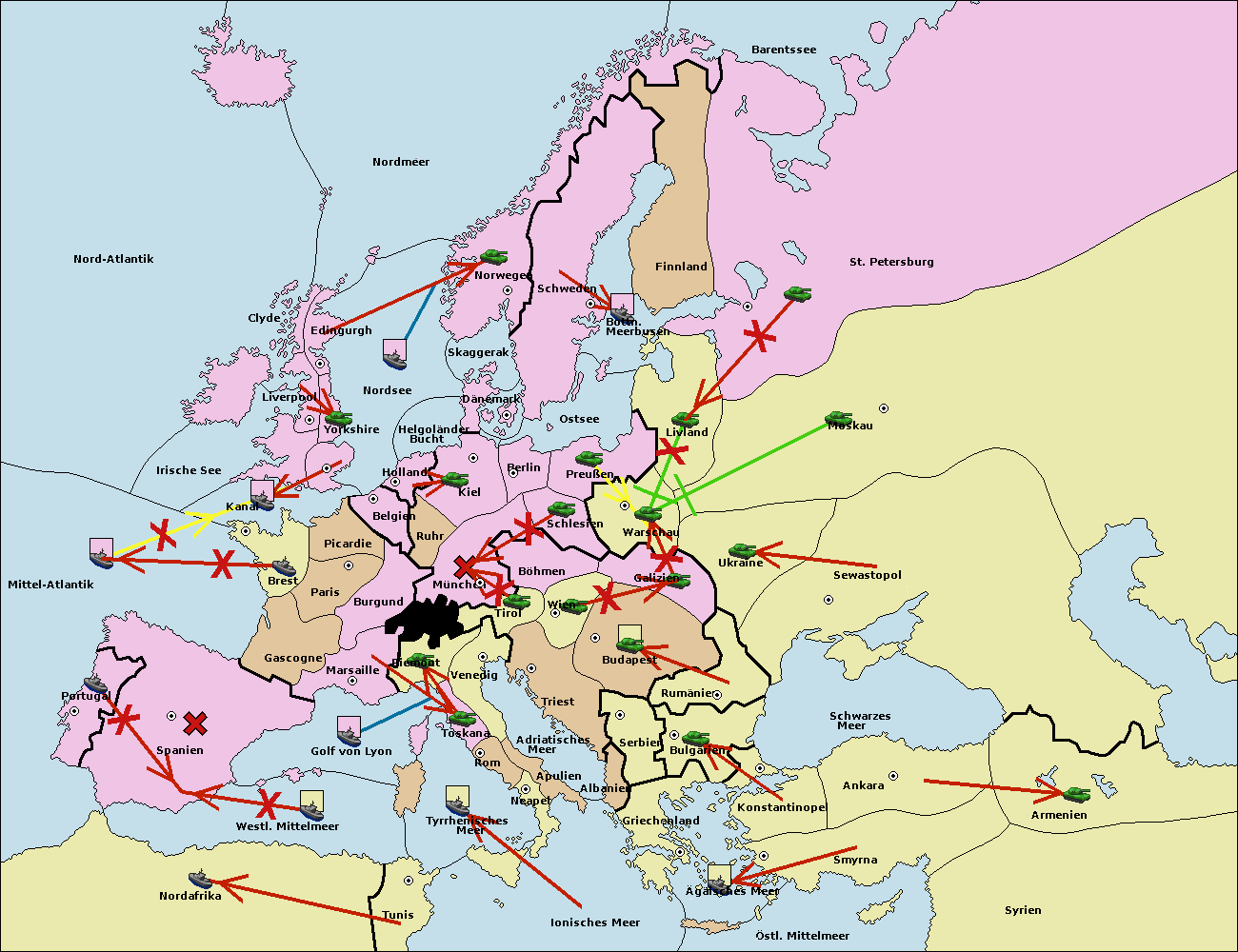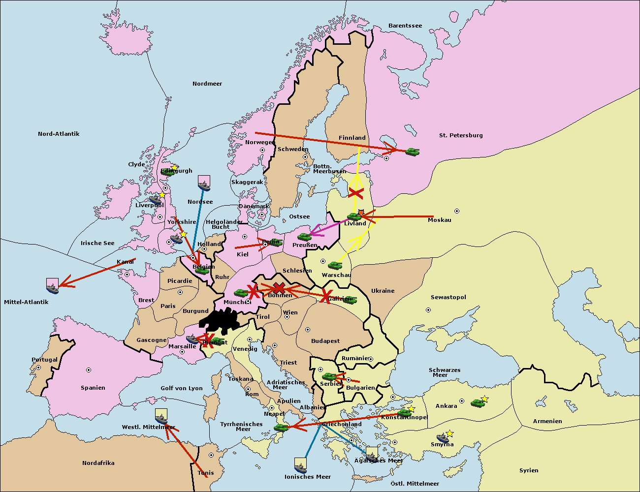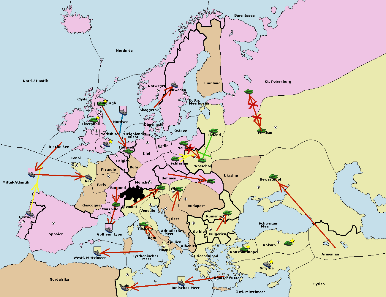 • Die Flotte in Bulgarien (Südküste) move nach Griechenland.