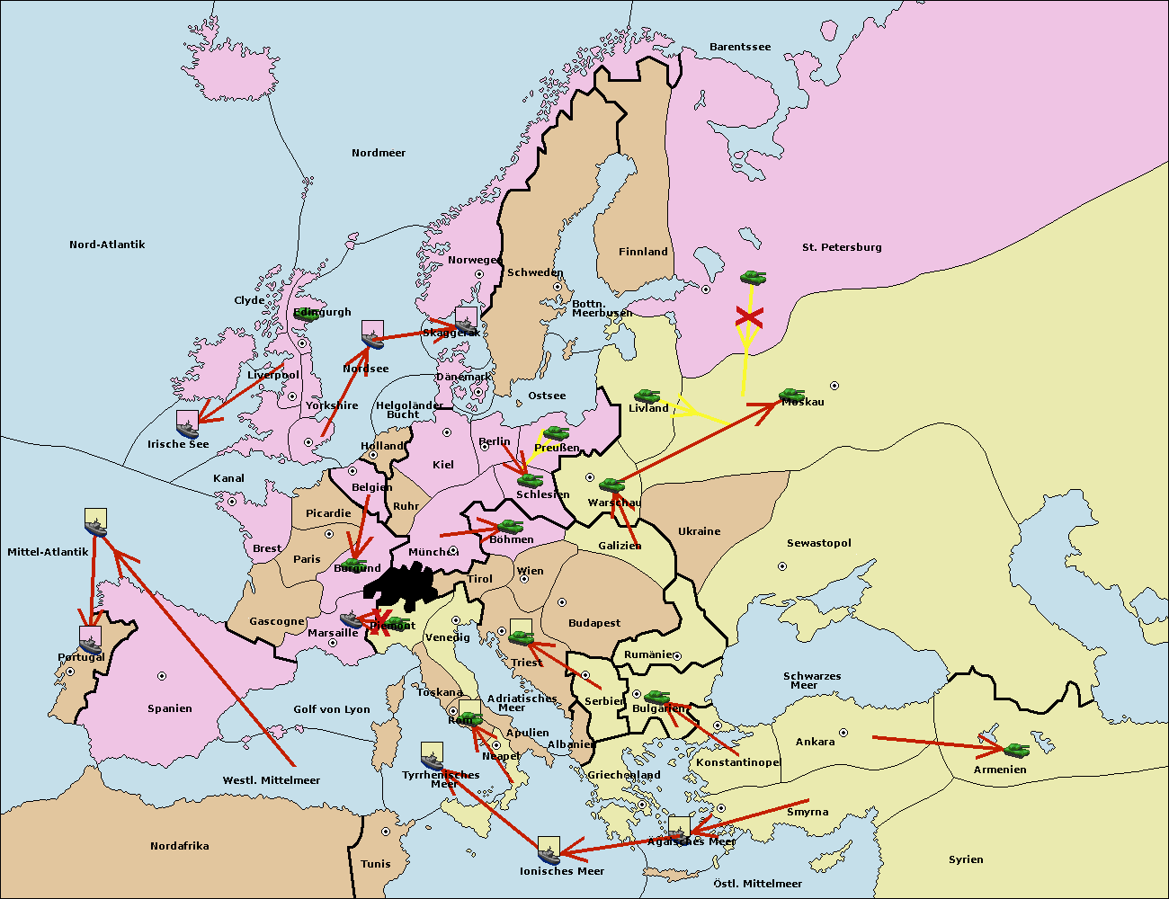 • Die Armee in Warschau support move nach Moskau von St. Petersburg.
