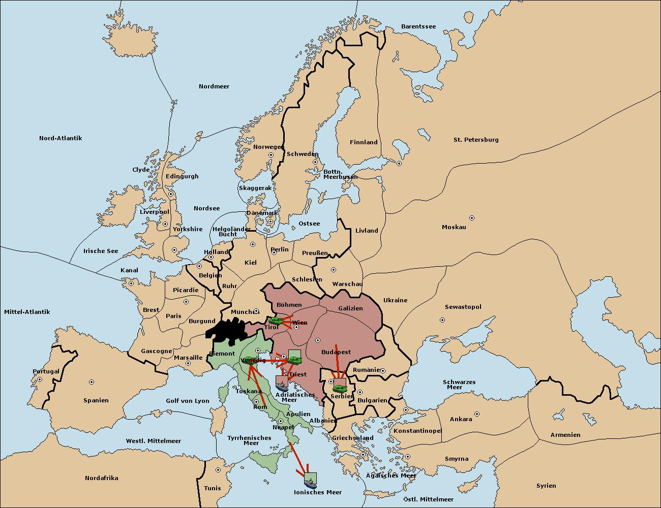• Die Armee in Wien support move nach Triest von Venedig.