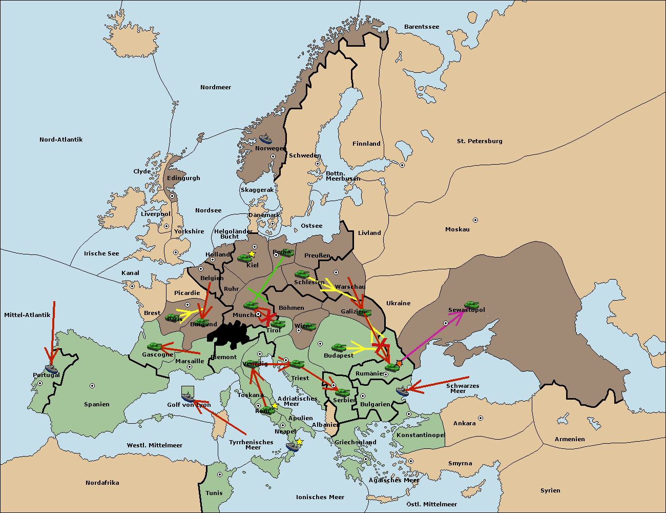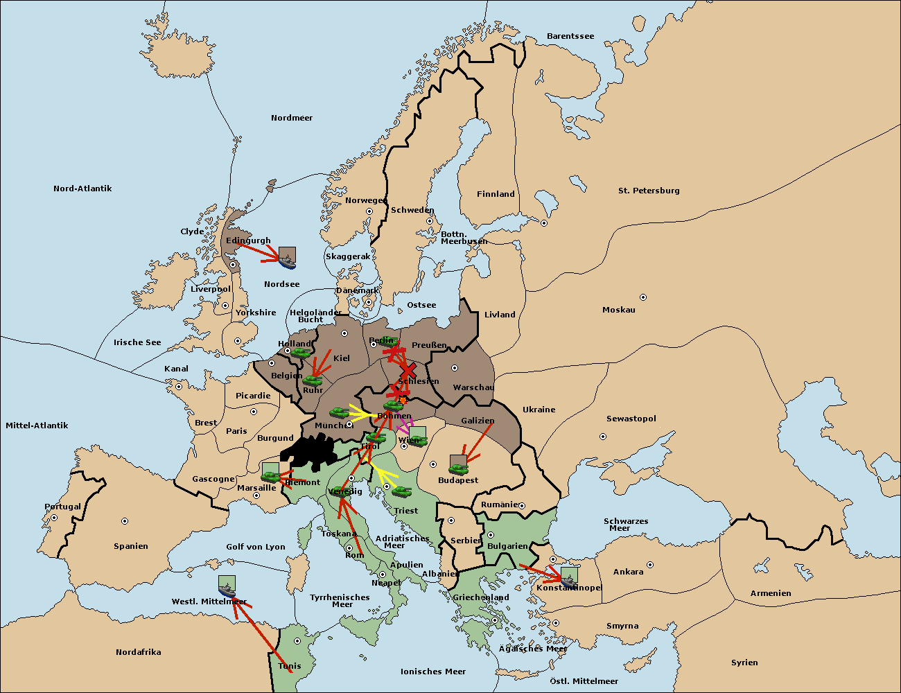 • Die Flotte in Bulgarien (Südküste) move nach Konstantinopel.