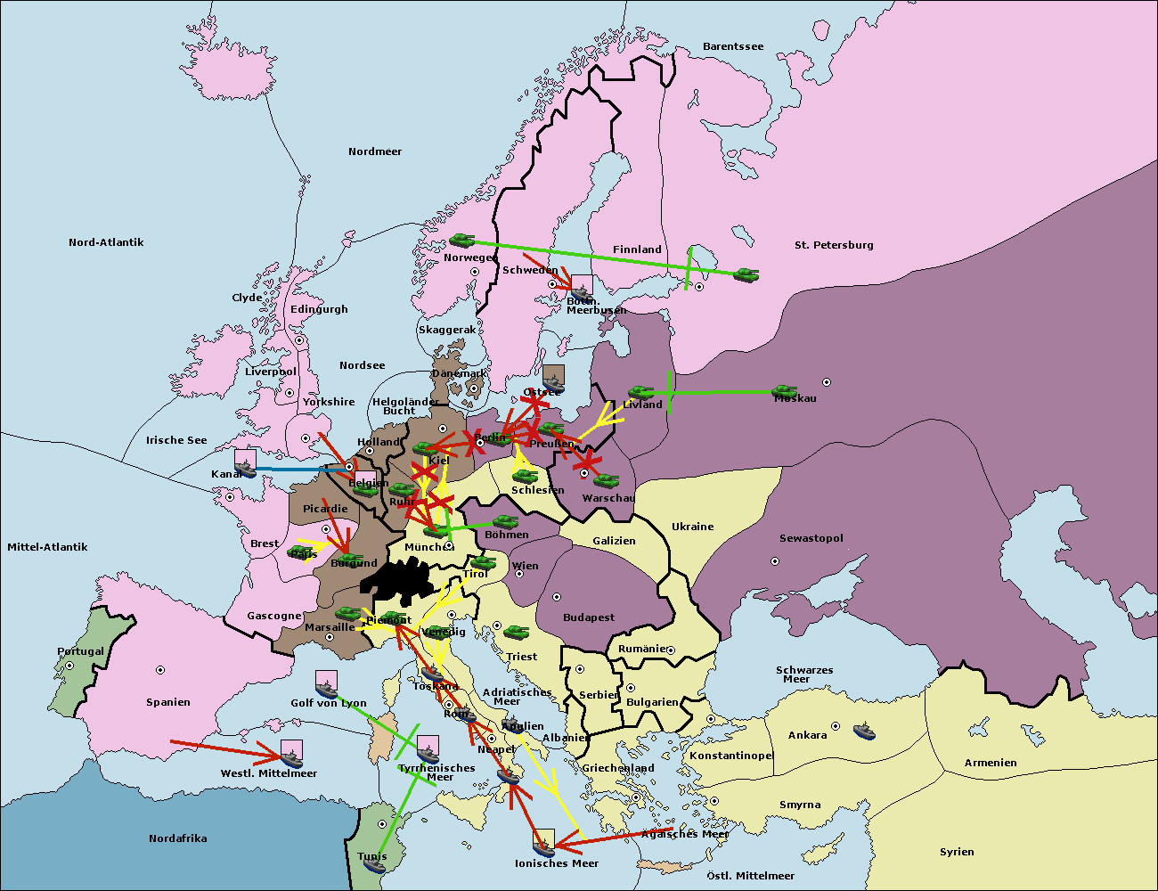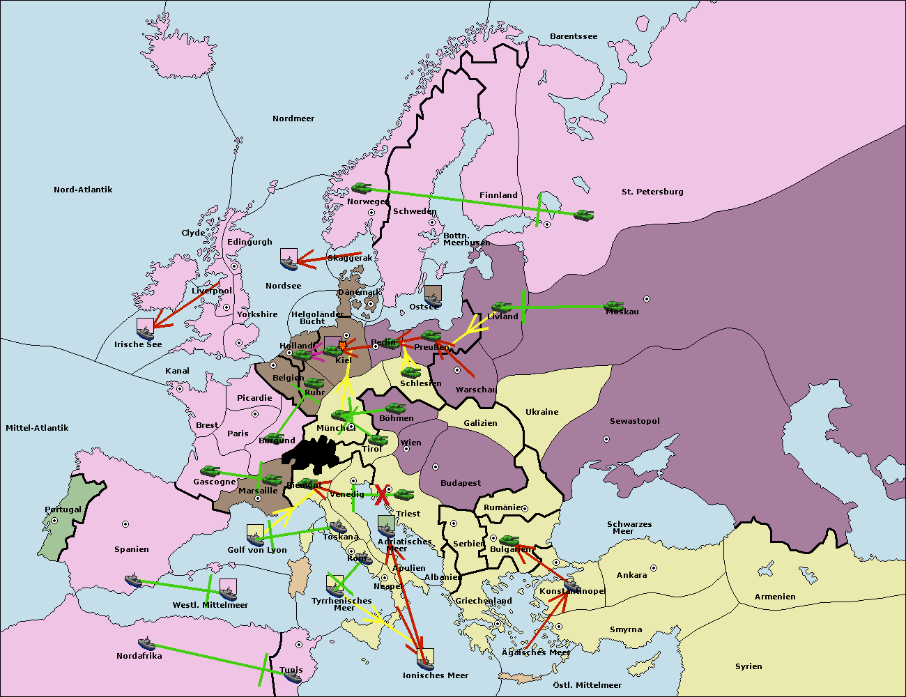• Die Armee in Burgund support move nach München von Tirol. (gescheitert)