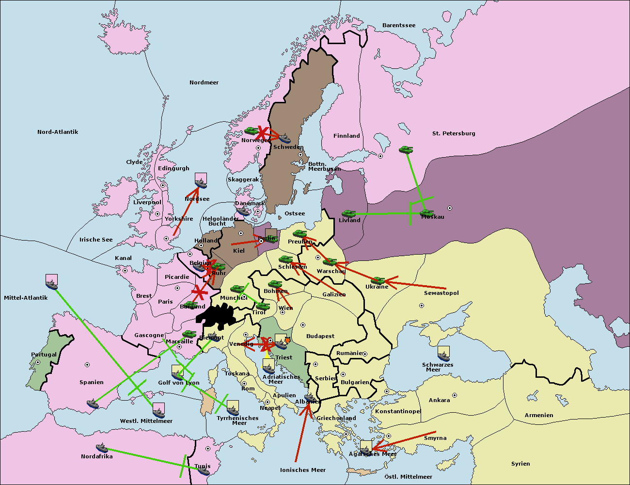 • Die Flotte in Ostsee support hold nach Preußen. (gescheitert)