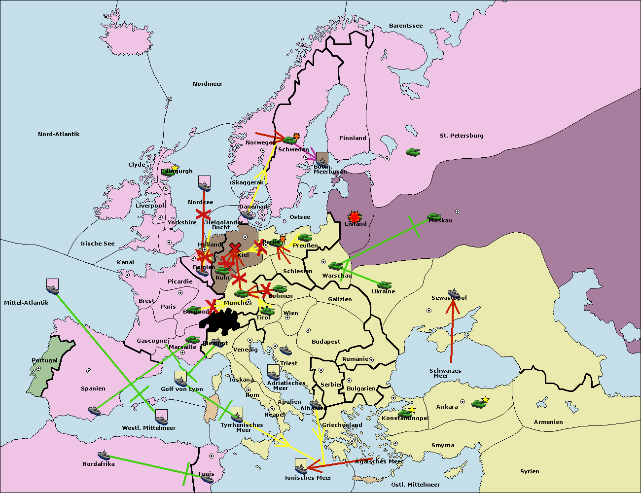 • Die Flotte in Belgien support move nach Holland von Nordsee. (gescheitert)